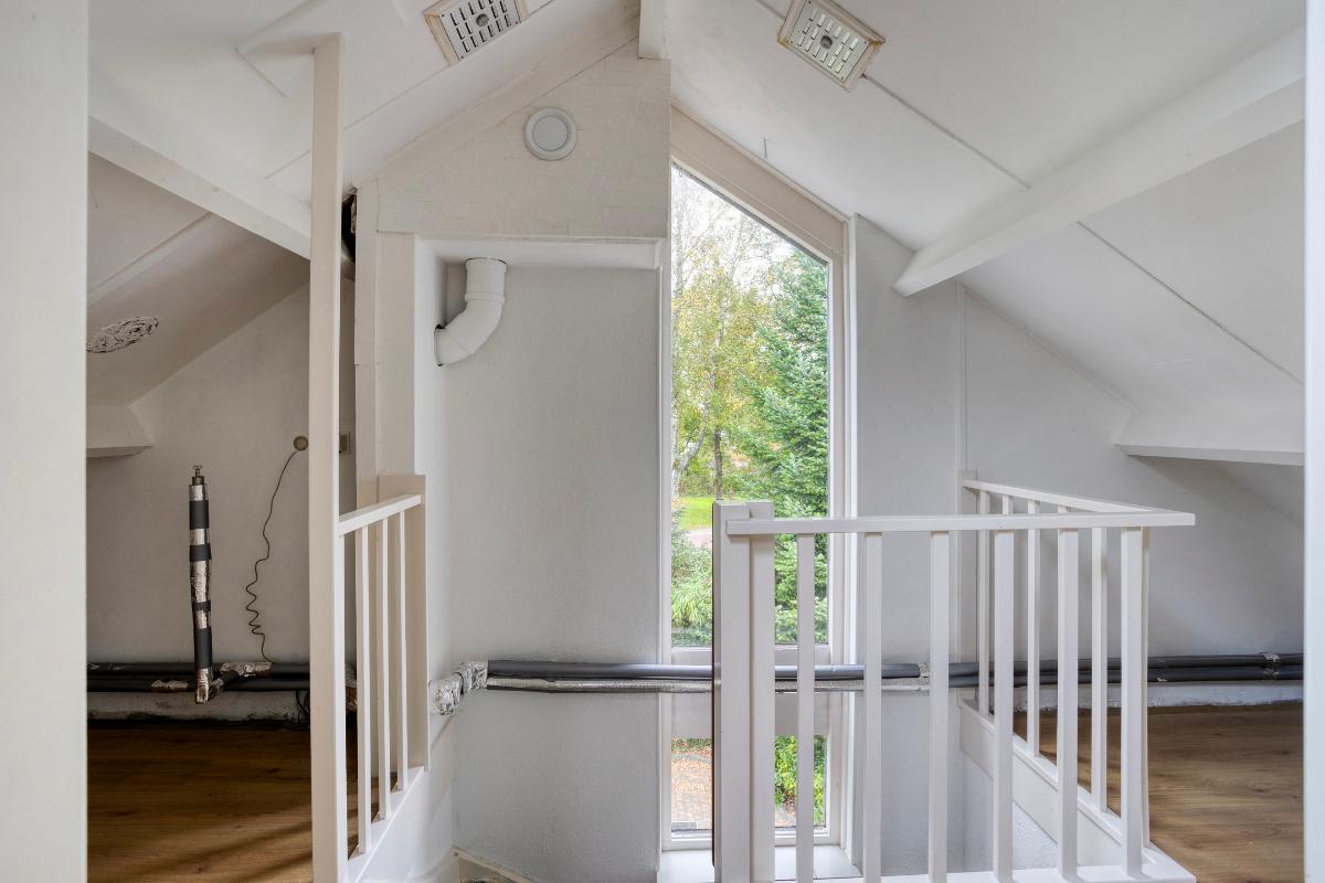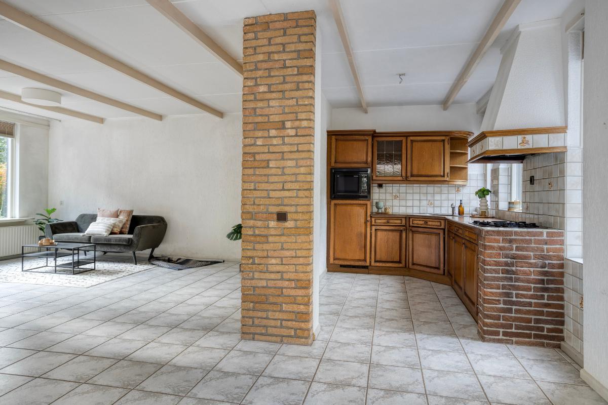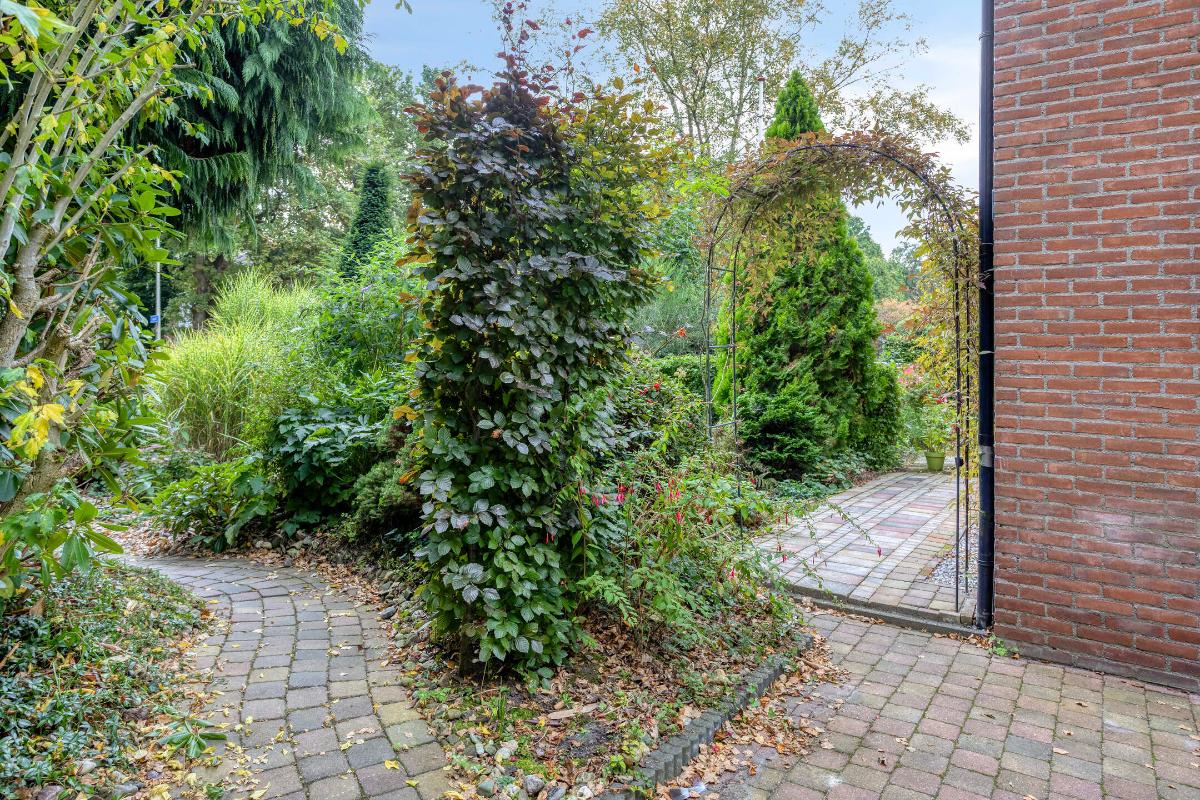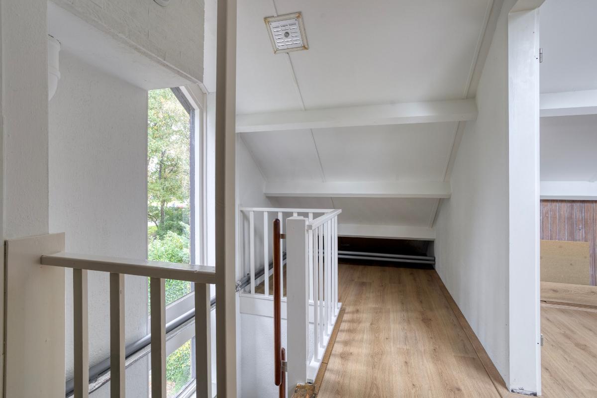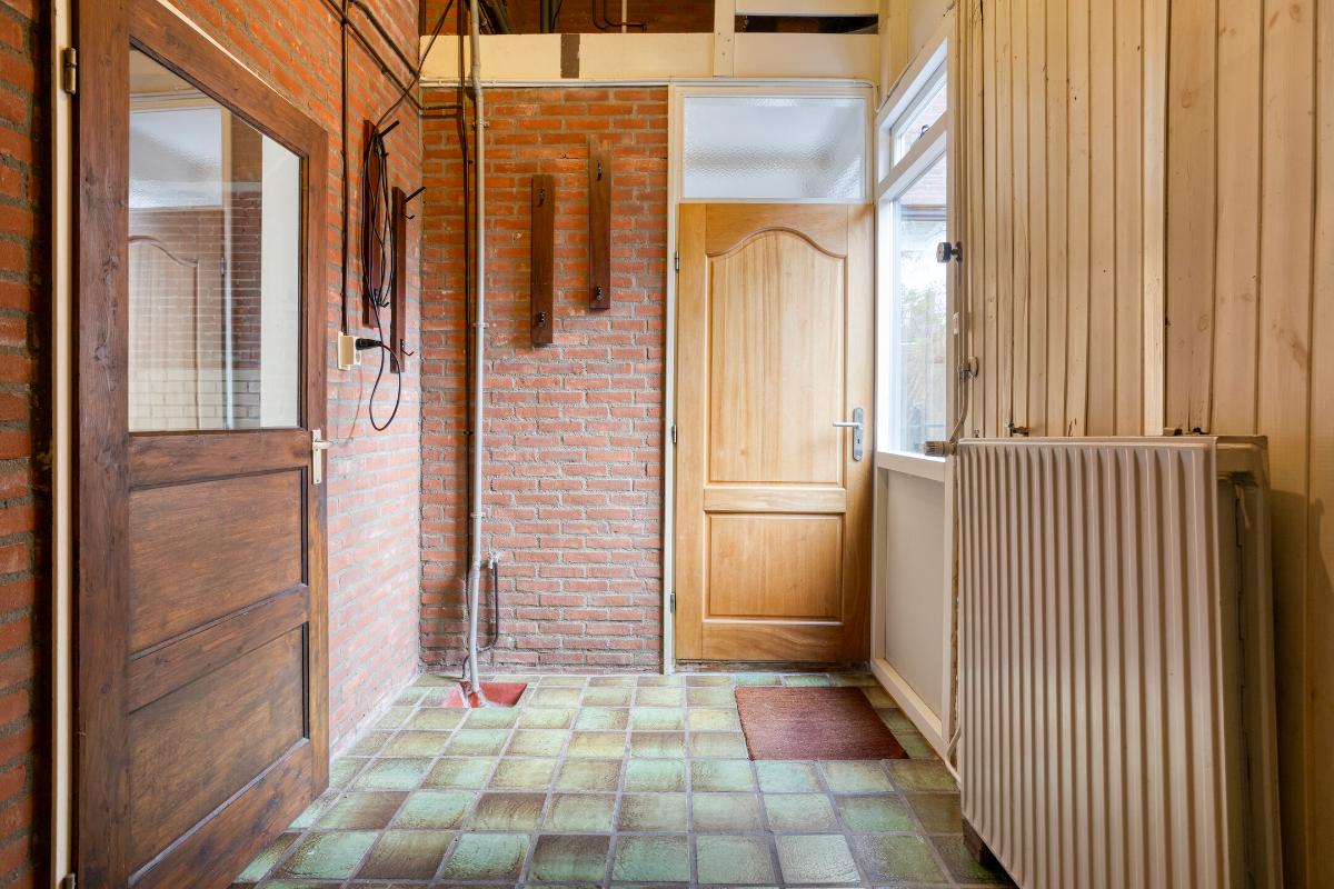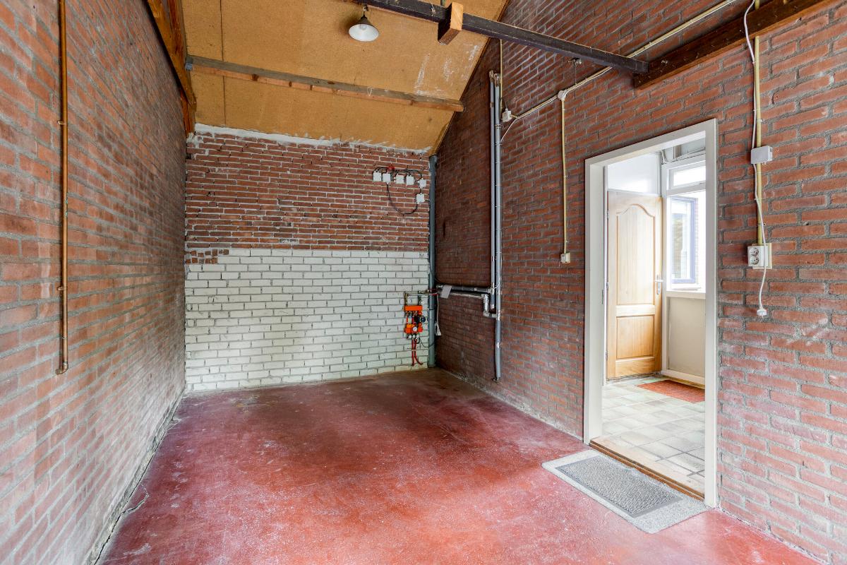 Indeling: Begane grond: entree met ruime hal met meterkast, trapopgang en moderne toiletruimte met hangtoilet en fonteintje. De royale Z-vormige woonkamer is v.v. een inzet houtkachel, bergruimte onder de trap en een tuindeur. De woonkamer staat in open verbinding met de aangebouwde eetkamer en de deels open keuken. De heerlijk zonnige eetkamer heeft een grote dakkoepel, dubbele openslaande tuindeuren en biedt door de royale raampartij een mooi zicht op de tuin. De gedeeltelijk open keuken heeft een L-vormige keukeninrichting met dubbele spoelbak en een ingebouwde gaskookplaat, afzuigkap, koelkast en een combi oven-magnetron. De ruime bijkeuken heeft een bergvliering met c.v.ketel. De bijkeuken geeft toegang tot de zeer royale inpandige berging (voormalige garage) v.v. dubbele openslaande tuindeuren. 1e Verdieping: overloop met drie slaapkamers resp. 6, 13 v.v. wastafel en 14 m². De badkamer heeft een douchecabine, wastafel, toilet en wasmachine aansluiting. Vaste trap naar: 2e Verdieping: voorzolder en een aparte slaapkamer met bergruimte en twee dakramen.