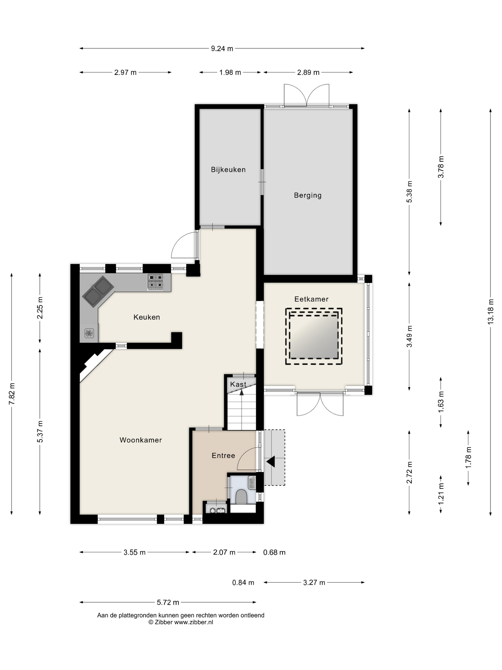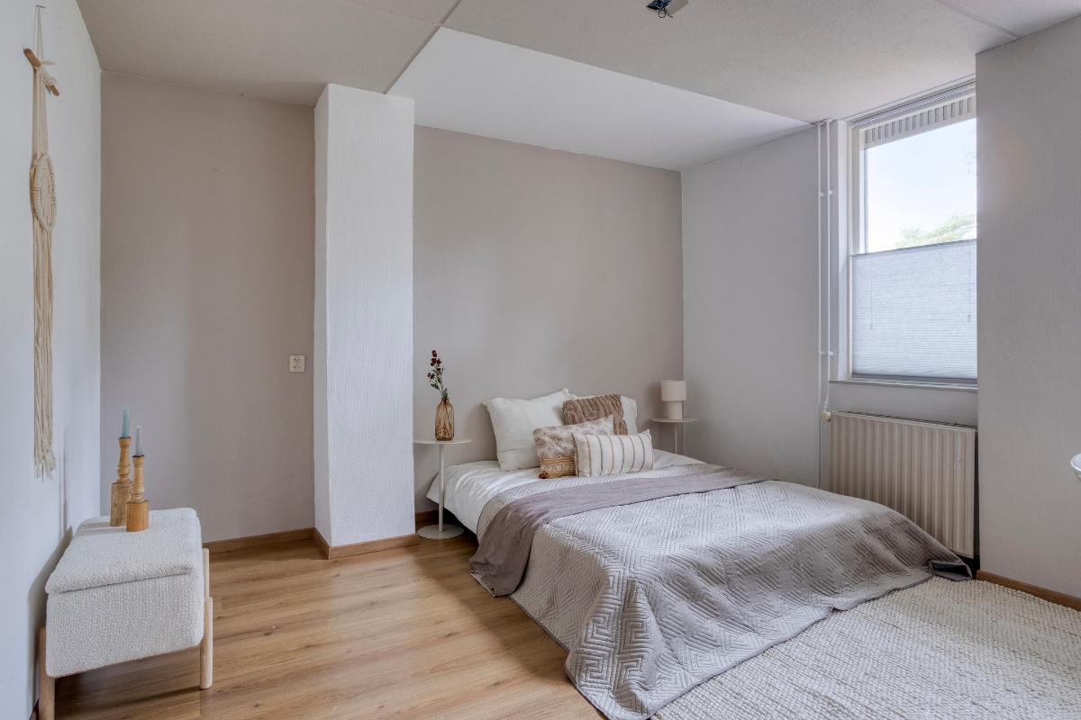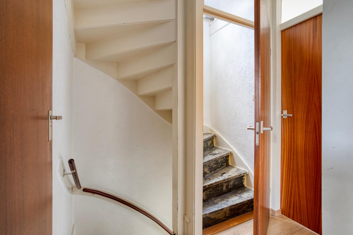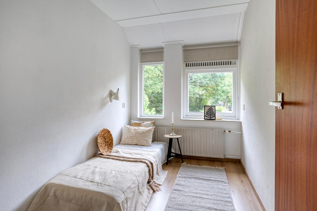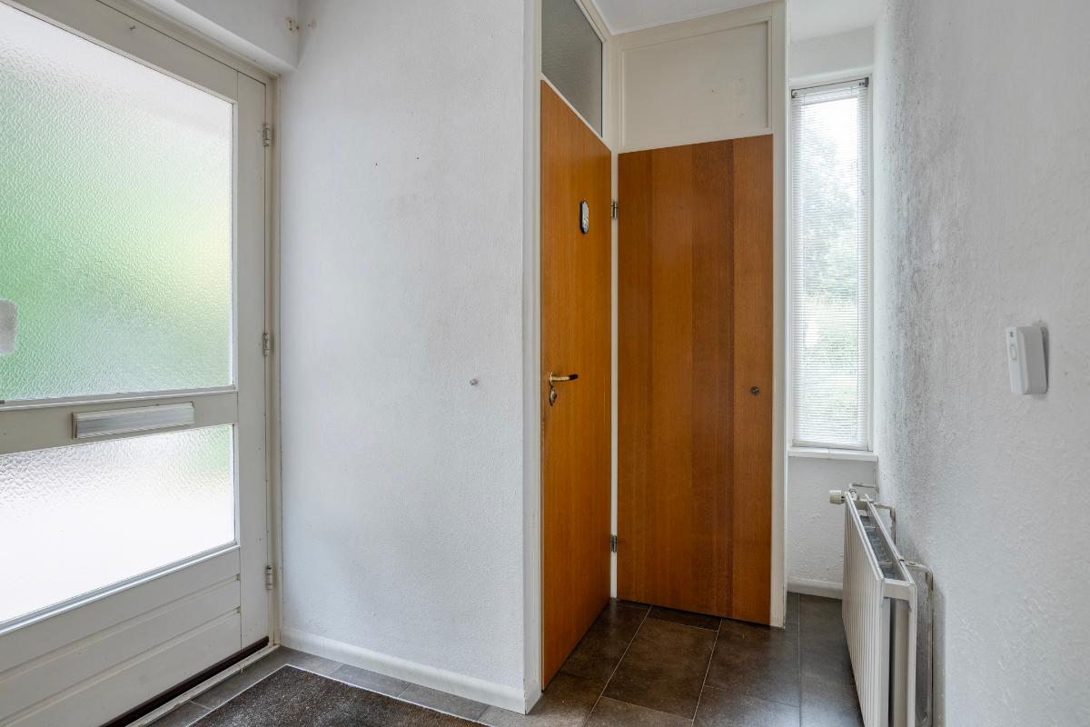 Indeling: Begane grond: entree met ruime hal met meterkast, trapopgang en moderne toiletruimte met hangtoilet en fonteintje. De royale Z-vormige woonkamer is v.v. een inzet houtkachel, bergruimte onder de trap en een tuindeur. De woonkamer staat in open verbinding met de aangebouwde eetkamer en de deels open keuken. De heerlijk zonnige eetkamer heeft een grote dakkoepel, dubbele openslaande tuindeuren en biedt door de royale raampartij een mooi zicht op de tuin. De gedeeltelijk open keuken heeft een L-vormige keukeninrichting met dubbele spoelbak en een ingebouwde gaskookplaat, afzuigkap, koelkast en een combi oven-magnetron. De ruime bijkeuken heeft een bergvliering met c.v.ketel. De bijkeuken geeft toegang tot de zeer royale inpandige berging (voormalige garage) v.v. dubbele openslaande tuindeuren. 1e Verdieping: overloop met drie slaapkamers resp. 6, 13 v.v. wastafel en 14 m². De badkamer heeft een douchecabine, wastafel, toilet en wasmachine aansluiting. Vaste trap naar: 2e Verdieping: voorzolder en een aparte slaapkamer met bergruimte en twee dakramen.