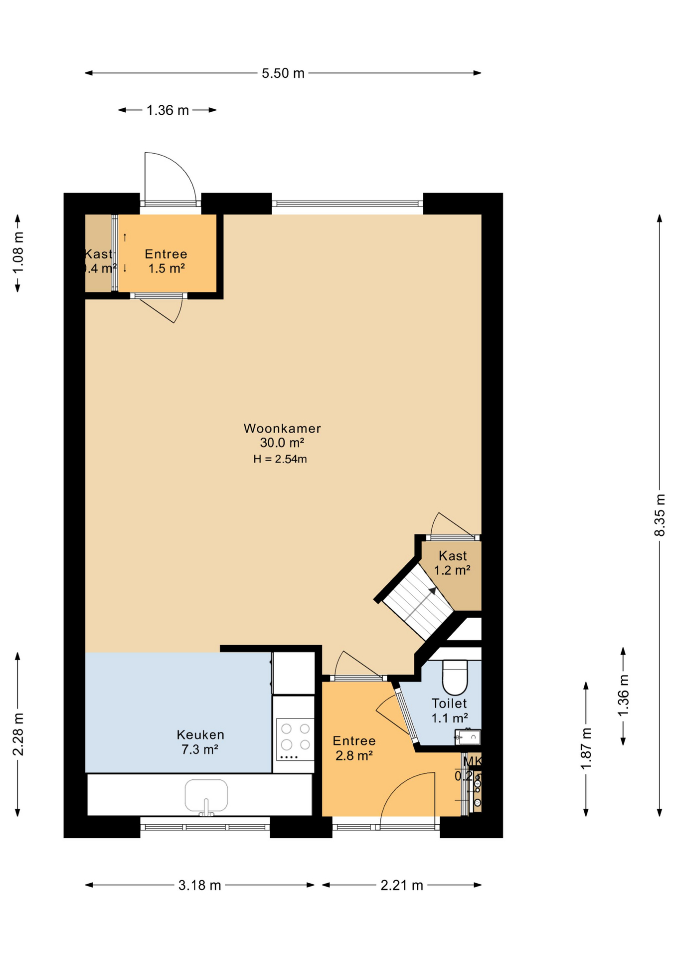 Begane grond Op de begane grond vind je een ruime woonkamer van 33m², licht en uitnodigend met voldoende ruimte voor het hele gezin. De keuken is goed ingericht en heeft een oppervlakte van 7m², perfect voor het bereiden van maaltijden.