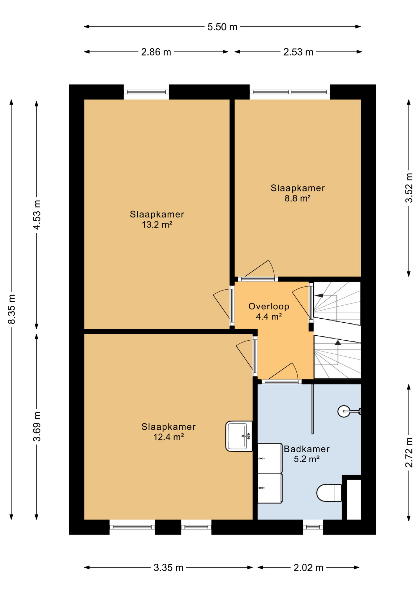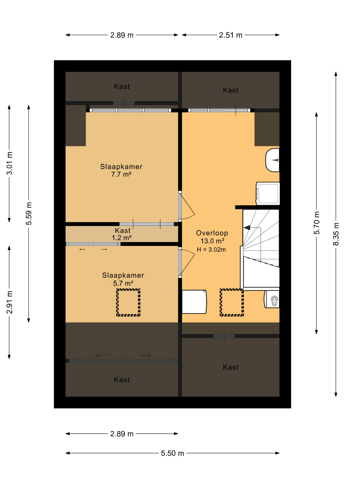 Verdiepingen & Indeling Op de eerste verdieping zijn er drie slaapkamers en een luxe badkamer voorzien van een toilet, douche en dubbele wastafel met veel ruimte. De tweede verdieping bestaat uit twee extra slaapkamers, waardoor dit huis veel flexibiliteit biedt voor gezinnen of mensen die extra ruimte nodig hebben.