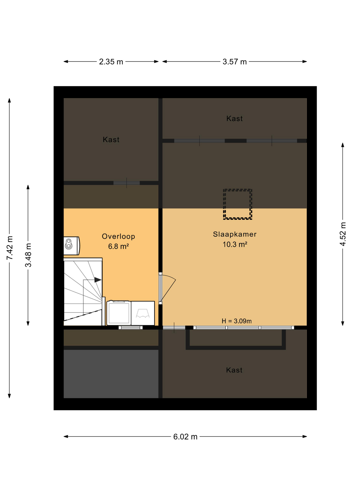 Tweede verdieping Via een vaste trap kom je op de zolderverdieping, waar je de vierde slaapkamer vindt. Deze ruimte is verrassend licht door het dakraam en biedt voldoende ruimte voor een logeerkamer, werkkamer of hobbyruimte. Ook is er extra bergruimte en een aparte hoek met aansluitingen voor de wasmachine.