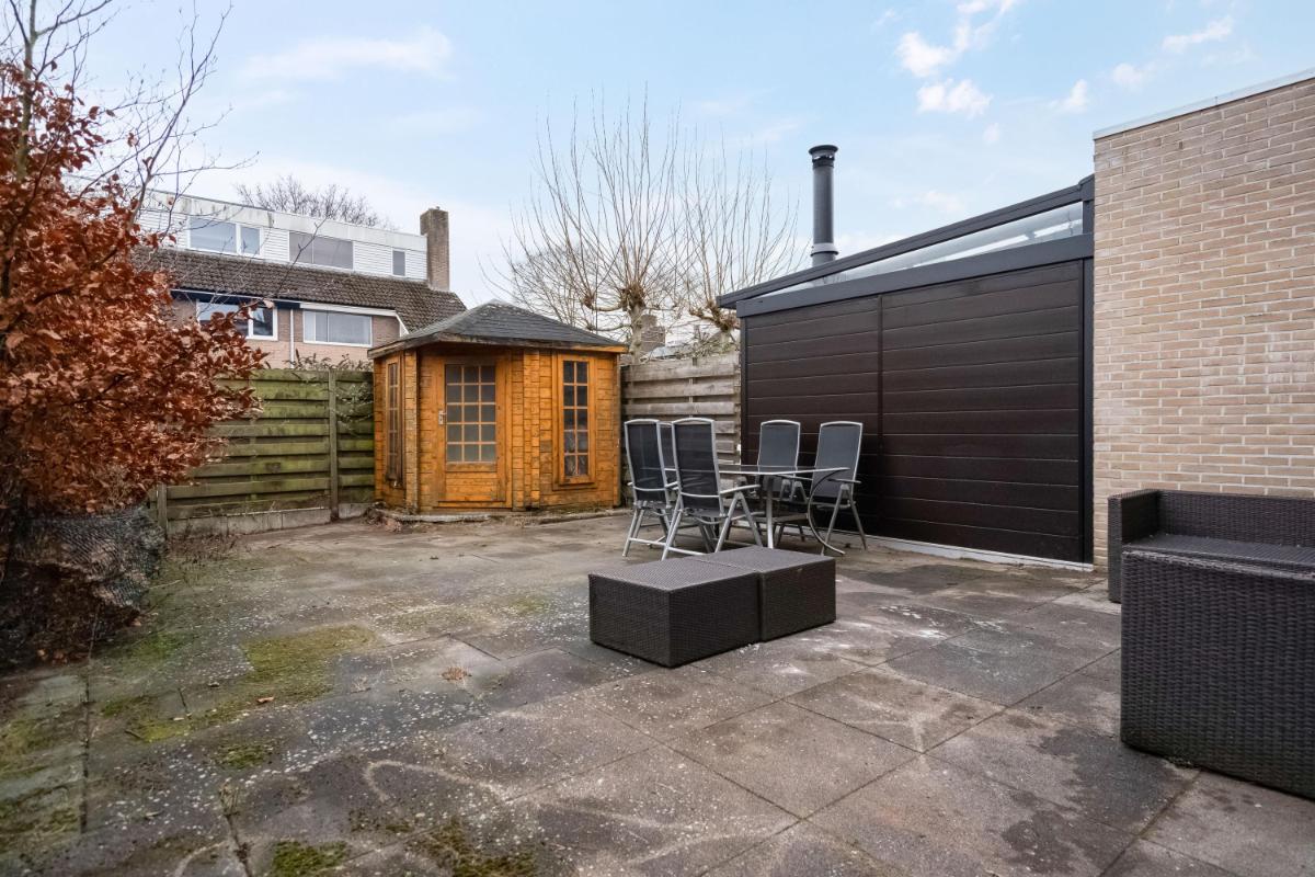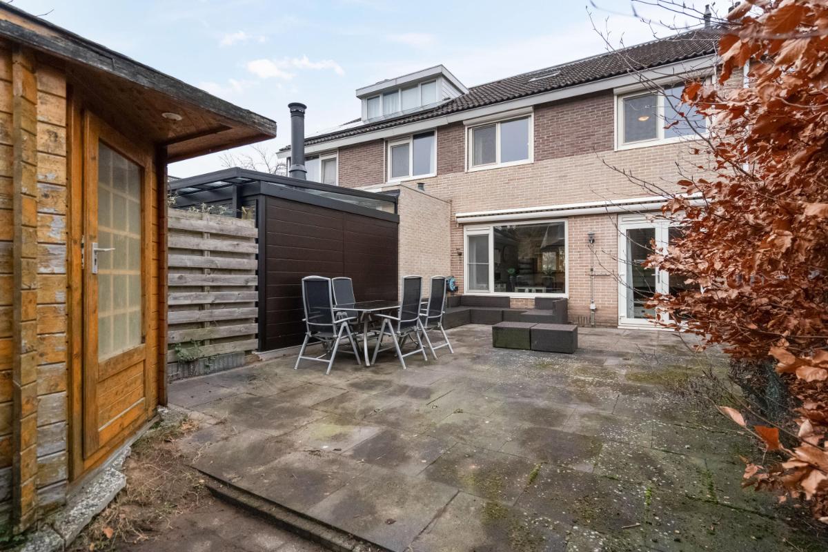 Buiten De achtertuin is aangelegd met bestrating, en ligt op het zuidwesten, dus je zit hier heerlijk in de middag- en avondzon. In de tuin staat een houten tuinhuisje, ideaal voor het opbergen van tuinkussens, gereedschap of kinderspeelgoed. De ruime stenen berging bevindt zich in de voortuin en biedt voldoende plek voor fietsen of andere spullen. Een achterom zorgt voor extra gemak.