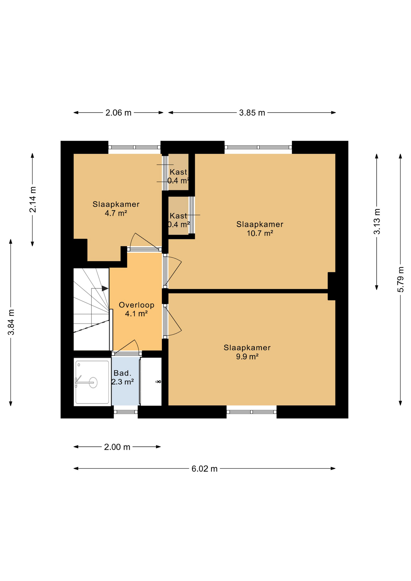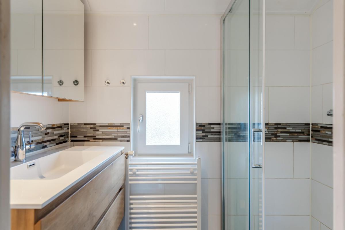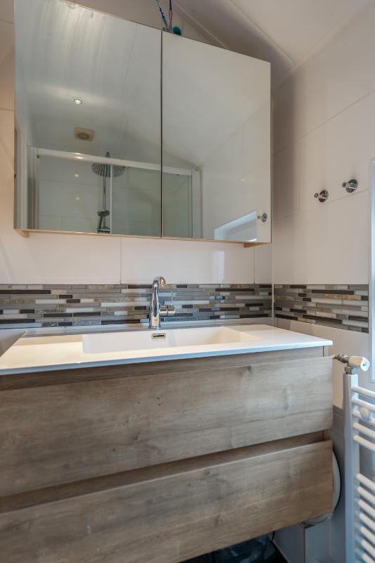 Eerste verdieping Op de verdieping bevinden zich drie slaapkamers. Twee van de kamers beschikken over ingebouwde kasten. Alle kamers zijn afgewerkt met een laminaatvloer en nette wanden. Ook de ramen zorgen voor lekker veel daglicht. De badkamer is volledig betegeld en voorzien van een douchecabine, wastafelmeubel met lades en spiegelkast, designradiator en een raam voor natuurlijke ventilatie. Ook is er mechanische ventilatie aanwezig.