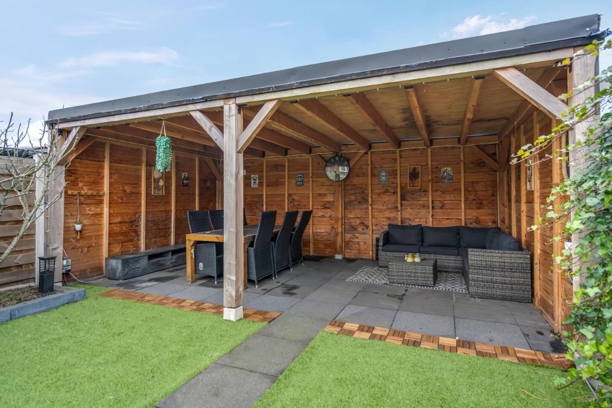 Buiten Aan de voorzijde van het huis ligt een nette voortuin met ruimte voor een zitje in de avondzon. De achtertuin ligt op het zuidoosten, dus volop zon van ’s ochtends tot halverwege de middag. De tuin is diep, groen en goed beschut. Er is ruimte genoeg voor meerdere terrassen, speelruimte, of zelfs een moestuin. Achterin de tuin vind je twee bergingen die met elkaar verbonden zijn via een binnendeur, ideaal voor opslag of hobby’s.
