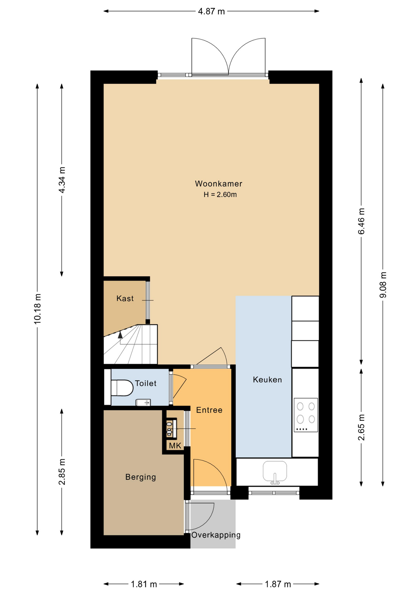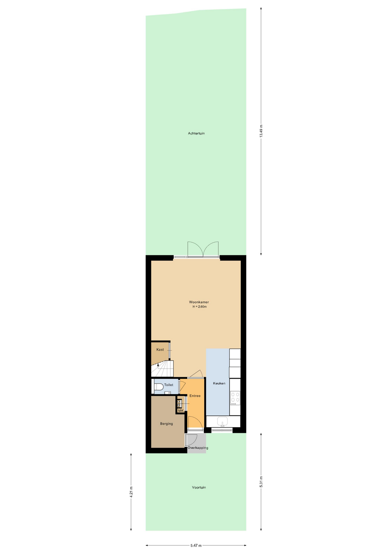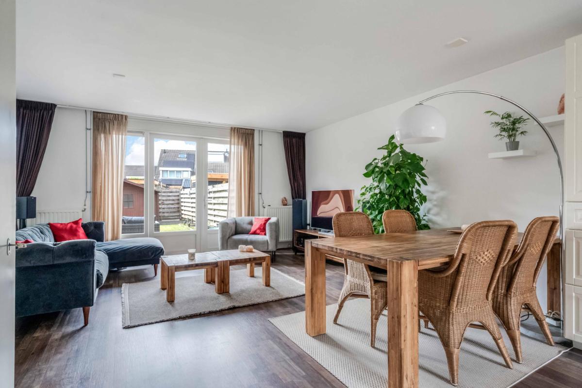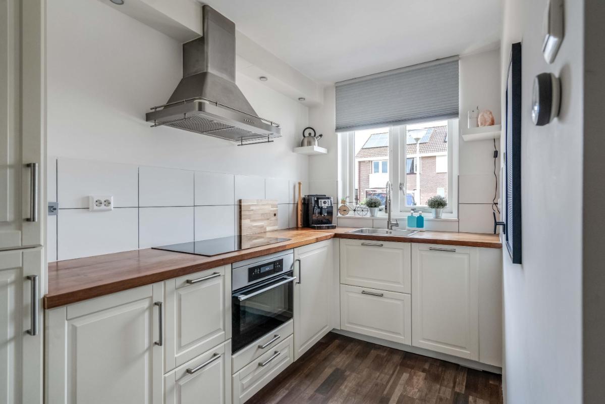 Begane grond Via de overkapte entree stap je binnen in de hal, waar je direct toegang hebt tot het moderne toilet, de meterkast, de praktische berging aan de voorzijde en de trapopgang. De hal loopt door naar de woonkamer en halfgesloten keuken, die gescheiden zijn maar toch in open verbinding met elkaar staan. De keuken aan de voorzijde is in 2018 vernieuwd en straalt rust en klasse uit met een landelijke stijl, witte fronten en een houtkleurig werkblad. Dankzij de slimme L-vorm profiteer je van veel werkruimte en kastruimte. Alle inbouwapparatuur blijft achter, waaronder een inductiekookplaat, afzuigkap, combimagnetron, koelkast, vriezer en vaatwasser – een volledig uitgeruste keuken, klaar voor gebruik. De woonkamer is gericht op de tuinzijde en biedt een prettige sfeer dankzij het vele daglicht dat binnenvalt via de openslaande kunststof tuindeuren (2016). De vloer is afgewerkt met warmkleurig laminaat, de wanden zijn neutraal gehouden – klaar om je eigen stijl in aan te brengen. Onder de trap bevindt zich een trapkast: ideaal voor stofzuiger, voorraad of kinderspeelgoed.