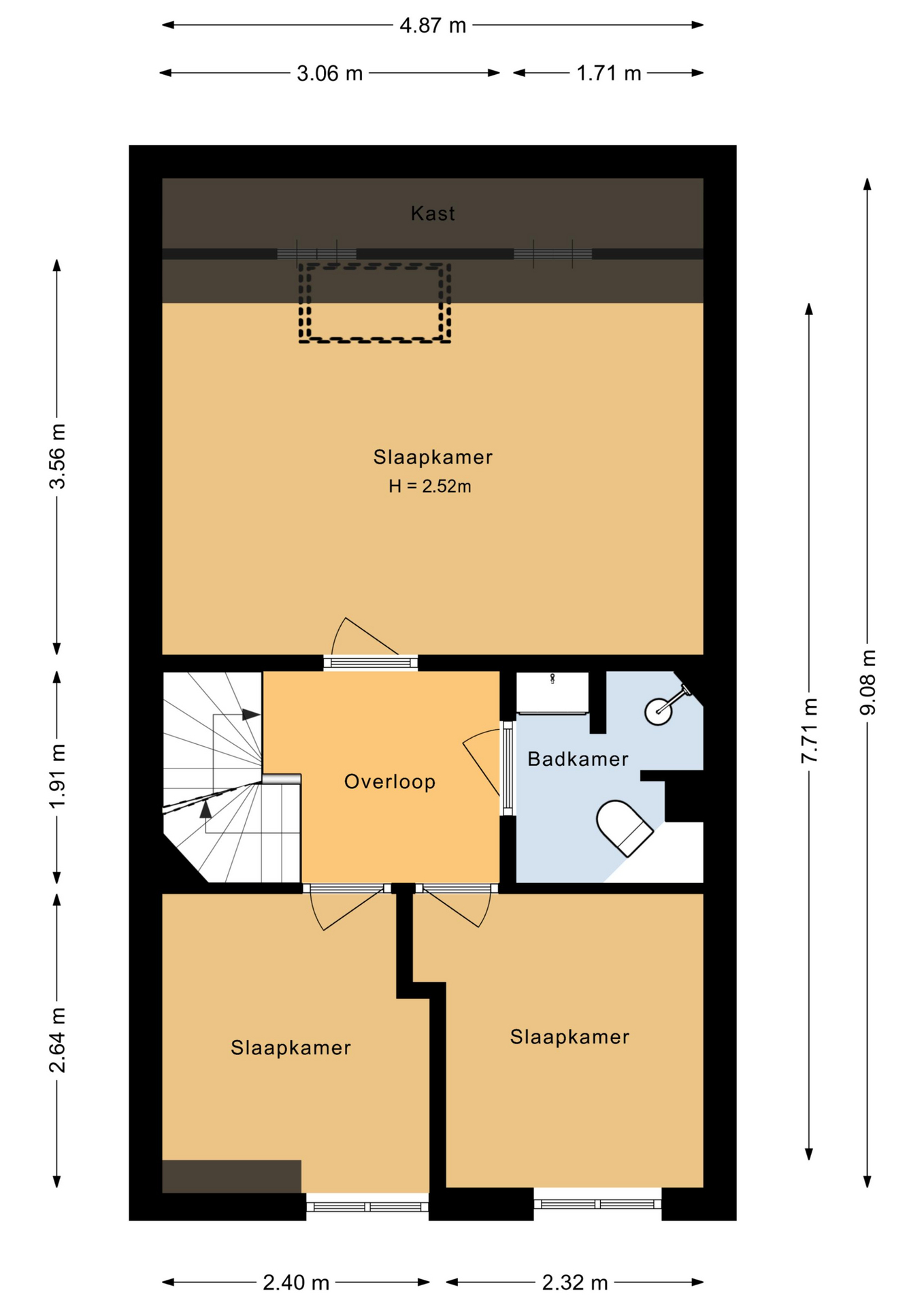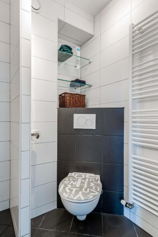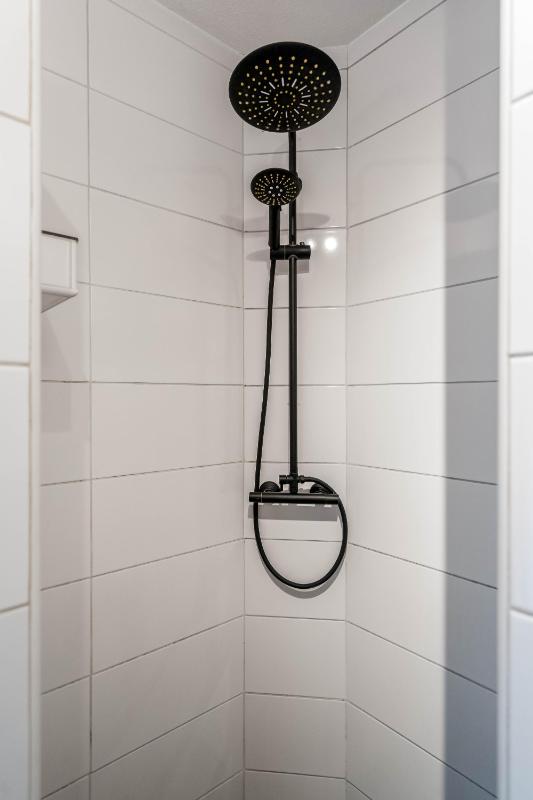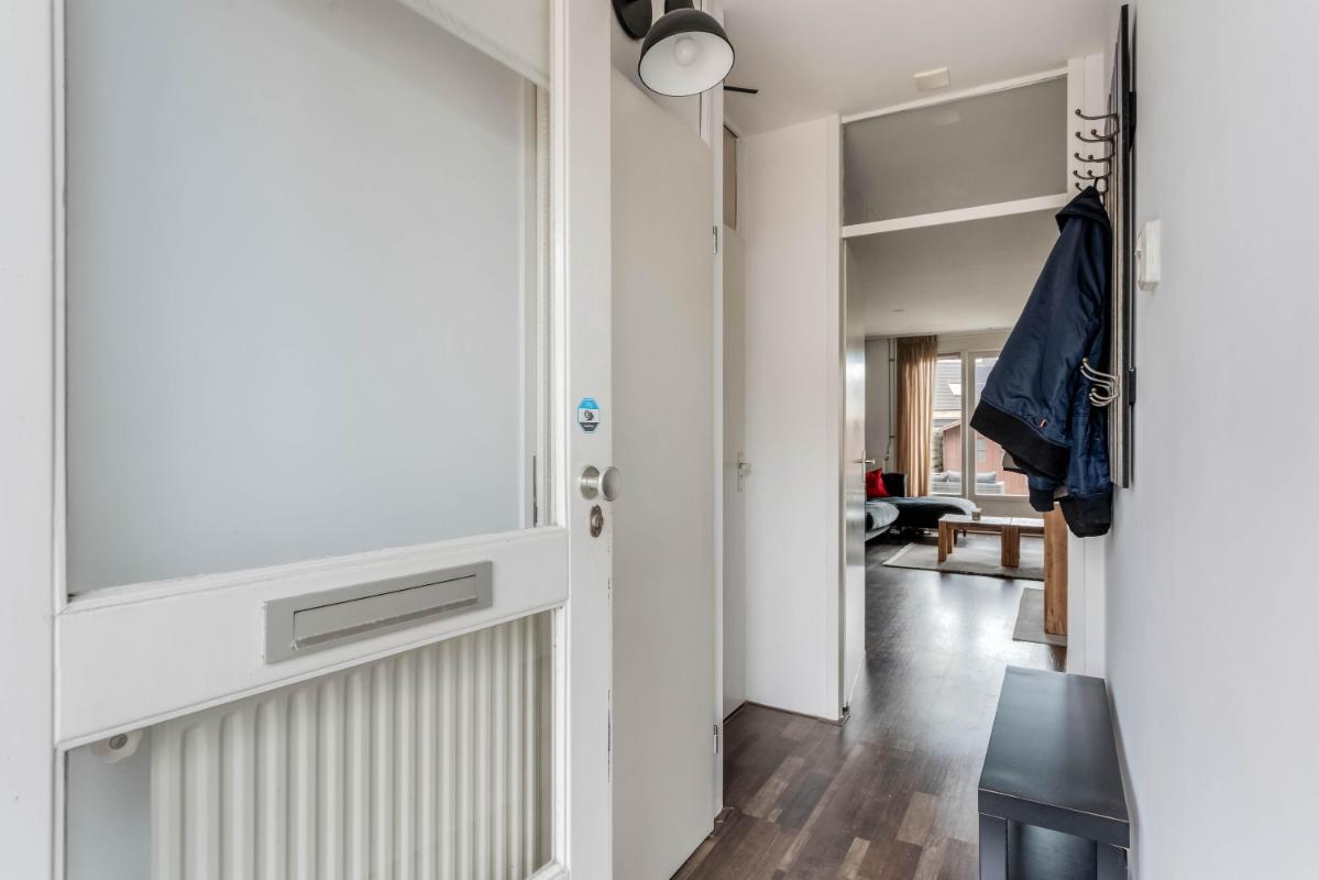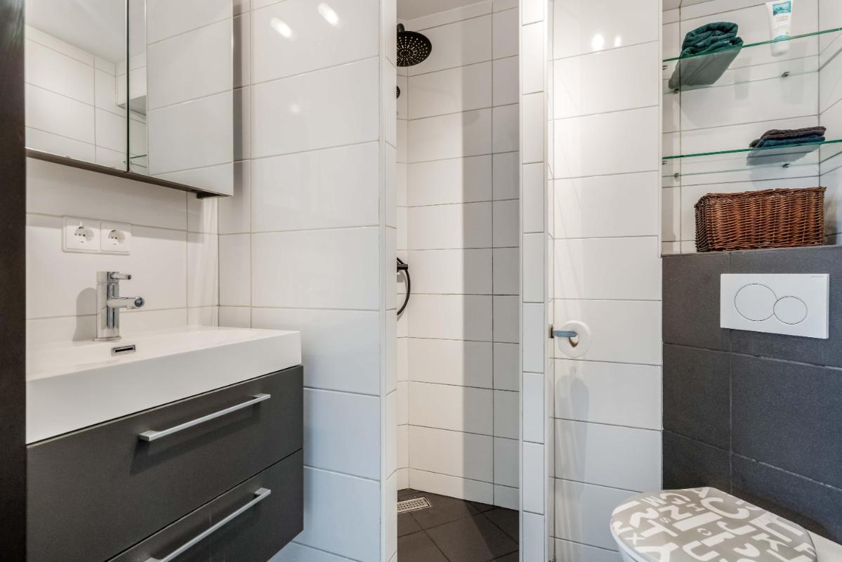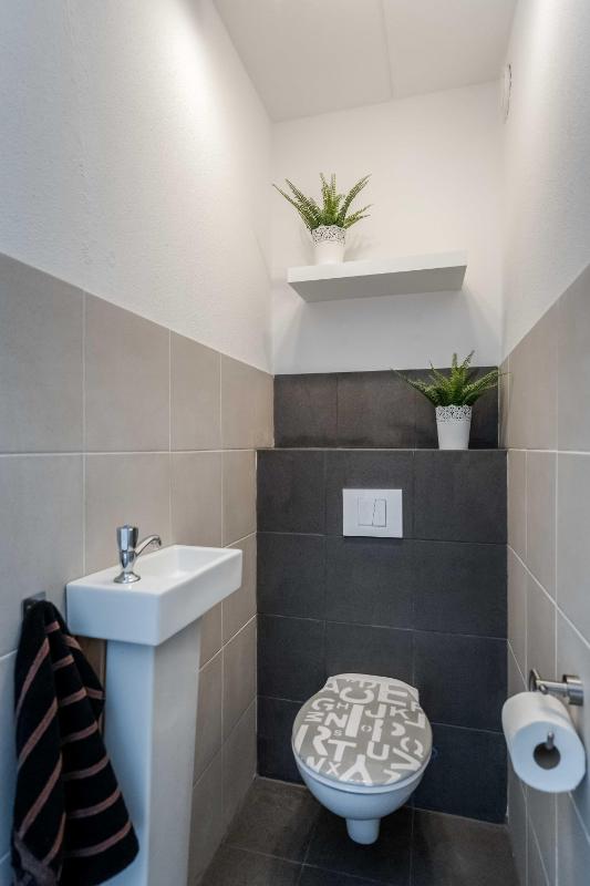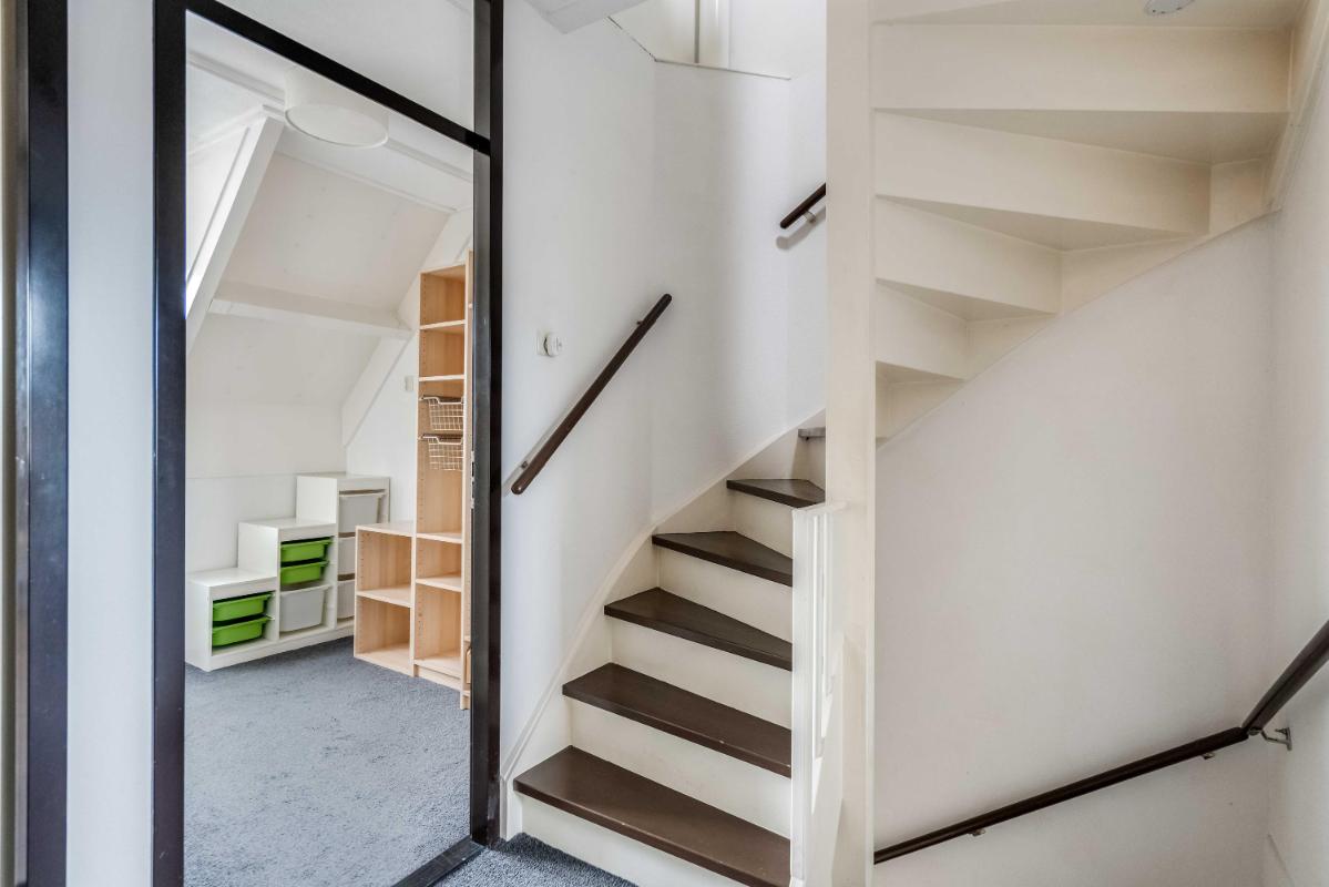 Eerste verdieping Boven vind je drie slaapkamers, allemaal met een fijne lichtinval en praktische indeling. De hoofdslaapkamer aan de achterzijde is ruim genoeg voor een tweepersoonsbed en een flinke kastwand. De twee andere kamers zijn ideaal als kinder-, logeer- of werkkamer en bevinden zich aan de voorzijde. De badkamer is in 2017 volledig vernieuwd en heeft een frisse, moderne uitstraling met witte wandtegels, donkere vloertegels en zwart sanitair. Je vindt hier een inloopdouche met regenfunctie, een wastafelmeubel met lades, een hangend toilet en een designradiator – alles stijlvol en praktisch.