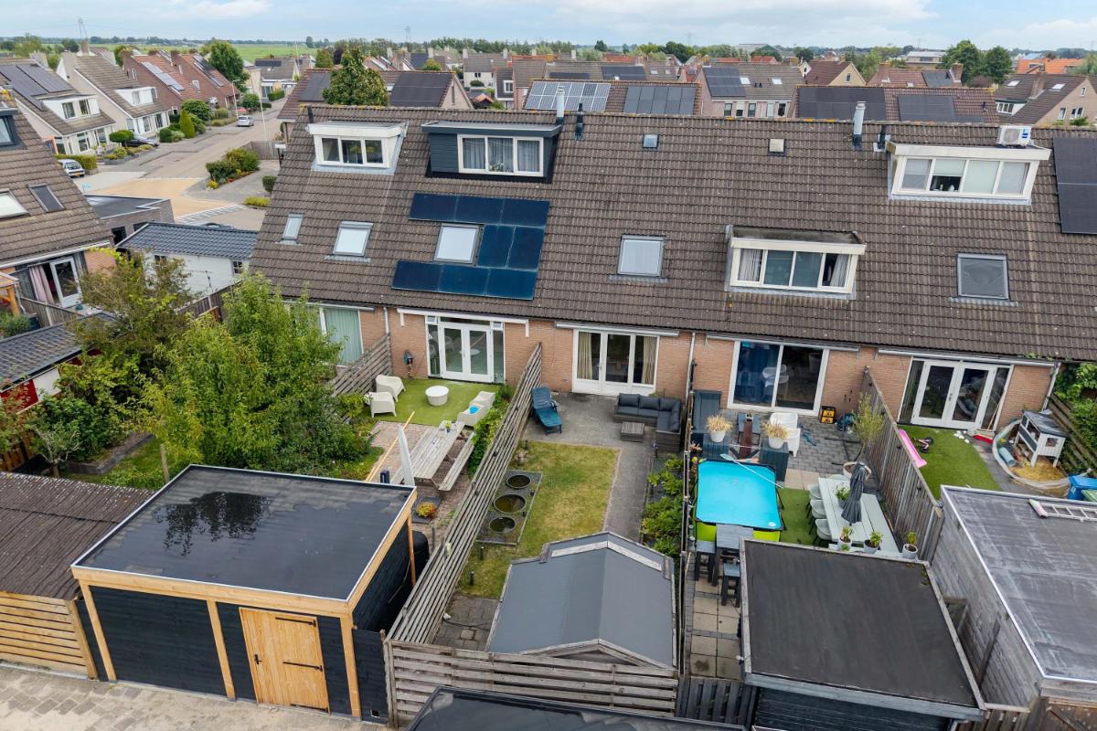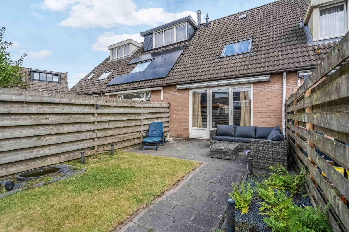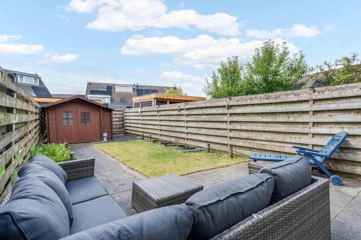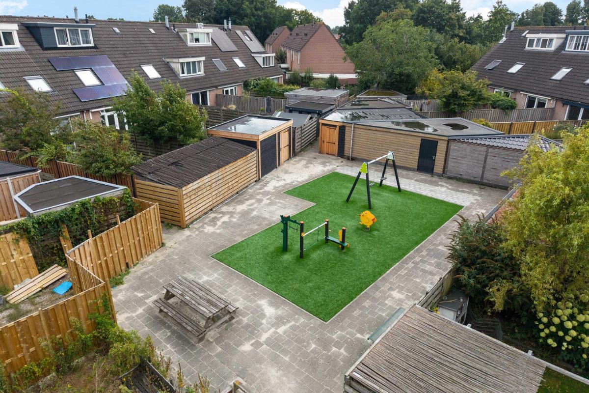 Buitenruimte De achtertuin is zonnig gelegen op het westen – ideaal voor wie ’s middags of na het werk wil genieten van de zon. De tuin is onderhoudsvriendelijk aangelegd met sierbestrating, een strook gras en een houten tuinhuis achterin. Via de achterom ben je zo buitenom weer aan de voorzijde. Aan de voorkant van de woning is bovendien eigen parkeergelegenheid – praktisch en prettig.