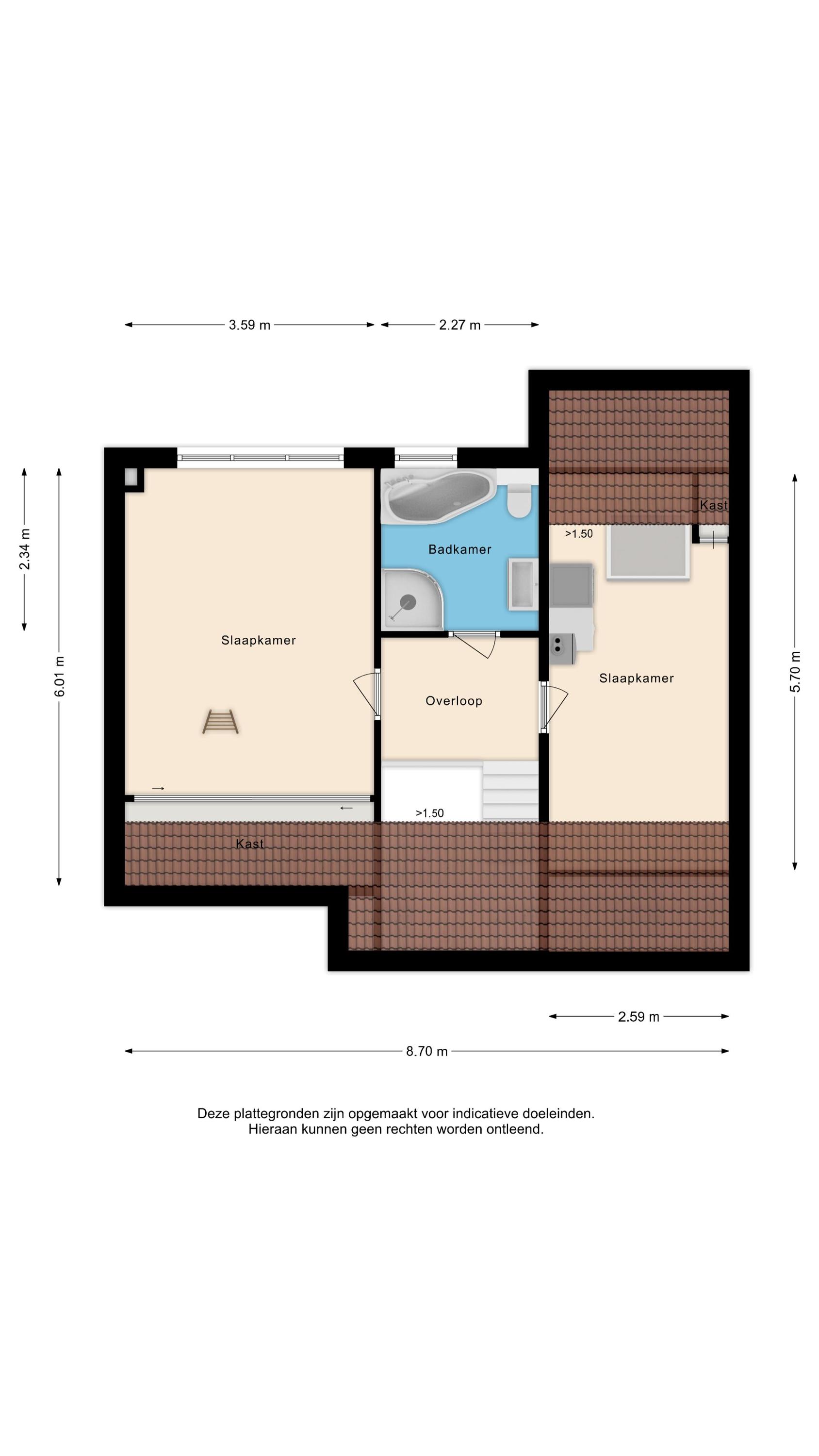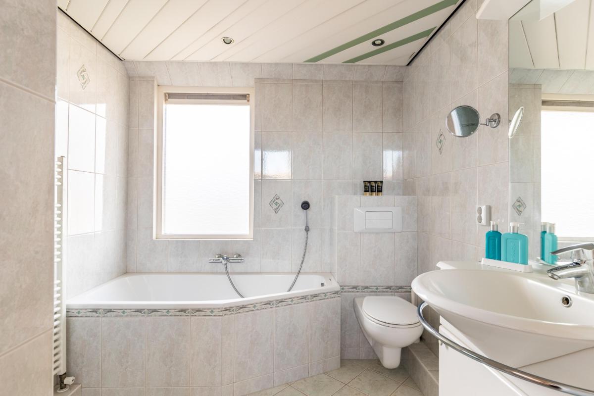 Op de eerste verdieping bevinden zich nog twee slaapkamers, een compacte vide en een verzorgde badkamer voorzien van een ligbad, wandcloset, douche, wastafelmeubel en elektrische vloerverwarming.