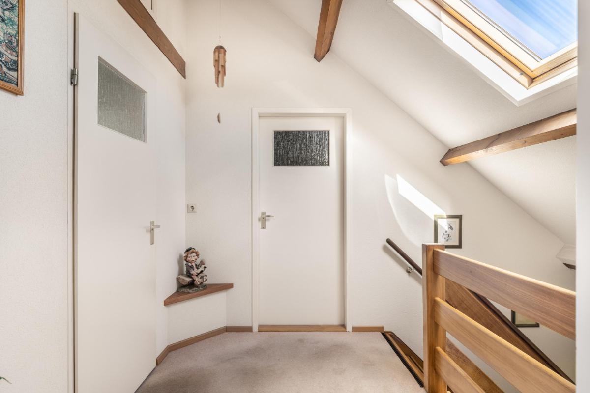Indeling Via de brede, verzorgde voortuin met oprit bereik je de entree. In de lichte hal met sfeervolle vide bevindt zich de toegang tot de woonkamer.
