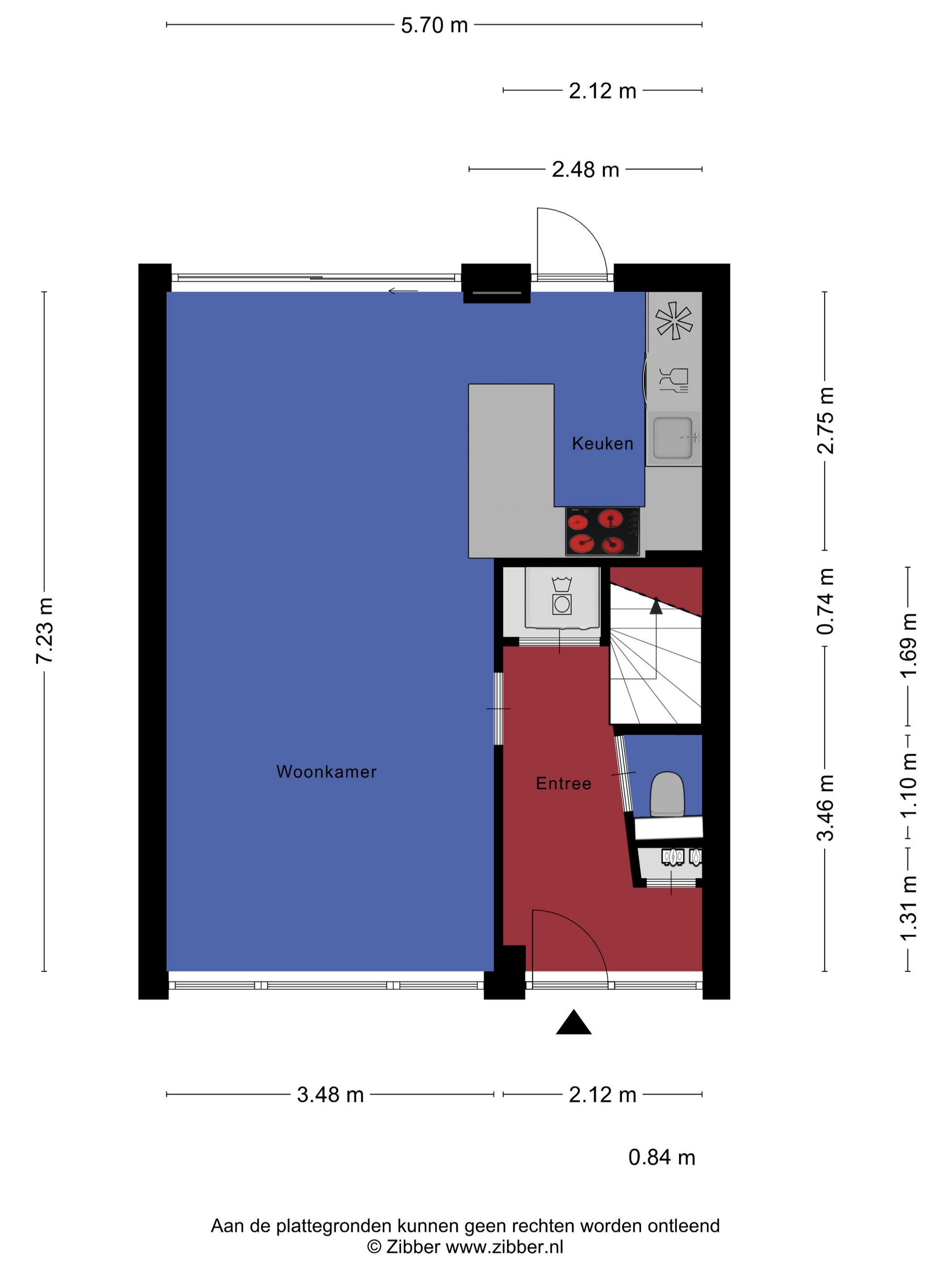 Indeling Begane grond: entree, hal, meterkast, toilet, trapopgang, trapkast met opstelling/aansluiting wasmachine/droger, toegang naar de doorzonwoonkamer met open keuken v.v. inbouwapparatuur, toegang naar de achtertuin middels een schuifpui.