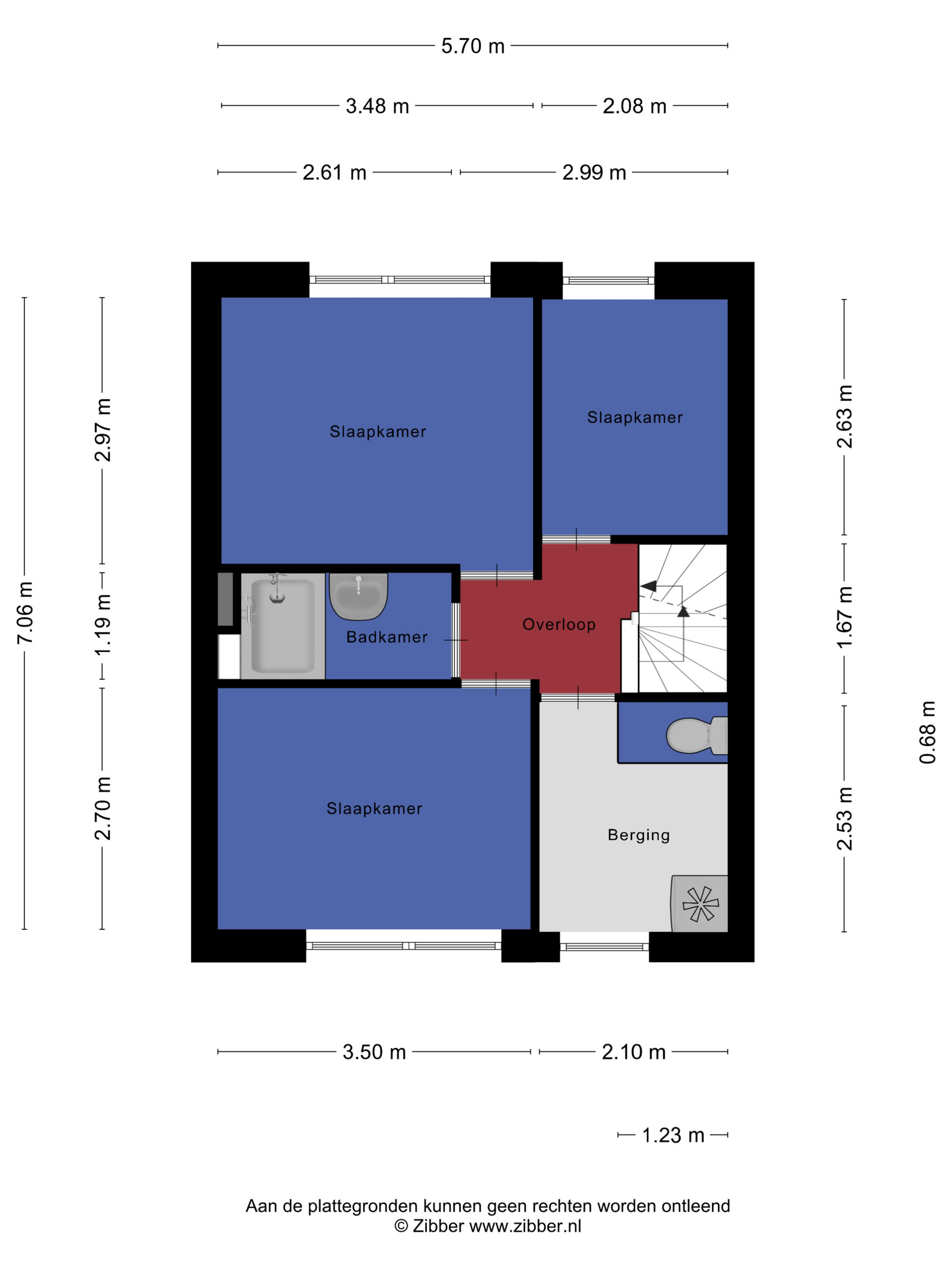 Op de eerste verdieping bevinden zich drie goede slaapkamers. Daarnaast is er een separate toiletruimte en een badcel met zitbad, douche en wastafel – functioneel en comfortabel ingericht. Via een vaste open trap bereikt u de tweede verdieping. Hier treft u een ruime open zolderverdieping met dakkapel, momenteel in gebruik als slaapkamer. Deze verdieping biedt naast de opstelplaats van de cv-ketel ook volop bergruimte en mogelijkheden voor bijvoorbeeld een werk- of hobbykamer.