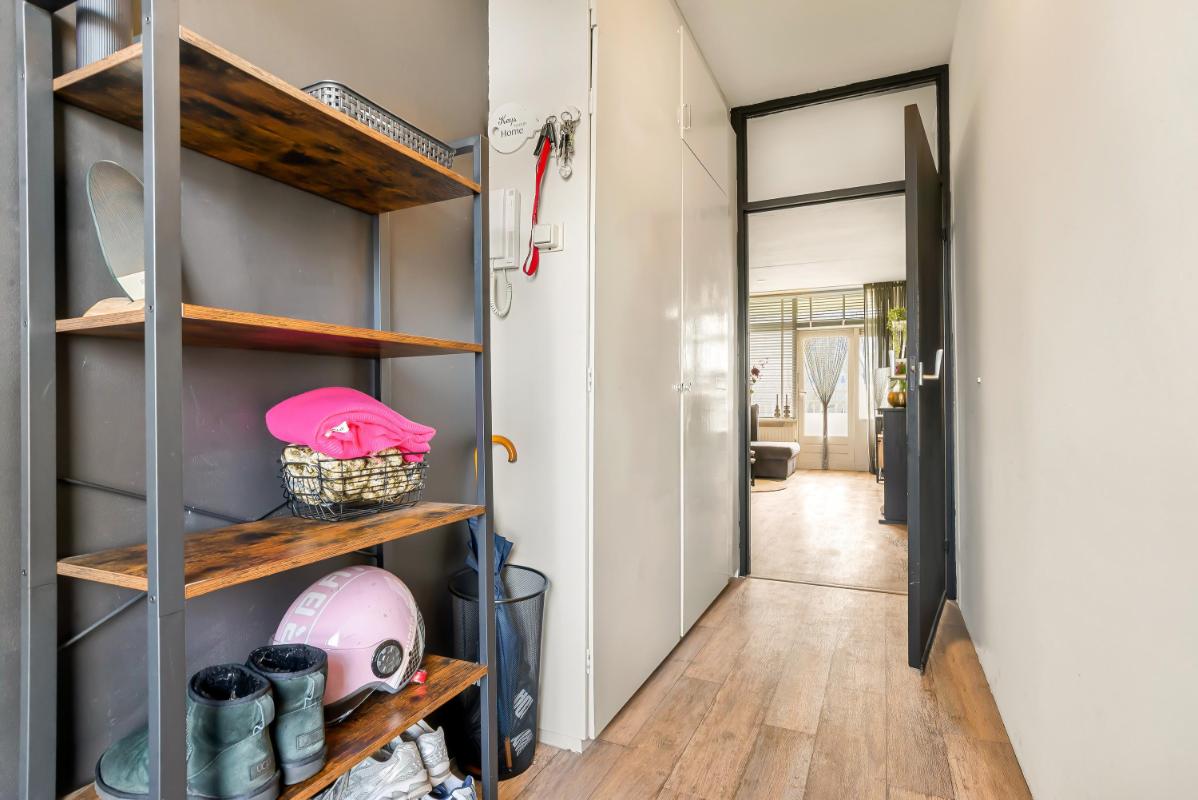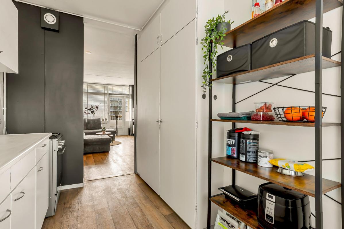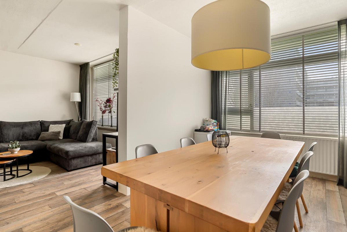 Bij binnenkomst komt u in de hal met garderobe, die toegang biedt tot de royale woonkamer. De woonkamer is praktisch ingedeeld in een sfeervol zitgedeelte en een ruim eetgedeelte. Dankzij de grote raampartijen geniet u hier van een prettige lichtinval. Vanuit de woonkamer stapt u zo het zonnige balkon op het zuidwesten op – een heerlijke plek om in de middag en avond van de zon te genieten.