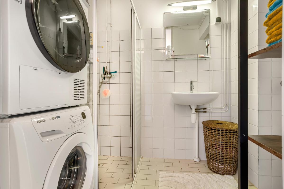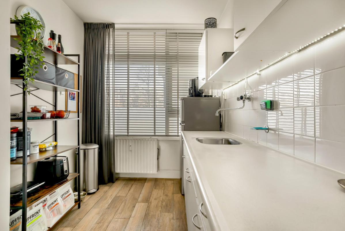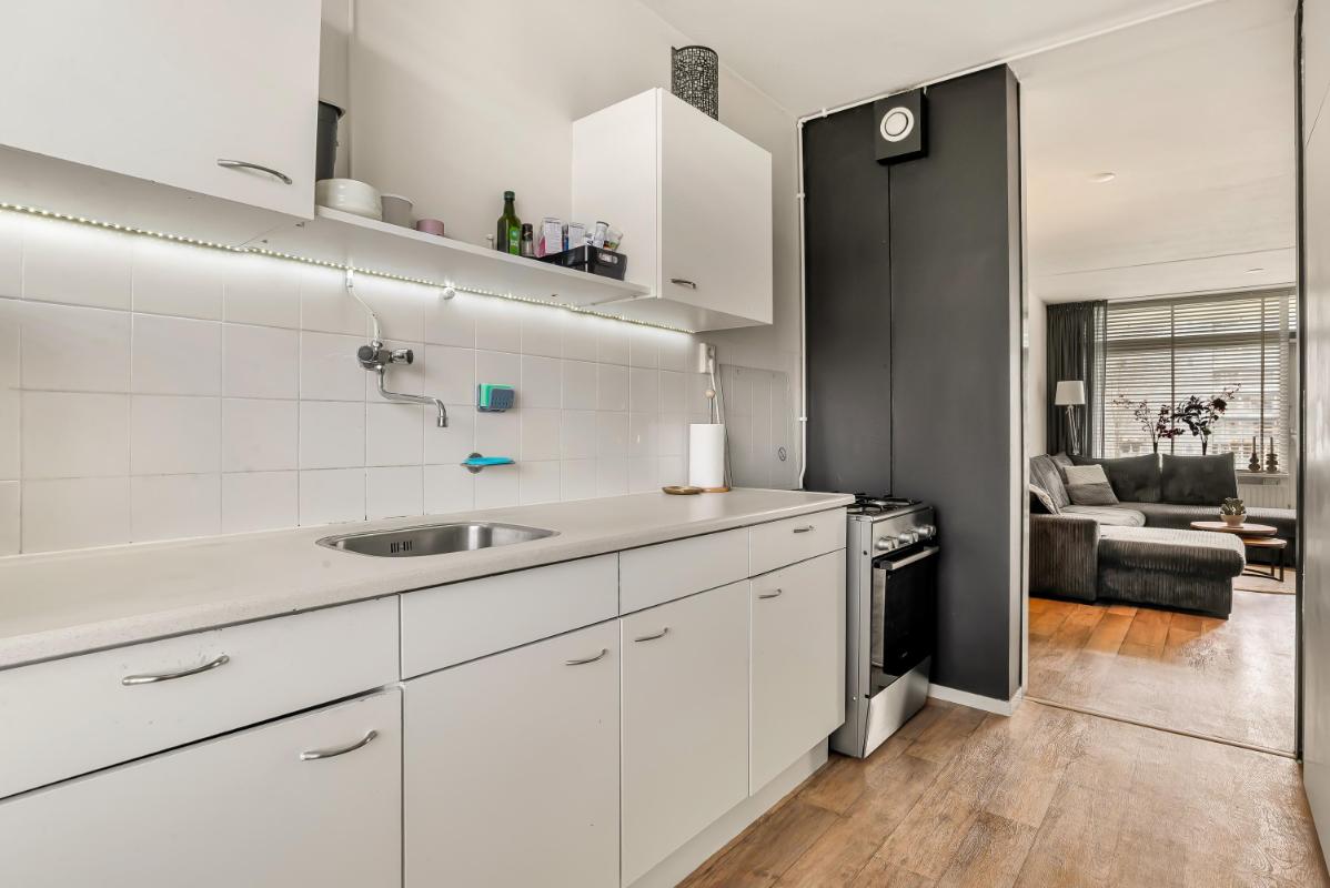 De open keuken bevindt zich aan de voorzijde van het appartement en is geplaatst in een rechte opstelling. Vanuit de tussenhal bereikt u de drie goed bemeten slaapkamers. De badkamer is voorzien van een douche, toilet en wastafel. Tevens zijn hier de wasmachine en droger opgesteld, wat zorgt voor een praktische en efficiënte indeling.