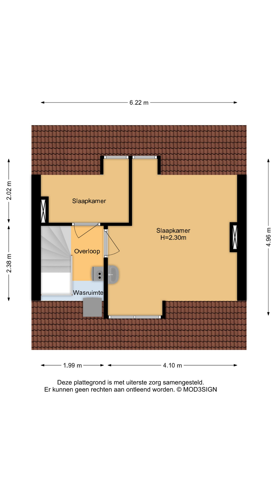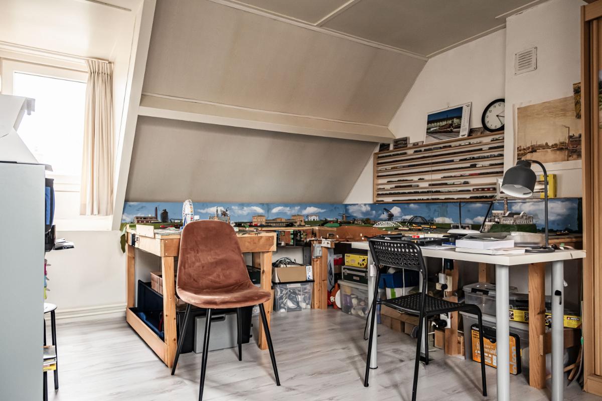 Tweede verdieping Op de tweede verdieping bevindt zich een overloop met cv-opstelling en aansluiting voor wasapparatuur. Daarnaast is er een kleine achterkamer met dakkapel en een royale multifunctionele zolderkamer met dakkapellen aan zowel de voor- als achterzijde, alsmede ruime bergruimte achter de knieschotten.