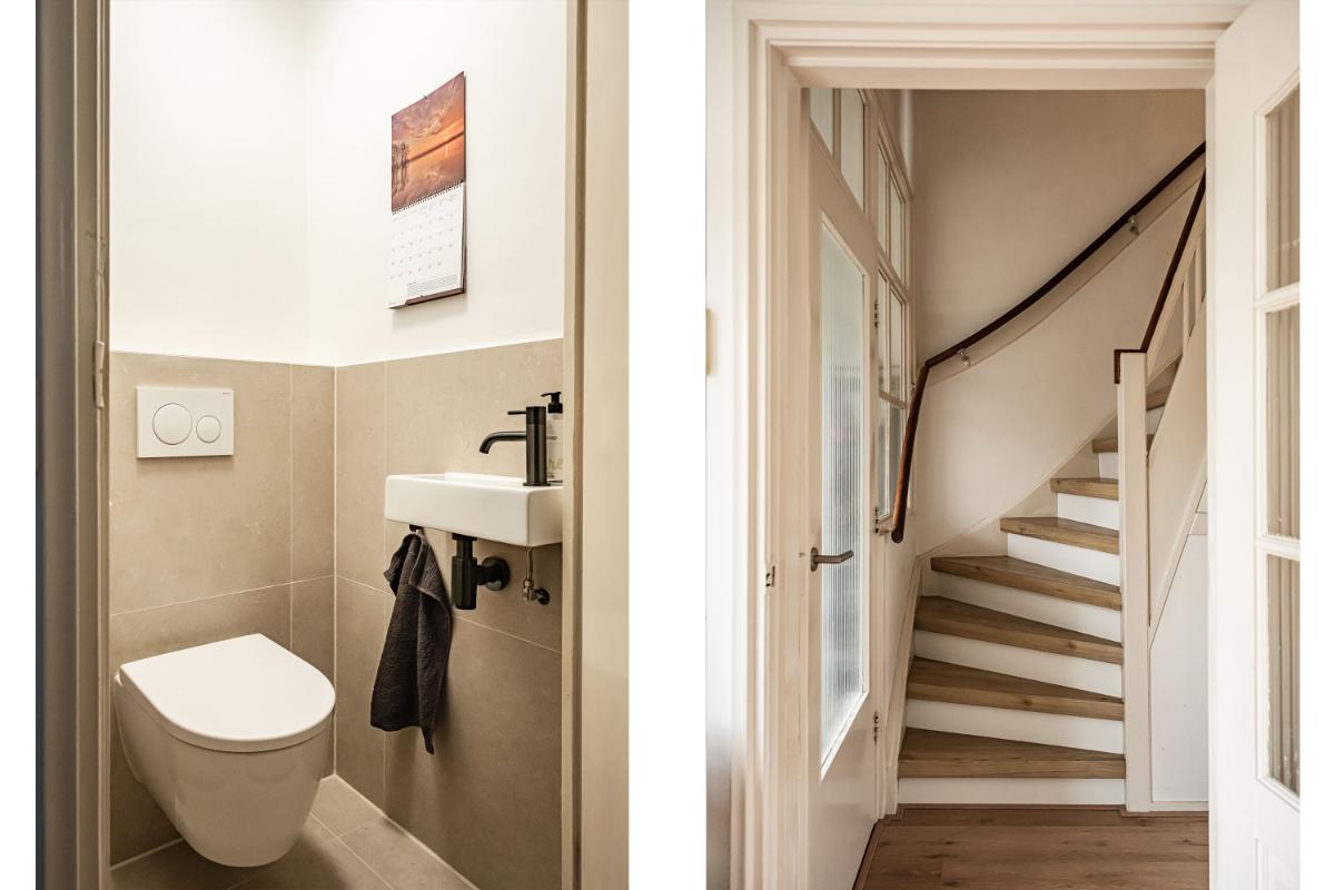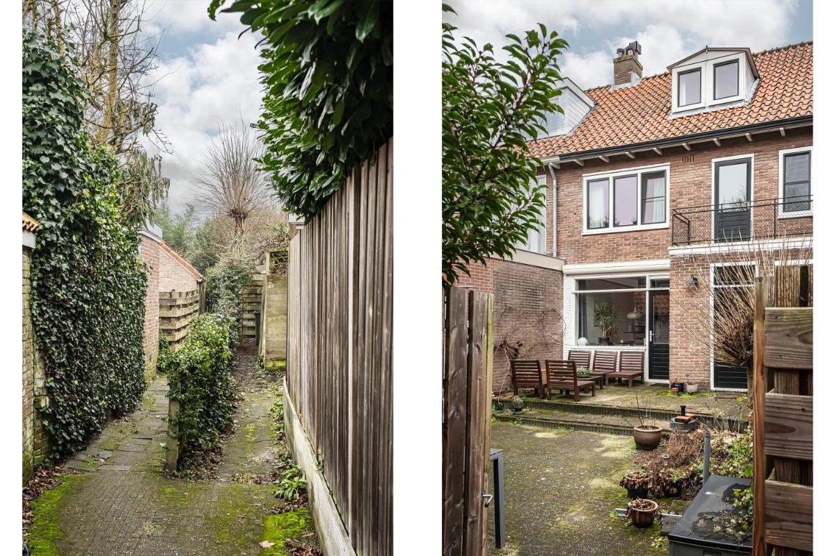 Indeling De entree leidt naar een verzorgde vestibule met vernieuwde meterkast, gevolgd door een hal met verdiepte kelderkast en een modern toilet met fontein (2025). De recent gemoderniseerde keuken (2024) is uitgevoerd in een hoogwaardige afwerking en voorzien van luxe inbouwapparatuur, waaronder een Quooker, keramische kookplaat en een Bora afzuiginstallatie, aangevuld met een stijlvolle kastenwand. De sfeervolle woonkamer is afgewerkt met een parketvloer, een open kastenwand en een schoorsteen met binnenmantel en aansluiting voor een houtkachel. Via openslaande deur is de tuin bereikbaar.