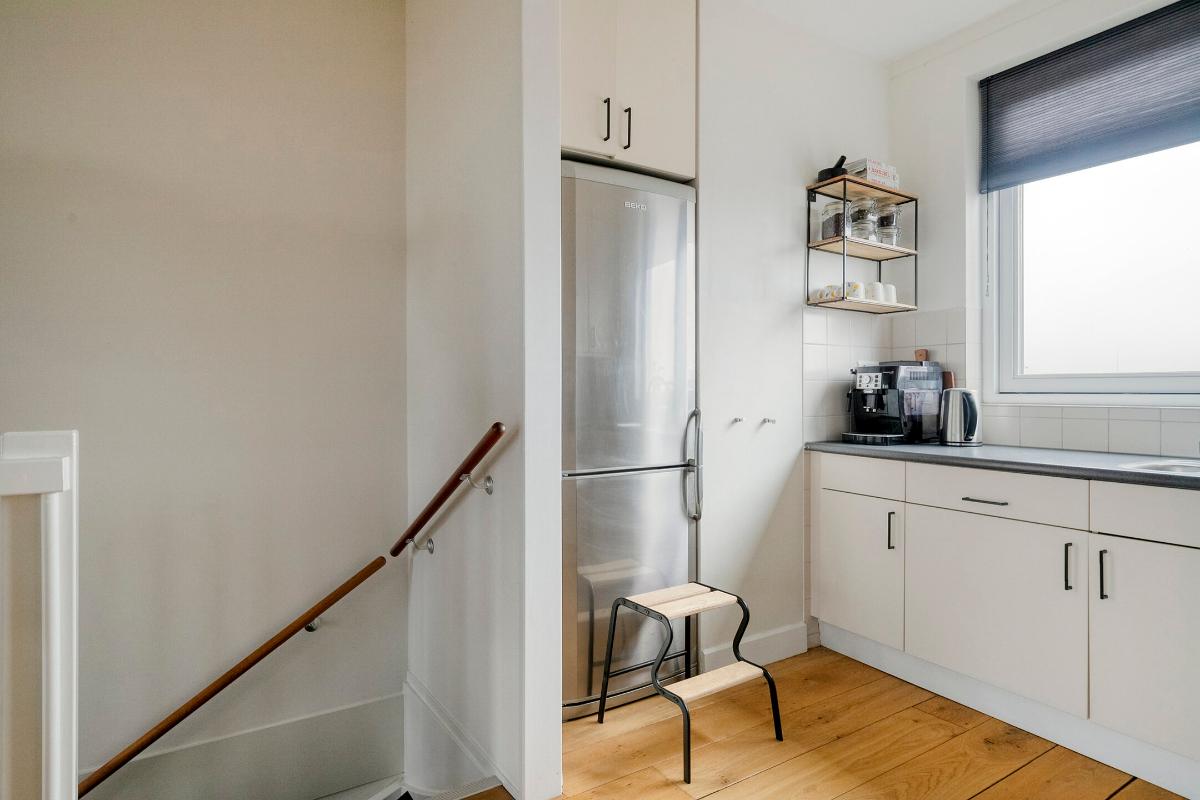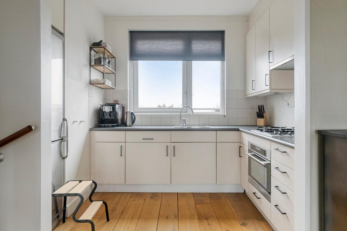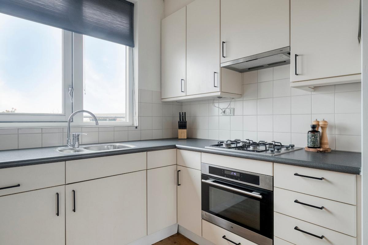 De open keuken is geplaatst in een hoekopstelling met extra nis voor een koel-vriescombinatie en bovenkastje voor extra opbergruimte. De keuken is compleet uitgerust met de volgende inbouwapparatuur: een 4-pits gaskookplaat met afzuigkap, vaatwasser en combi-oven (2023). Het raam zorgt voor de mogelijkheid tot natuurlijke ventilatie en geeft een fraai uitzicht naar buiten.