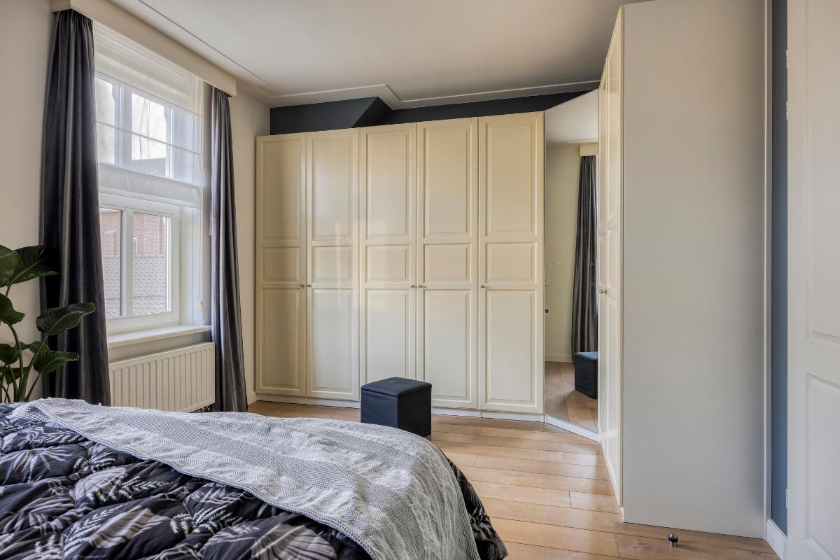 Slaapkamer 1 De ouderslaapkamer ligt aan de achterzijde en is bijzonder royaal. De kamer is strak afgewerkt met gestuukte wanden en plafond. In combinatie met de houten vloer ademt het een rustige en comfortabele sfeer. Twee ramen zorgen voor veel lichtinval en een prettige ventilatie. Eén van de twee ramen is een draai-/kiepraam.