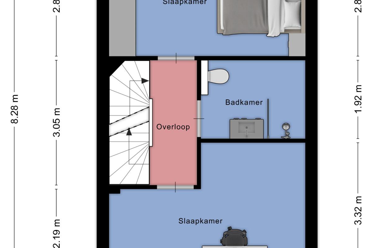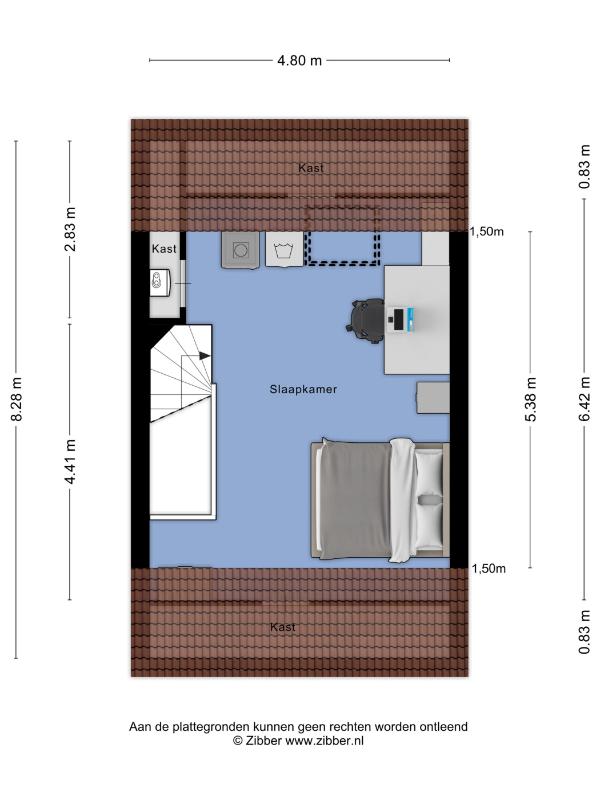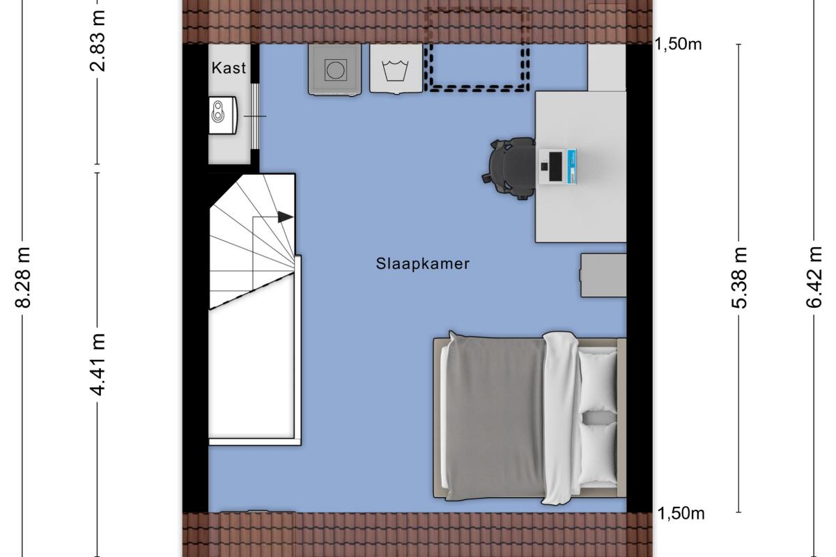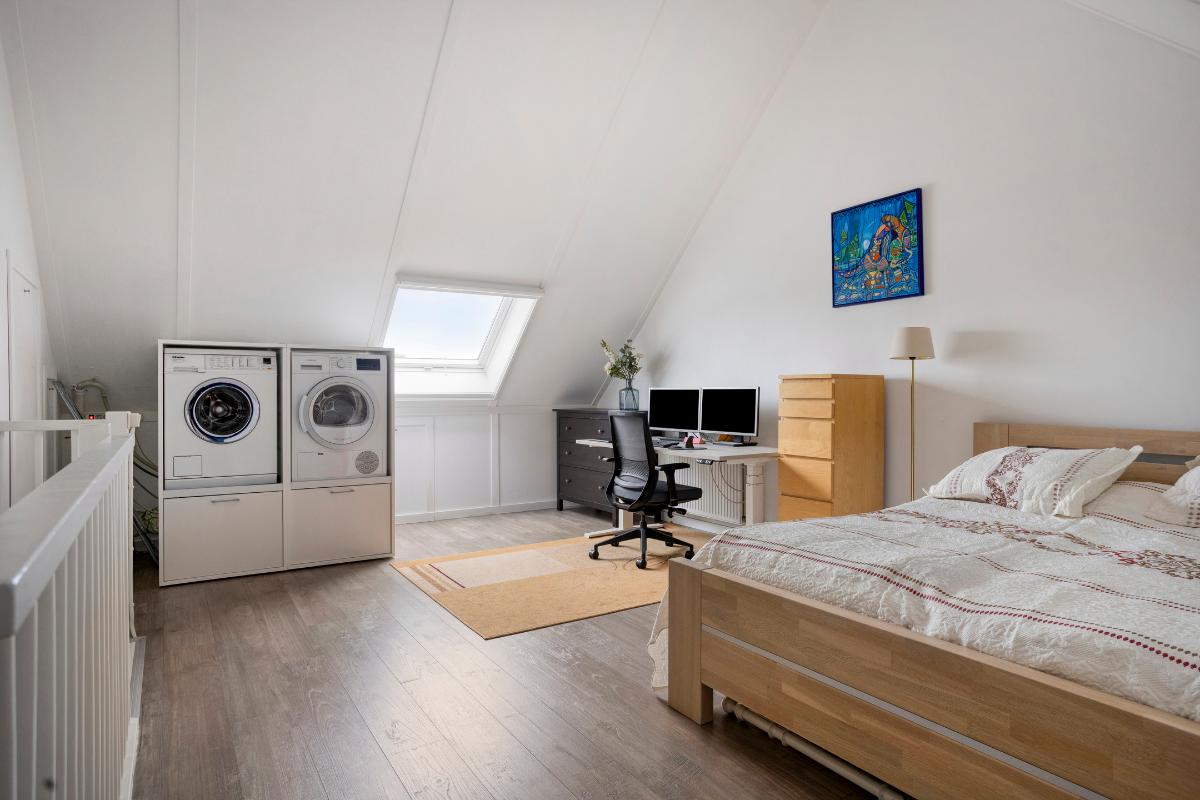 2e verdieping. Middels een vaste trap is de 2e verdieping bereikbaar. Door de grootte van deze ruimte is het mogelijk om een tweetal slaapkamers en een bergvliering te realiseren. De ruimte is reeds voorzien van een dakraam, een laminaatvloer en de aansluiting voor de wasapparatuur. Onder de kapschuinte bevindt zich extra bergruimte. Achter een kastenwand is de mechanische ventilatie-unit en de CV-ketel (2017) weggewerkt.