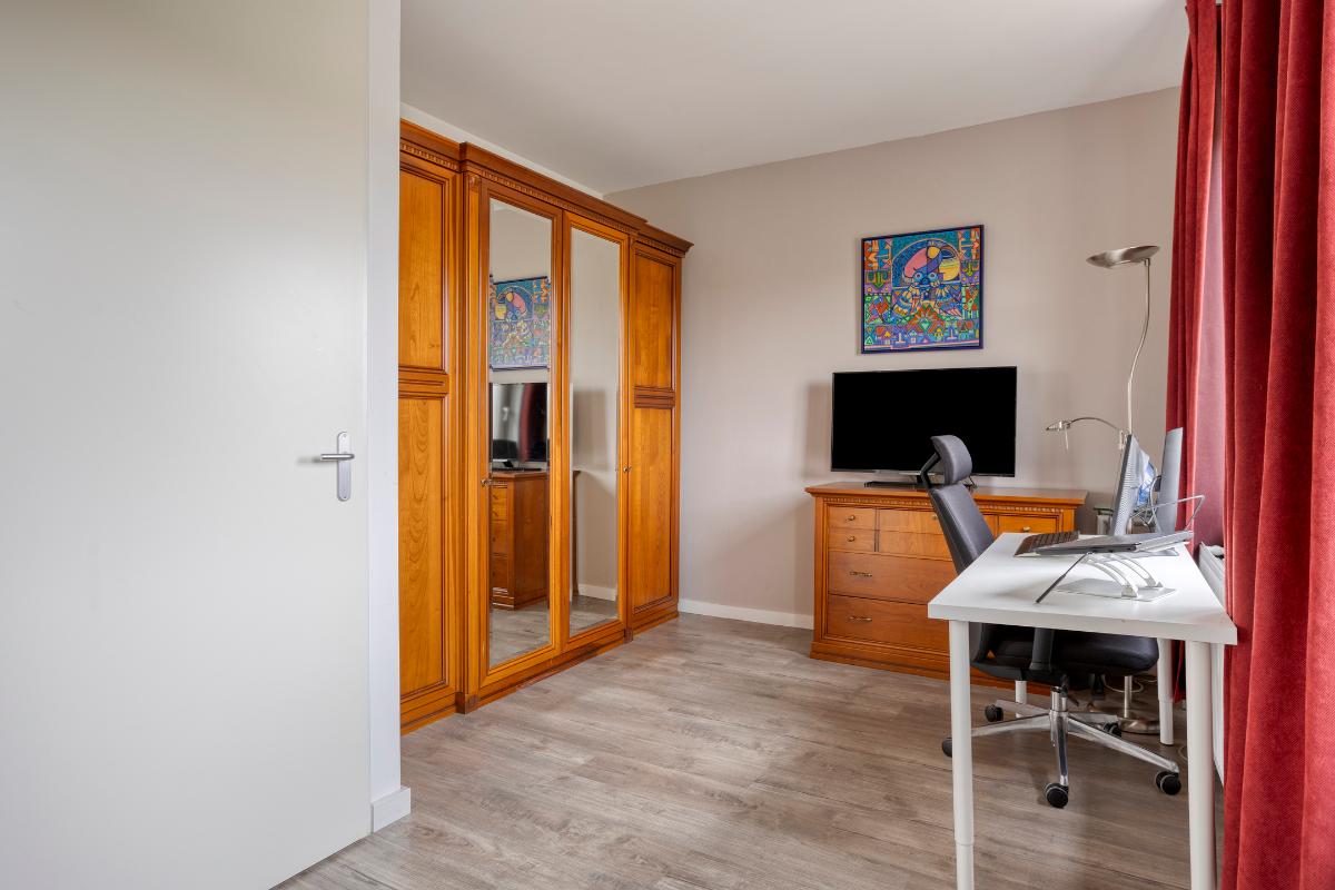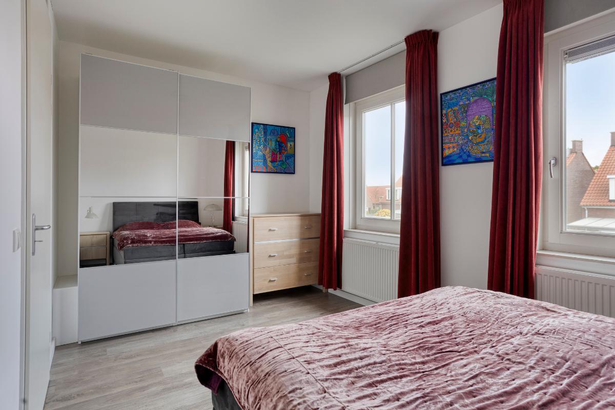 Slaapkamer 1 is gelegen aan de achterzijde over de volle breedte van de woning. De slaapkamer is voorzien van een gestuukt plafond, gestuukte wandafwerking en draai-kiepramen.