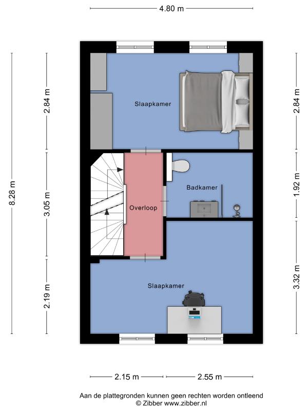 Slaapkamer 2 is gelegen aan de voorzijde over de volle breedte van de woning (mogelijkheid tot het realiseren van een tweetal slaapkamers). Deze slaapkamer is eveneens voorzien van een laminaatvloer en een gladde muurafwerking.