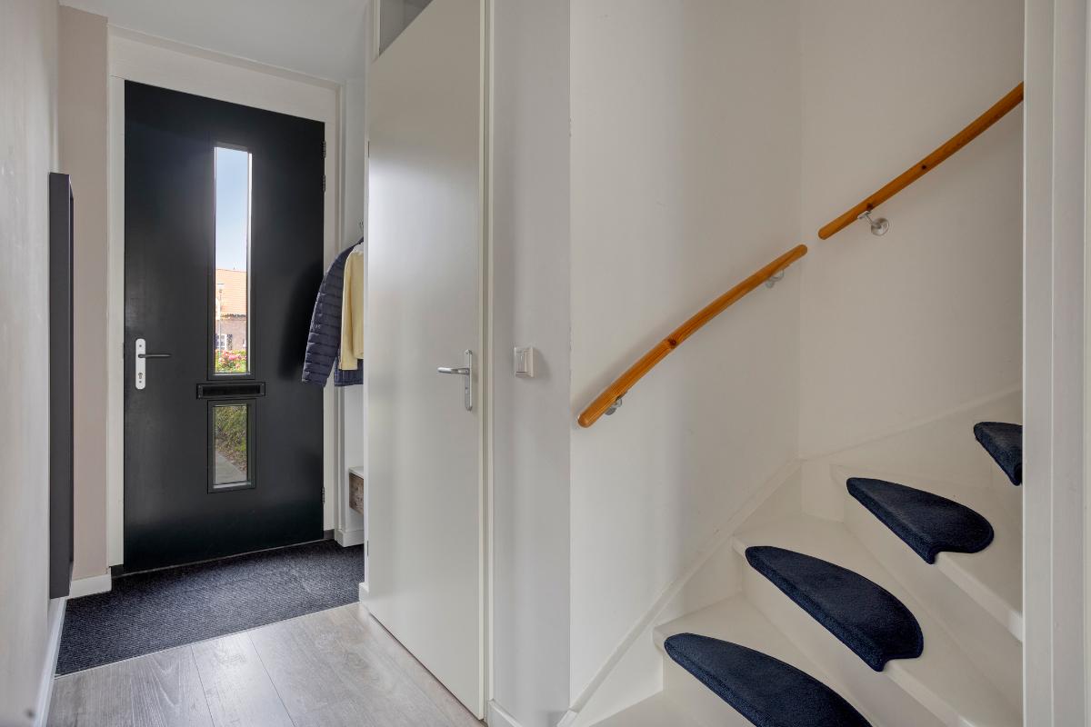 Entree. Hal met laminaatvloer, gestuukte wandafwerking, gestuukt plafond, meterkast, trapopgang en toiletruimte.