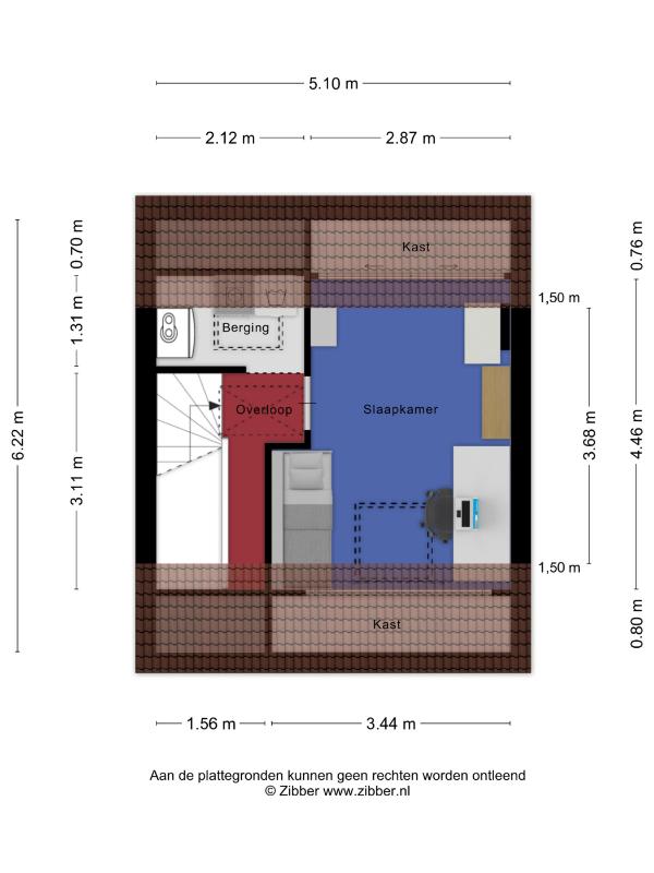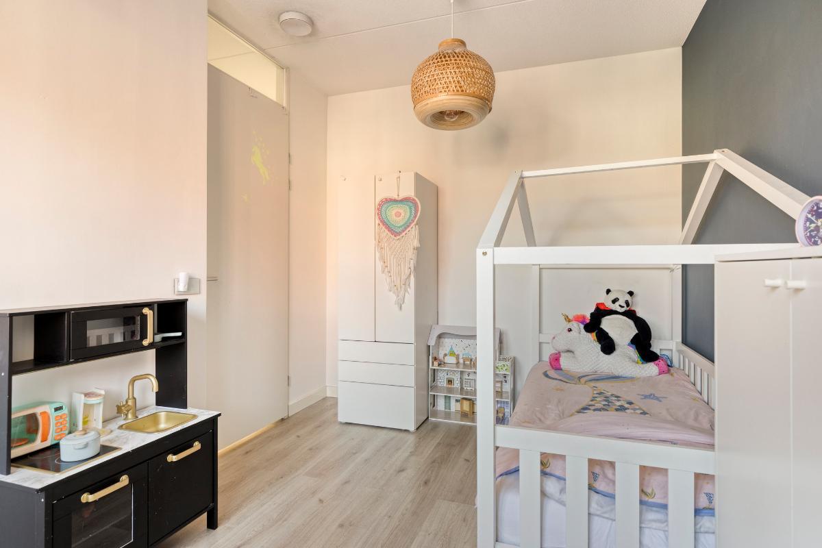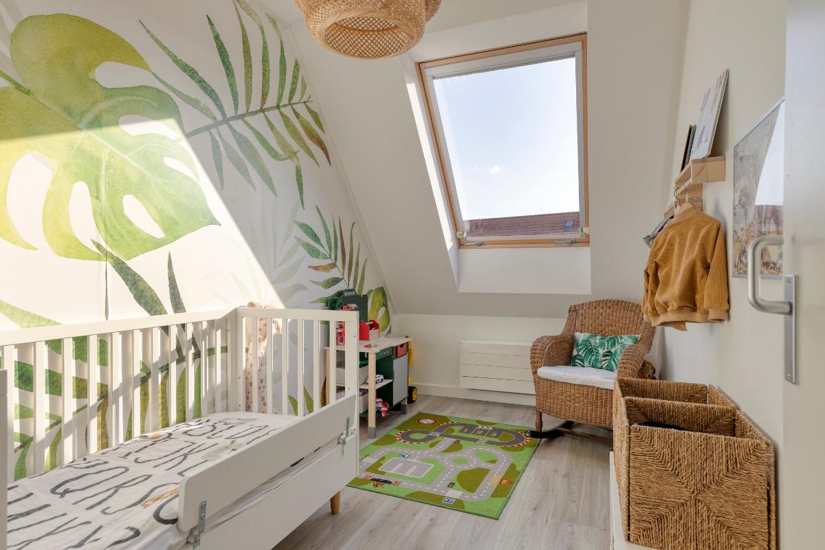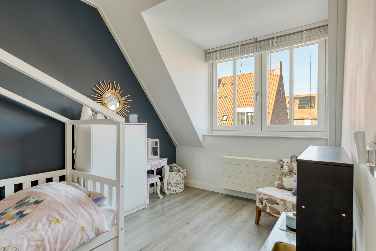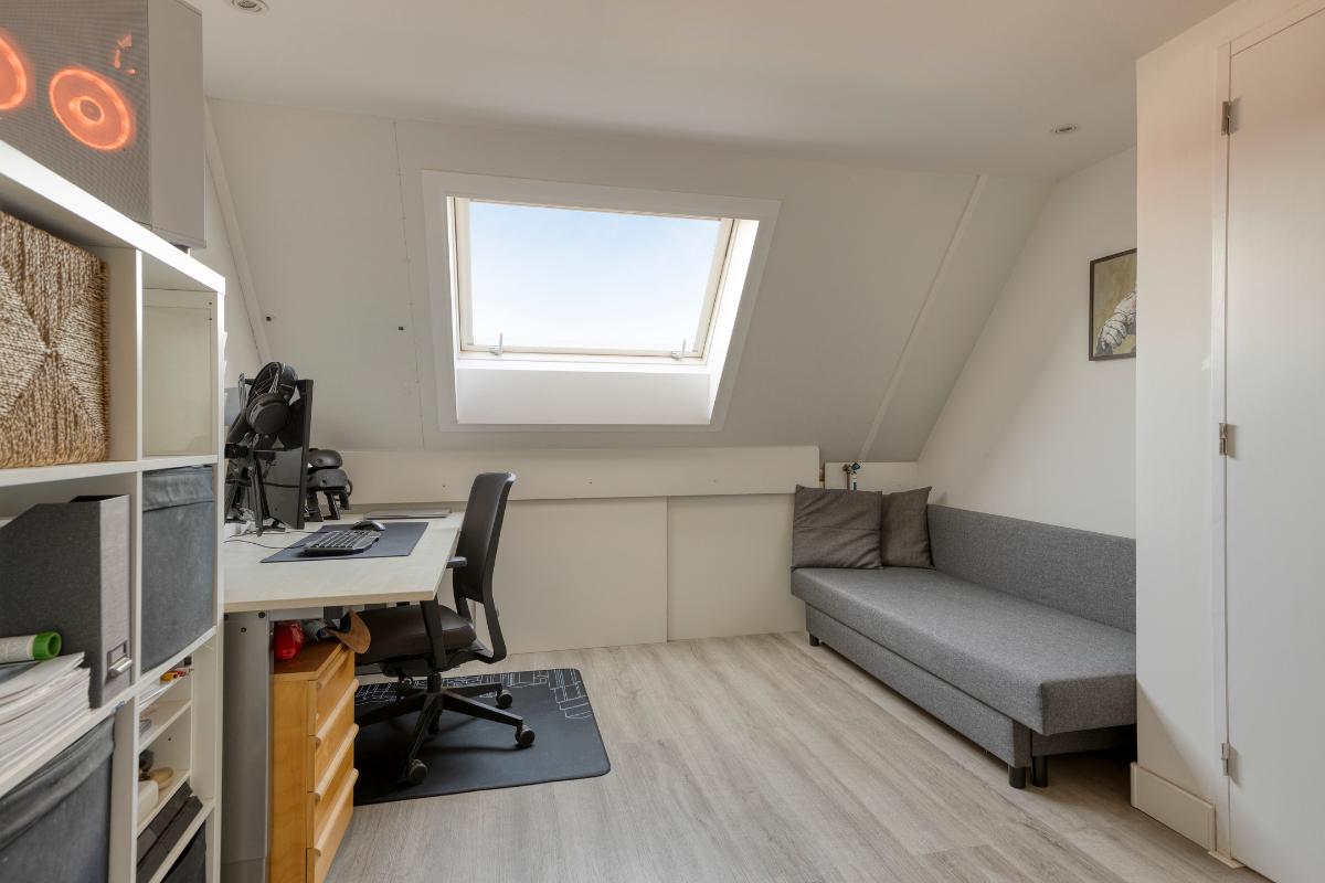 De vierde slaapkamer is voorzien van een pvc-vloer en een dakraam. Onder de kapschuinte bevindt zich praktische bergruimte.