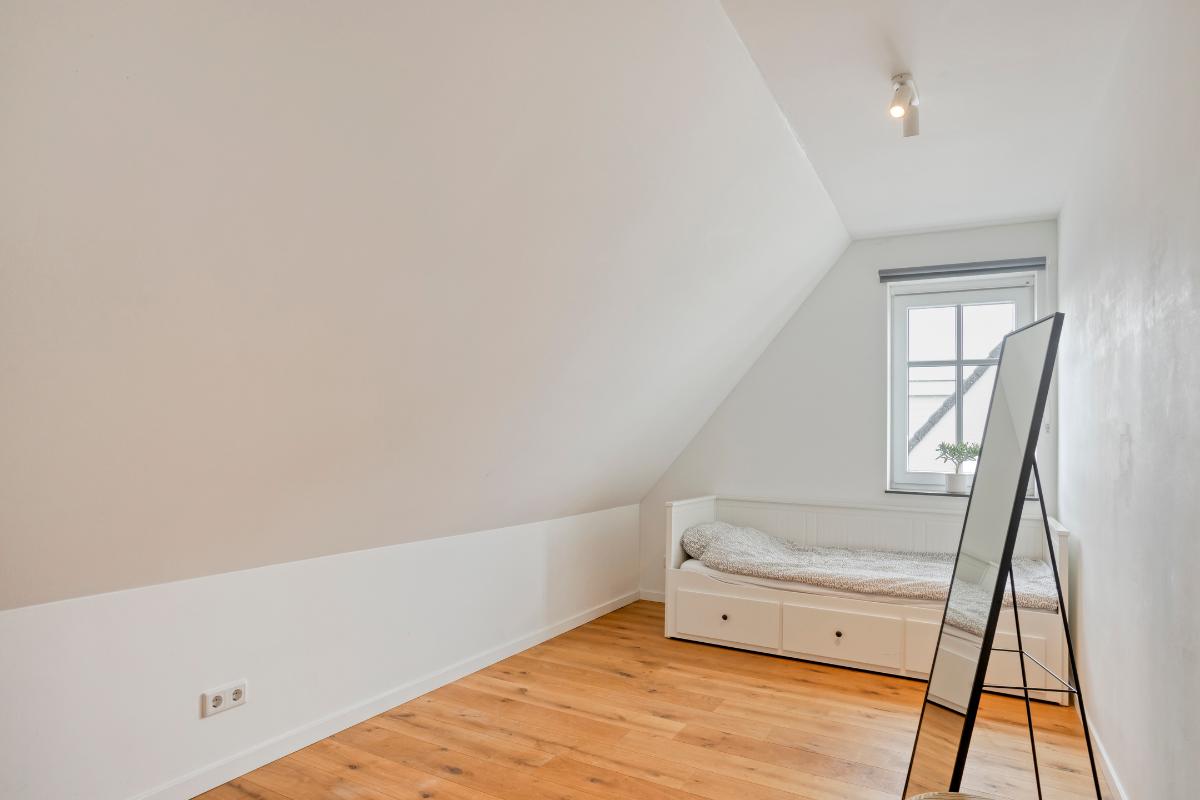 Slaapkamer 2 (voorzijde) is eveneens keurig afgewerkt met parketvloer en glad stucwerk en beschikt over een dakraam.