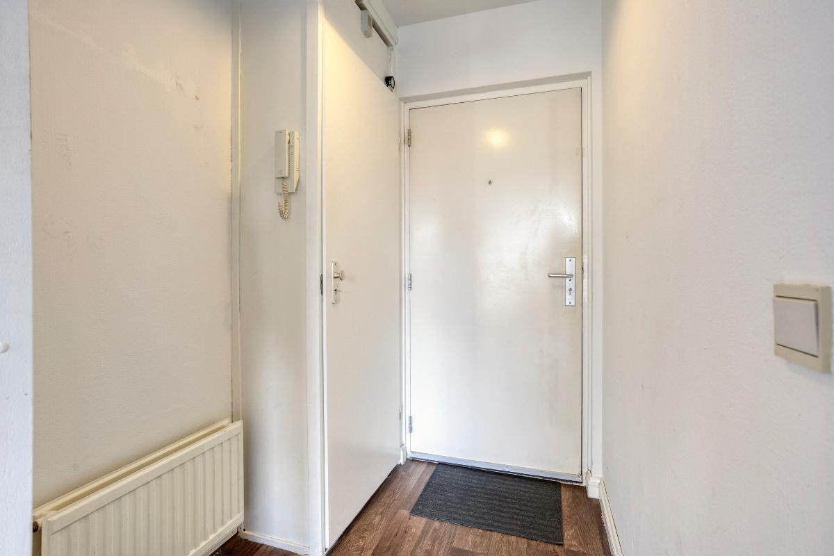 Entree appartement. Woonverdieping. De hal is voorzien van de meterkast, garderobemogelijkheid en een vinyl vloer.