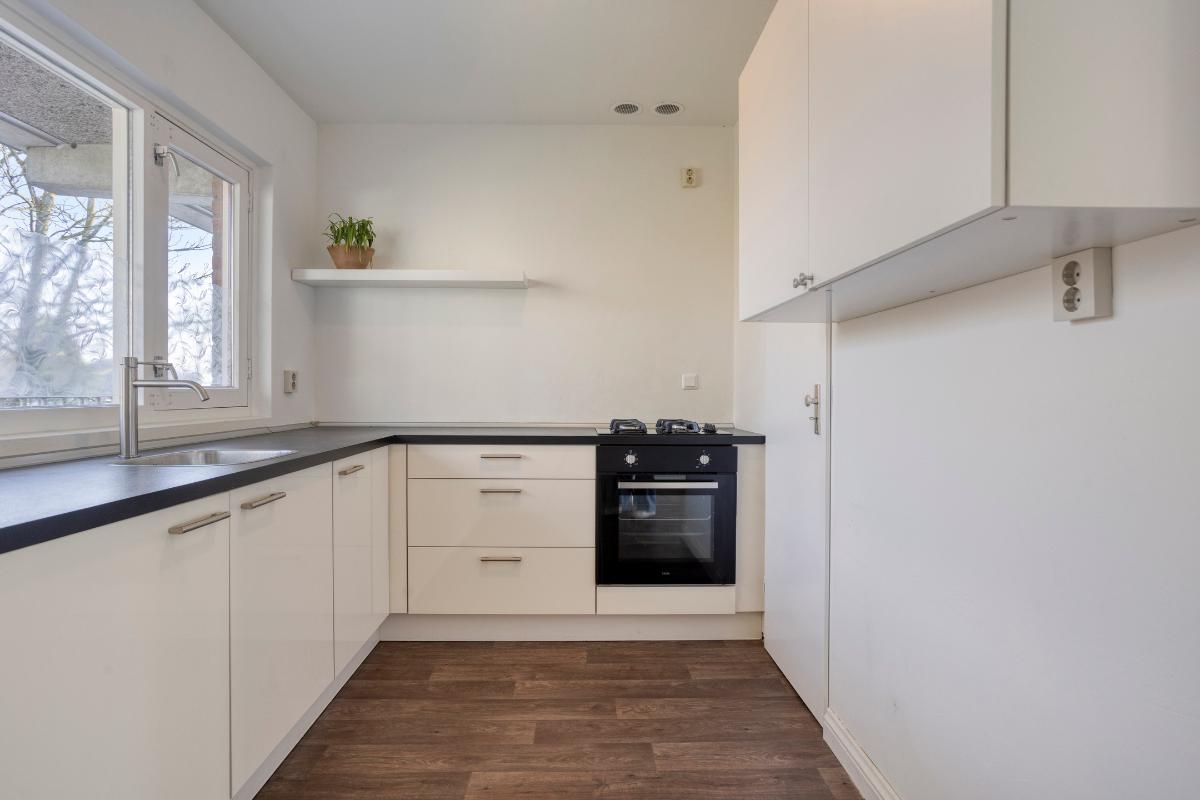 De ruime en lichte woonkamer geniet door zijn ligging op het zuiden een fijne lichtinval. De vloer is afgewerkt met vinyl en via een openslaande deur is het balkon op het zuiden bereikbaar. Dit balkon is een heerlijke plek om buiten te kunnen genieten van een kopje koffie of thee in de zon.