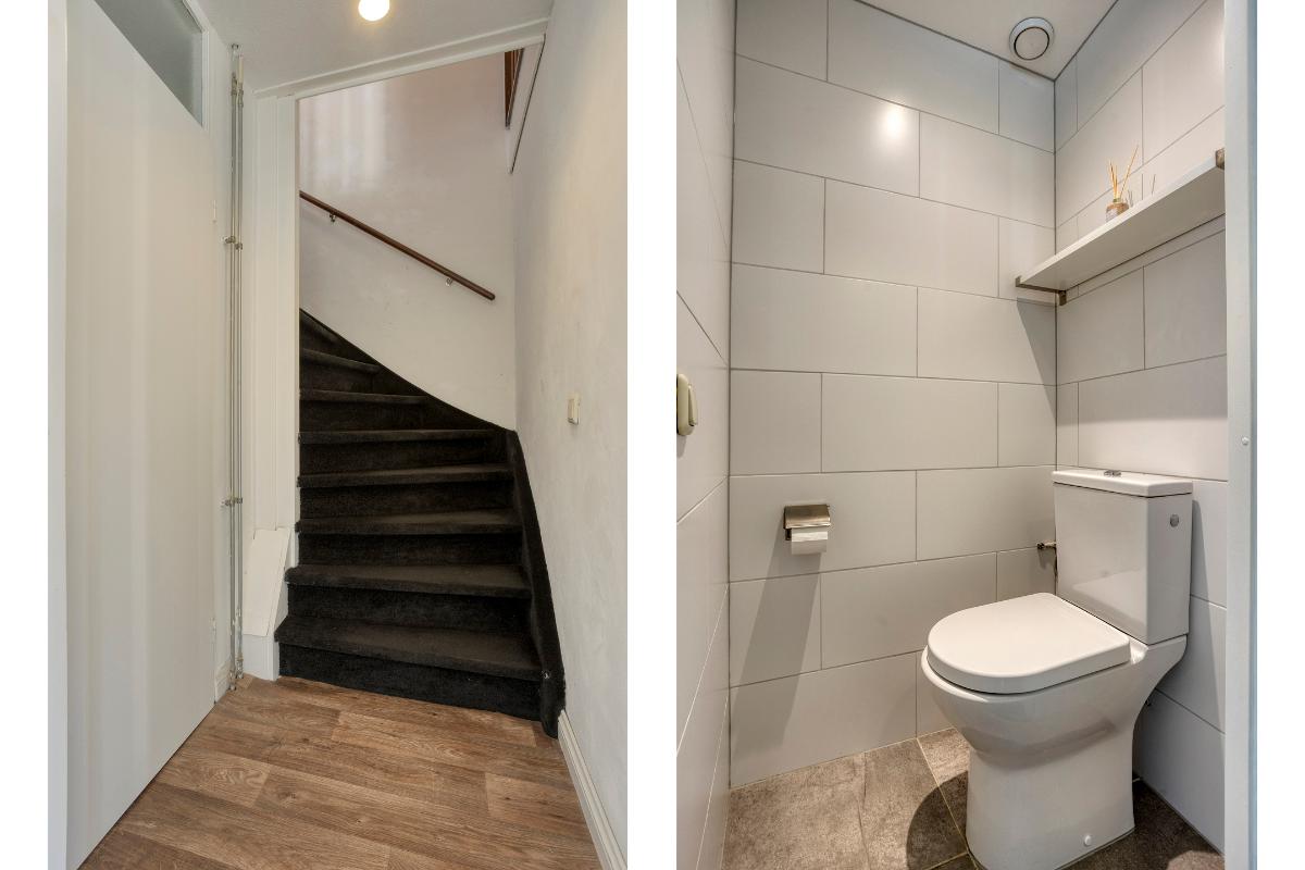 Middels het portaal waar tevens de toiletruimte gesitueerd is is de trapopgang naar de eerste verdieping toegankelijk. De in 2021 geheel gemoderniseerde toiletruimte beschikt over een wandcloset.