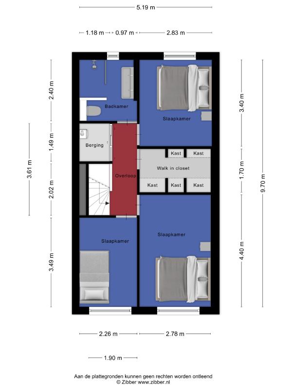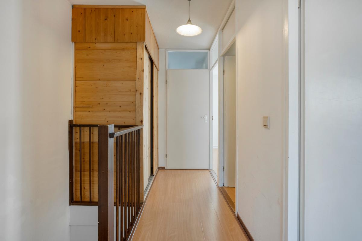 Slaapverdieping. De overloop met laminaatvloer geeft toegang tot een drietal slaapkamers, een kastenkamer, stookruimte en badkamer. Slaapkamer 1 is gelegen aan de voorzijde en beschikt eveneens over een laminaatvloer, enkele beglazing en houten kozijnen. Slaapkamer 2 is gelegen aan de voorzijde en beschikt eveneens over een laminaatvloer, enkele beglazing en houten kozijnen. De kastenkamer beschikt over een ruime kast (blijft achter). Ook hier is een laminaatvloer aanwezig.