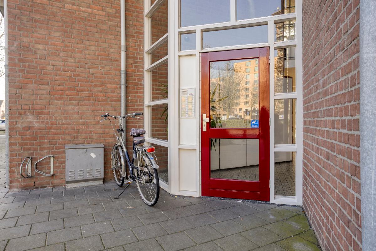 Entree appartementencomplex met bellentableau en brievenbussen. De fraaie en lichte entreehal geeft middels het trappenhuis toegang tot de galerij naar het appartement.