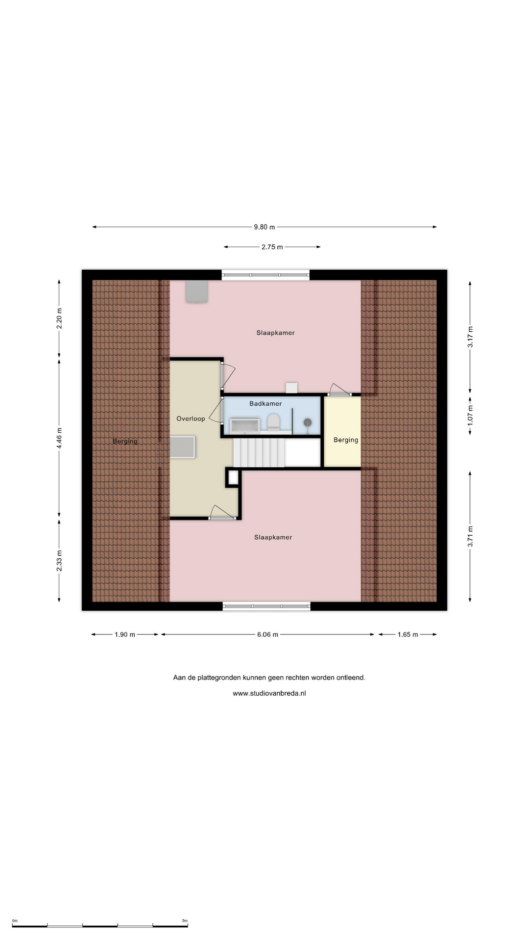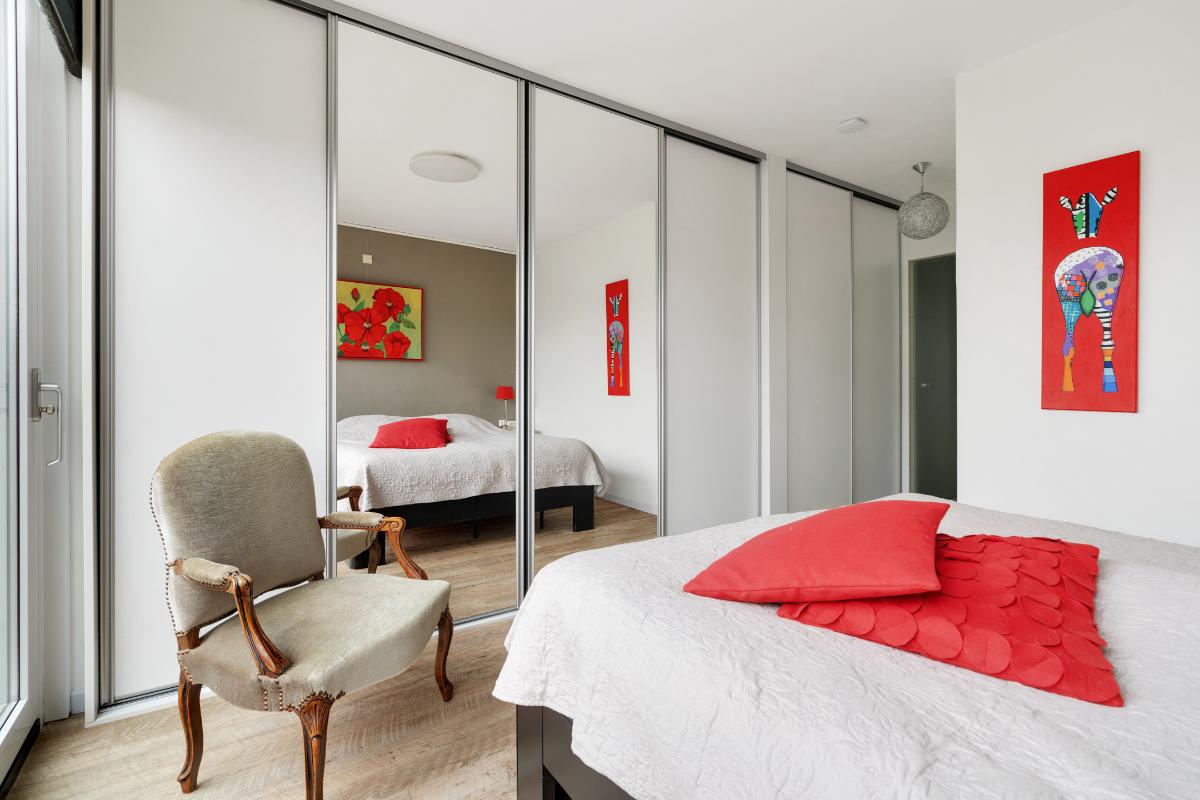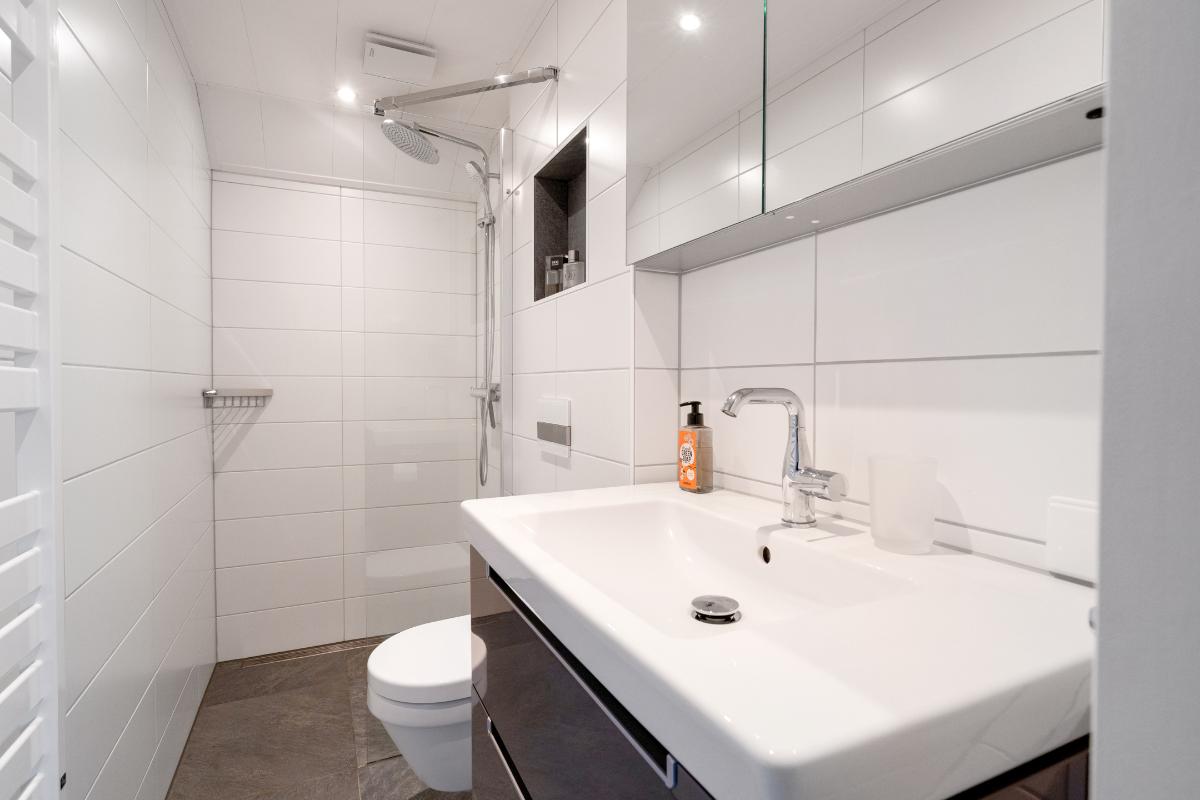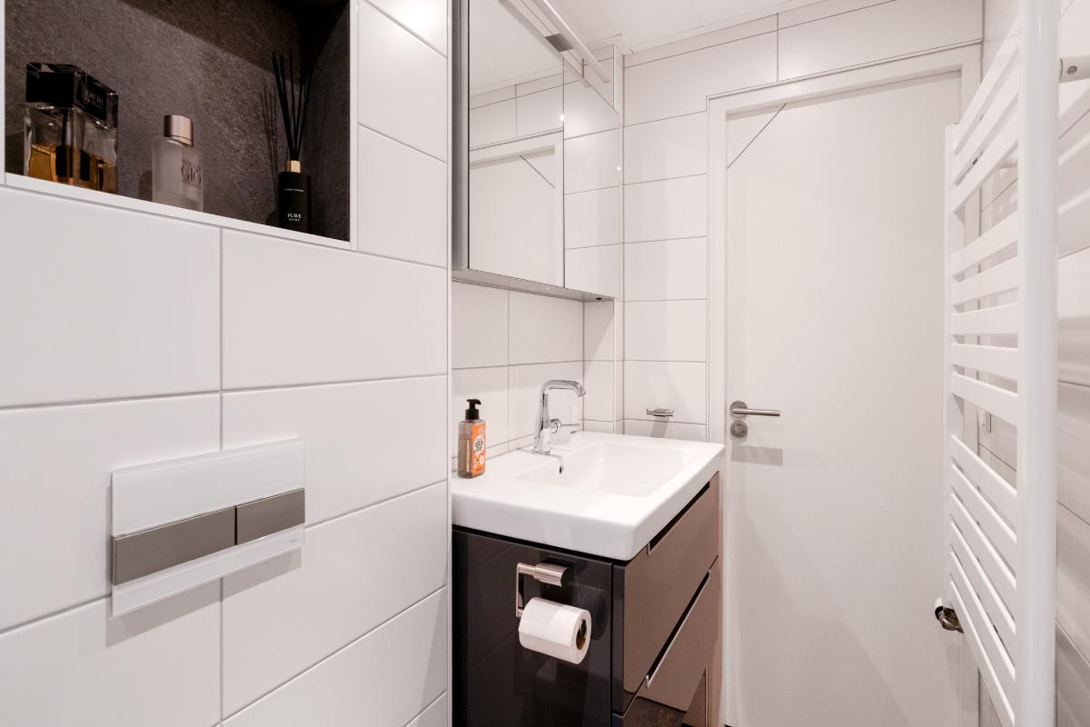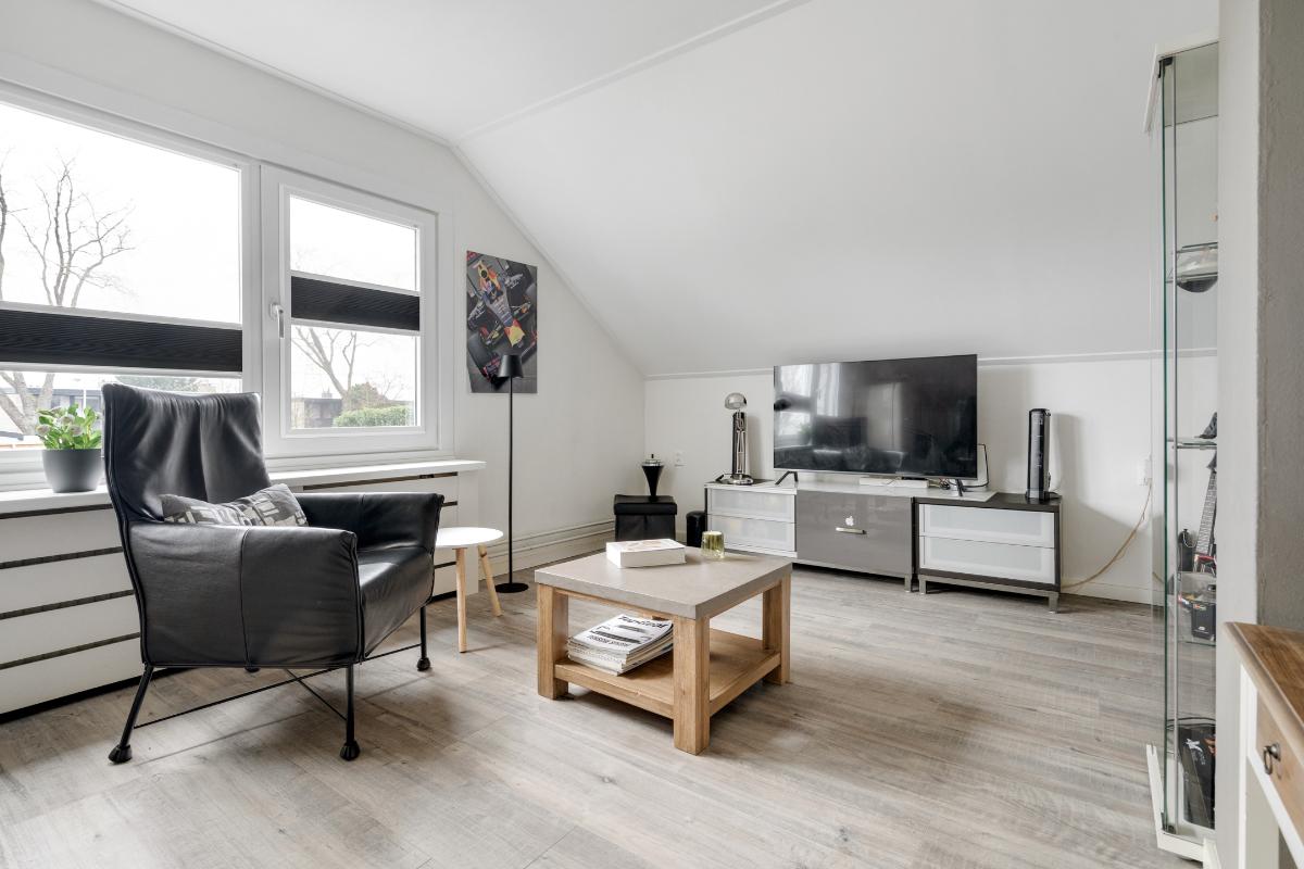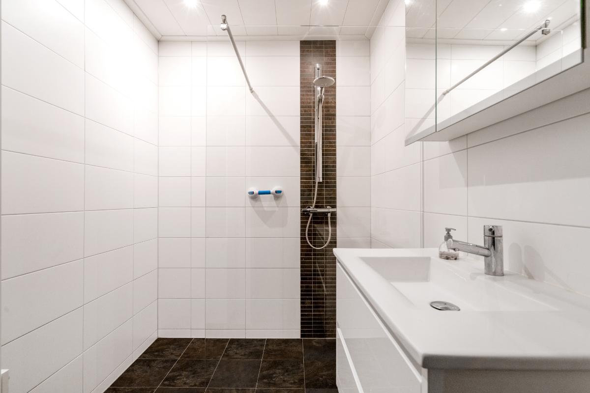 1e verdieping: Via de open trap in de hal kom je op de lichte overloop van de eerste verdieping. Het grote dakraam zorgt hier voor veel daglicht en ruimtelijk gevoel. Vanaf de overloop heb je toegang tot twee slaapkamers, de tweede badkamer en praktische bergruimte achter de knieschotten en in de separate berging. Aan de voorzijde ligt een royale slaapkamer met fijne ramen en een doorlopende vloerafwerking, waardoor de kamer ruim en rustig oogt. Er is volop plaats voor een groot bed, kasten en een bureau. Aan de achterzijde bevindt zich de tweede slaapkamer, eveneens van goed formaat en met een groot raam met uitzicht op de achterzijde. Deze kamer is bijvoorbeeld ideaal als logeerkamer, hobbyruimte of extra werkplek. Tussen de slaapkamers in ligt de tweede badkamer van de woning. Deze is volledig betegeld en ingericht met een inloopdouche met glazen wand, wastafelmeubel, spiegelkast, toilet en designradiator. Hiermee beschikt de verdieping over een volwaardige eigen sanitaire voorziening, wat het huis extra comfortabel maakt.