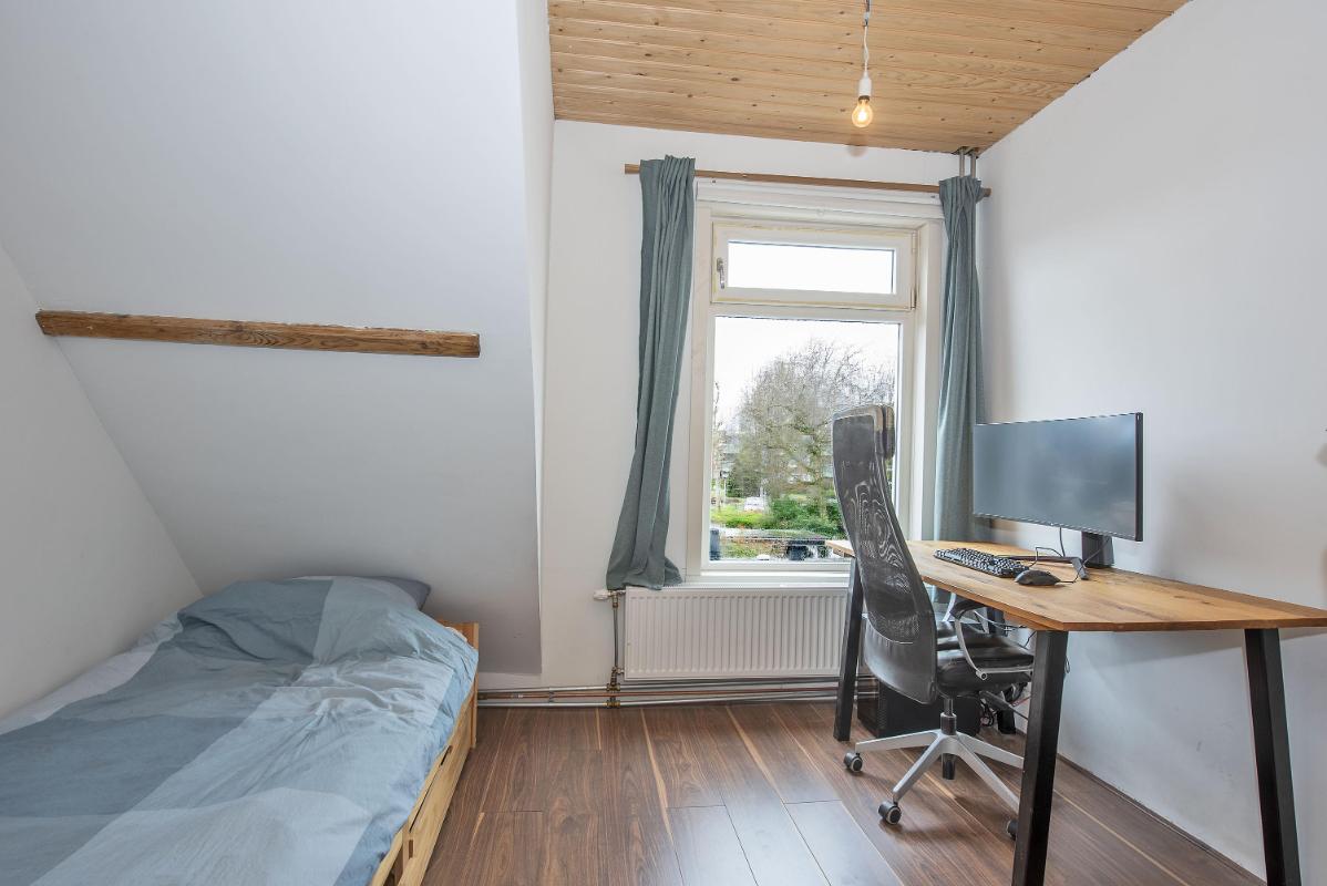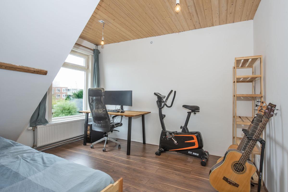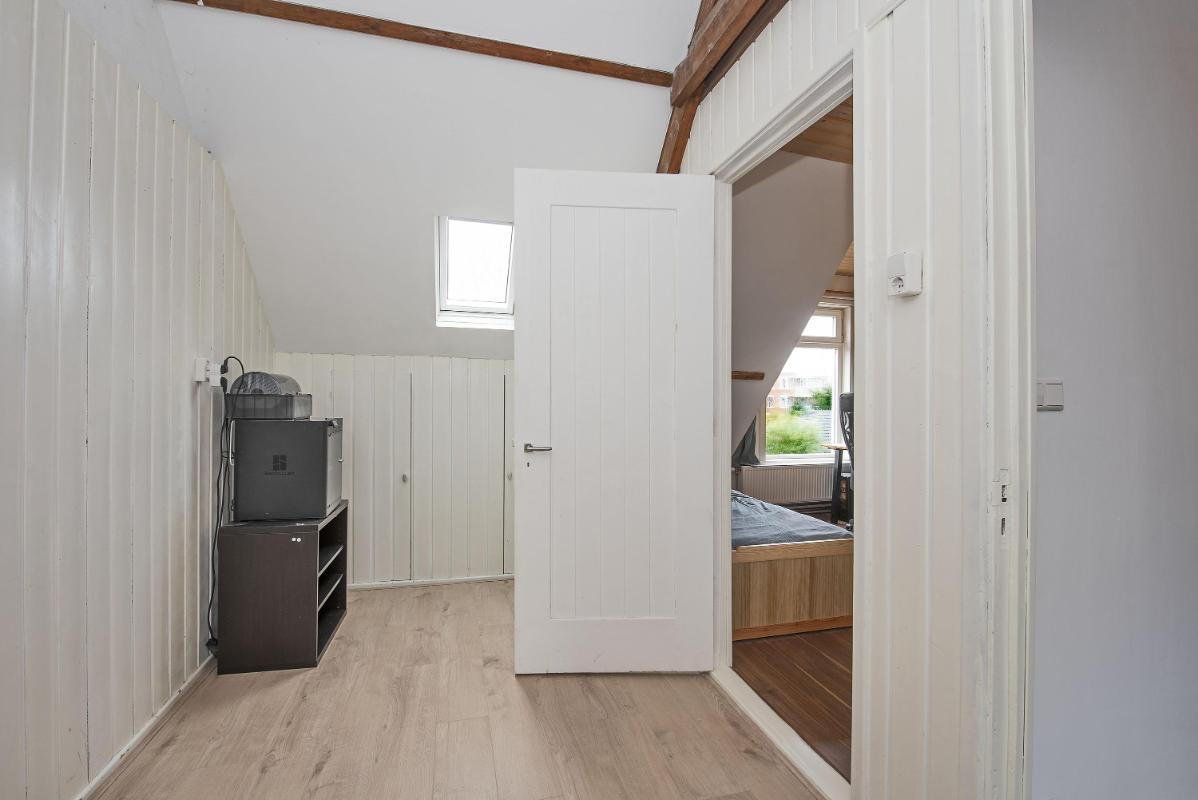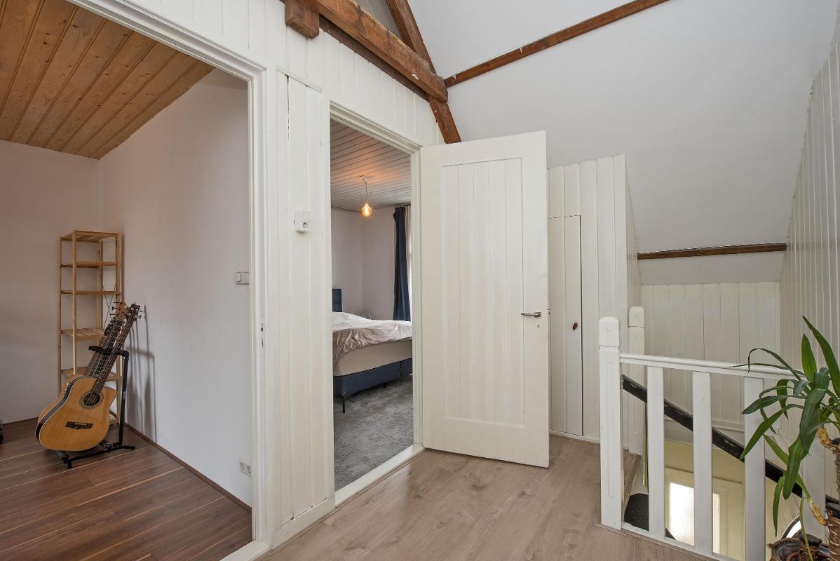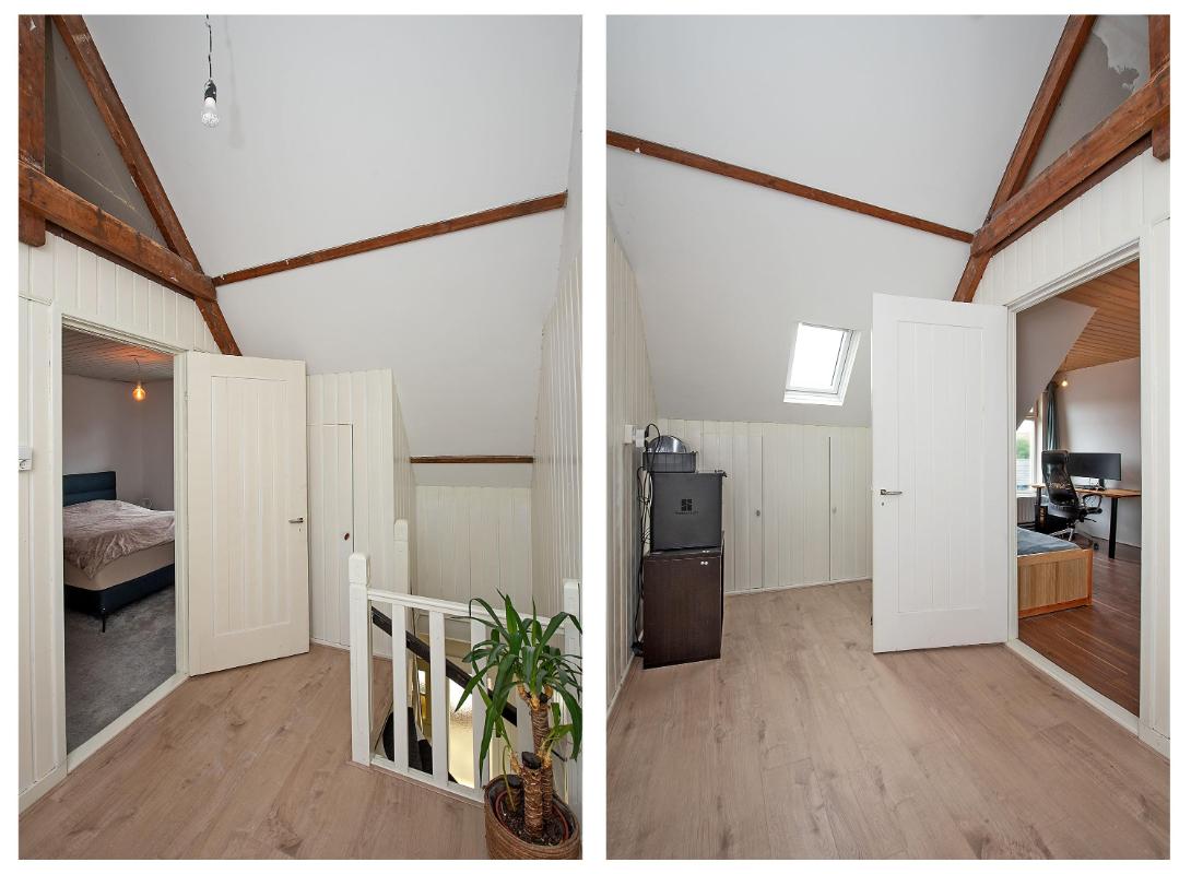 Praktische verdieping met twee slaapkamers Op de eerste verdieping bevinden zich twee slaapkamers. Beide kamers zijn functioneel van formaat en geschikt als slaapkamer, werkkamer of hobbyruimte. De ruime overloop biedt daarnaast volop mogelijkheden, bijvoorbeeld voor het creëren van een thuiswerkplek. Verder is er extra bergruimte aanwezig door de vlieringvide en de afgetimmerde bergingen aan beide zijden.
