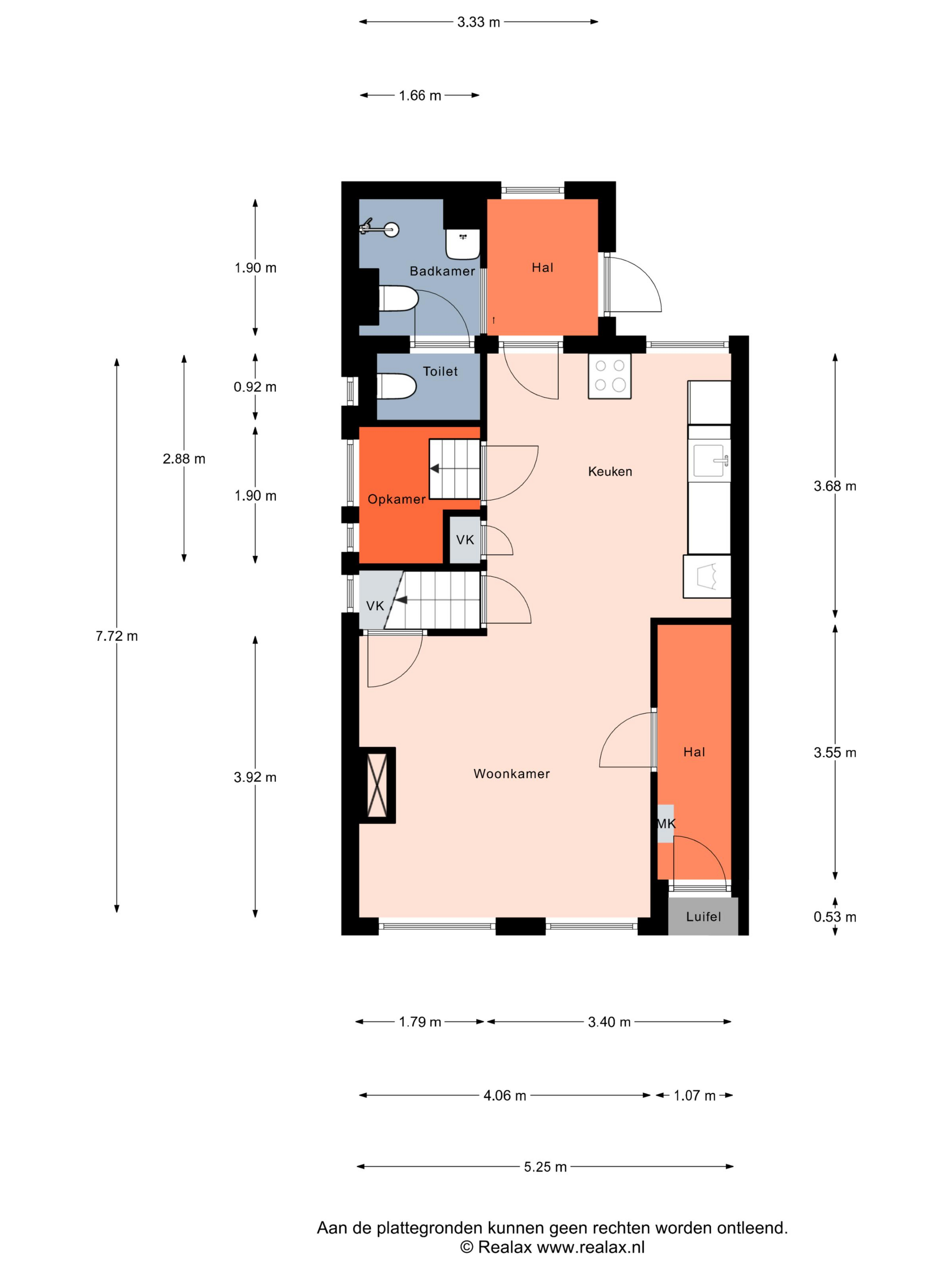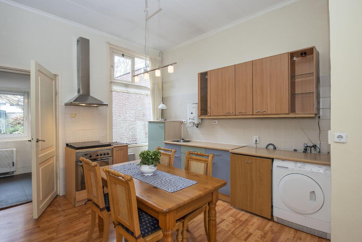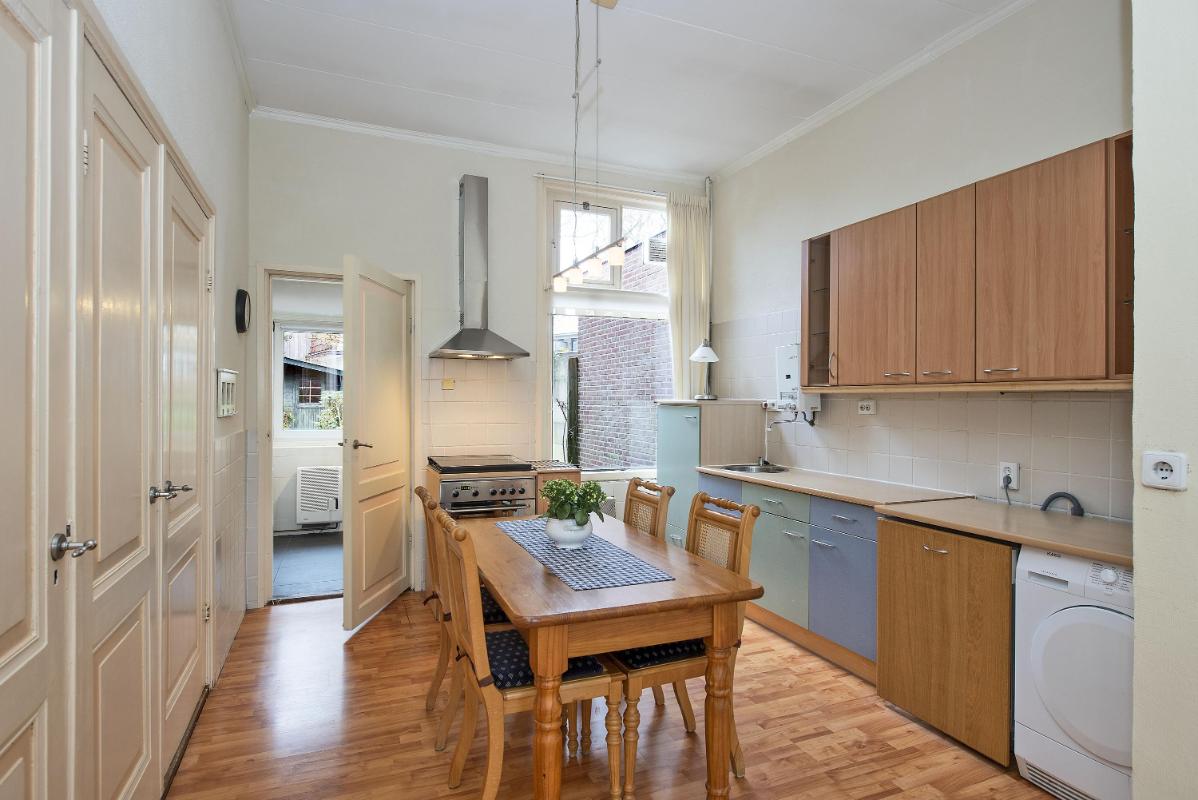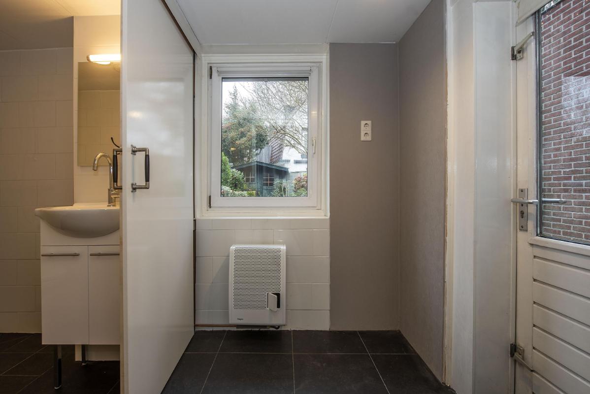 Koken en tafelen op één plek De keuken is een fijne plek, met voldoende ruimte voor een eettafel. Hierdoor ontstaat een praktische en gezellige woonkeuken waar je makkelijk samen zit, kookt en bijpraat. In deze ruimte komen meerdere karakteristieke elementen samen. Zo leidt een deur naar de opkamer, een verhoogde ruimte die ideaal is voor extra opslag of kan worden ingericht als praktische werkplek of hobbyruimte. Vanuit de keuken vervolg je je weg naar de eerste verdieping of maak je gebruik van de handige voorraadkast. Loop je verder de woning in, dan kom je in een klein halletje dat uitkomt bij de achtertuin en de badkamer op de begane grond. De badkamer is praktisch ingedeeld en voorzien van een douche, wastafel en toilet. Daarnaast is er een separate ruimte die de mogelijkheid biedt om een apart toilet te realiseren en tevens ruimte biedt voor het plaatsen van een wasmachine. Met een nieuwe indeling of afwerking kun je deze ruimtes helemaal laten aansluiten bij jouw stijl.