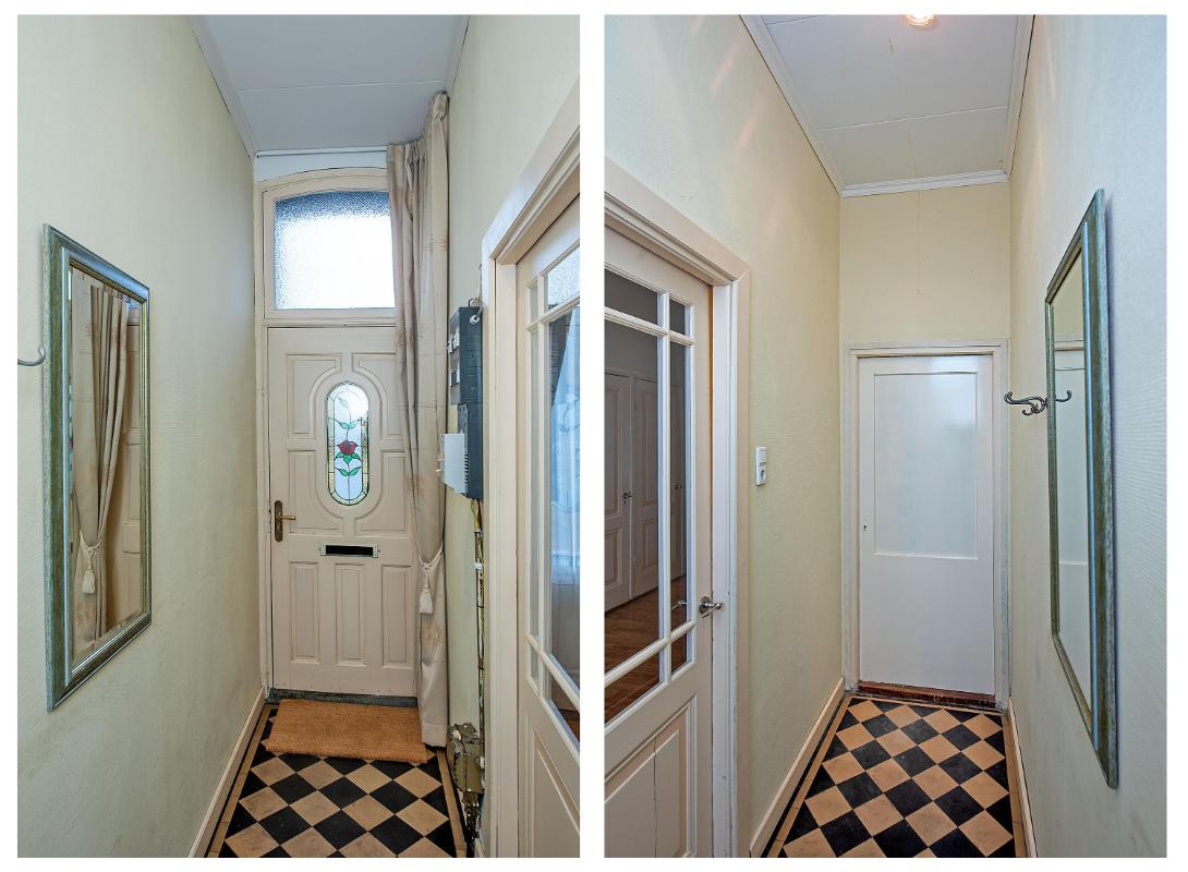 Een welkom vol karakter Je wordt ontvangen in een hal die direct de toon zet. De karakteristieke vloer springt in het oog en het glas in lood in de voordeur geeft dat warme, jaren-dertigachtige welkom. Vanuit de hal loop je door naar de woonkamer.