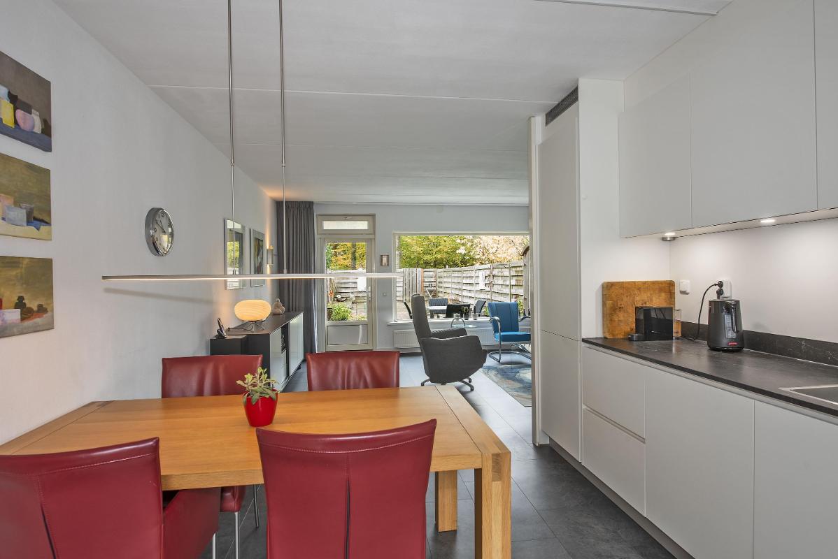 Licht en praktisch ingedeeld Bij binnenkomst kom je in de hal met toegang tot het toilet en de trapopgang. De woonkamer en keuken zijn voorzien van een pvc vloer (2020). De open keuken (2020) bevindt zich aan de voorzijde van de woning en is ingericht met een inductie kookplaat, afzuigkap, magnetron, oven, vaatwasser, koelkast en vriezer. De woonkamer ligt aan de achterzijde en biedt plek voor een ruime zithoek en eethoek. Via de deur in de woonkamer loop je zo de tuin in — ideaal op een zonnige dag.