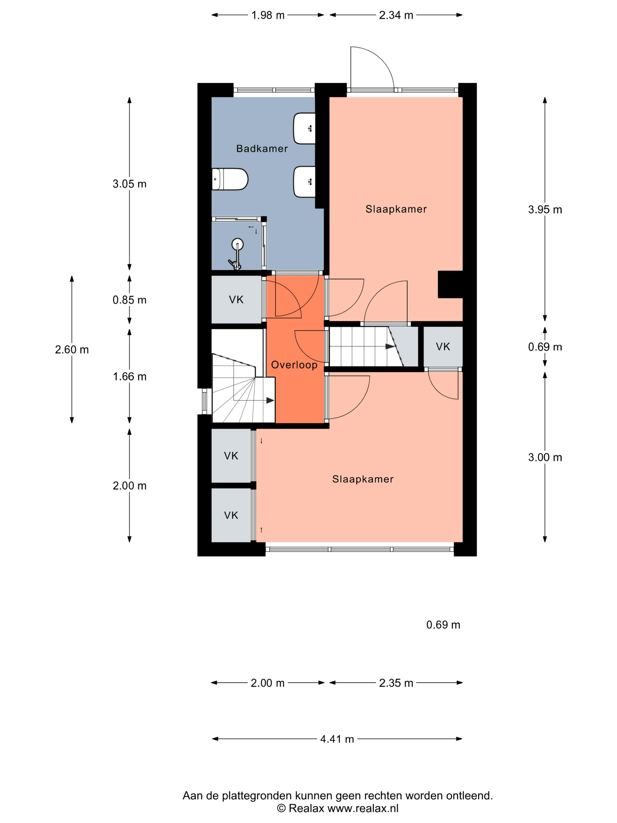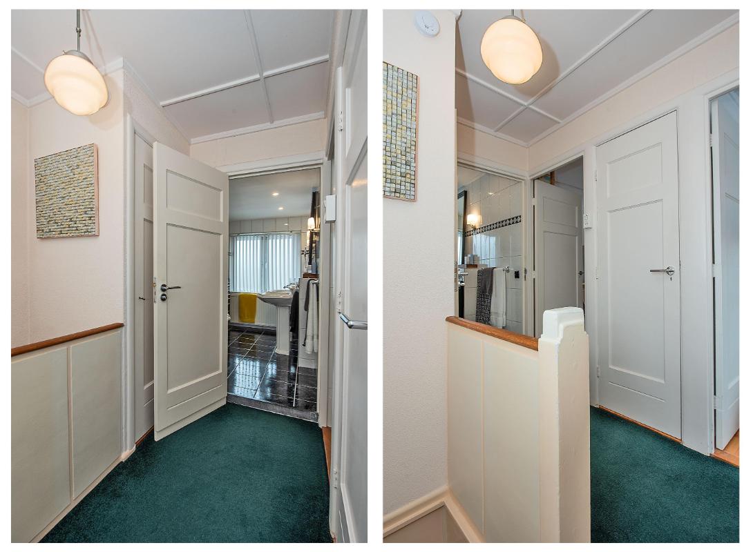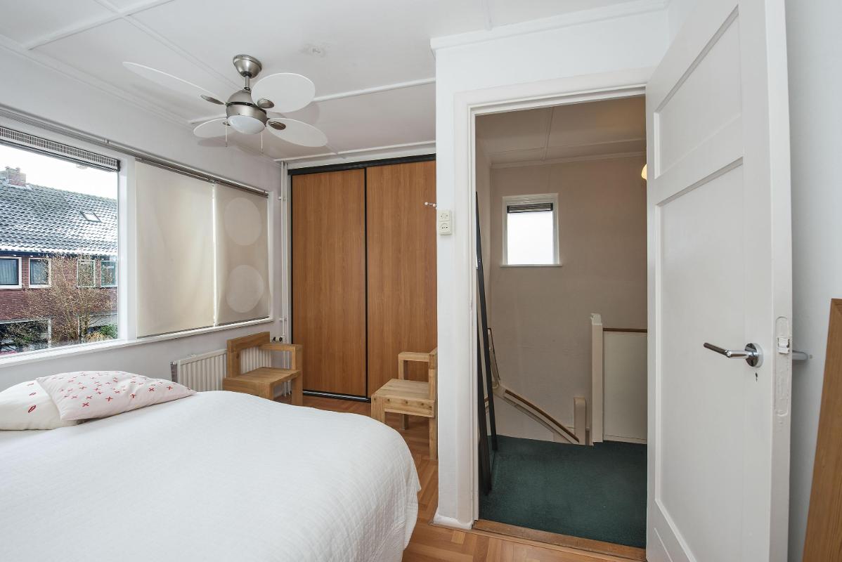 Verdiepingen met mogelijkheden Vanaf de overloop (met vaste kast) op de eerste verdieping zijn twee slaapkamers bereikbaar. Beide kamers zijn prettig van formaat en beschikken over daglicht. Éen van de slaapkamers beschikt over drie vaste kasten. De badkamer is functioneel ingericht met een douche en toilet. De vaste trap brengt je naar de tweede verdieping. Hier bevindt zicht de derde slaapkamer.