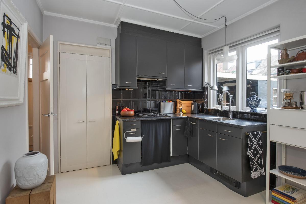 Je komt binnen in de hal, vanwaar je doorloopt naar de keuken. De keuken ligt aan de achterzijde van de woning en heeft uitzicht op de tuin. Een fijne, lichte ruimte om te koken, met voldoende werkruimte en een praktische opstelling. Naast het aanrecht vindt je een vaste kast, ideaal voor het opbergen van keukenspullen! Vanuit de keuken bereik je zowel de woonkamer als de bijkeuken aan de achterzijde. Via de bijkeuken bereik je een berging die direct aan de woning grenst.