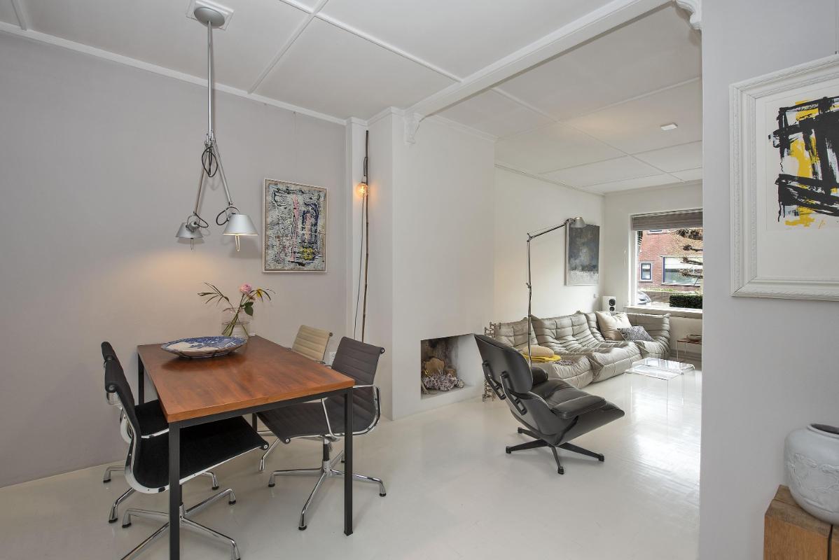 De woonkamer bevindt zich aan de voorzijde van de woning. Dankzij de raampartijen valt hier veel daglicht binnen en is er ruimte voor een comfortabele zithoek en een compacte eethoek. De indeling is overzichtelijk en efficiënt, waardoor de ruimte prettig aanvoelt zonder dat deze groot is.