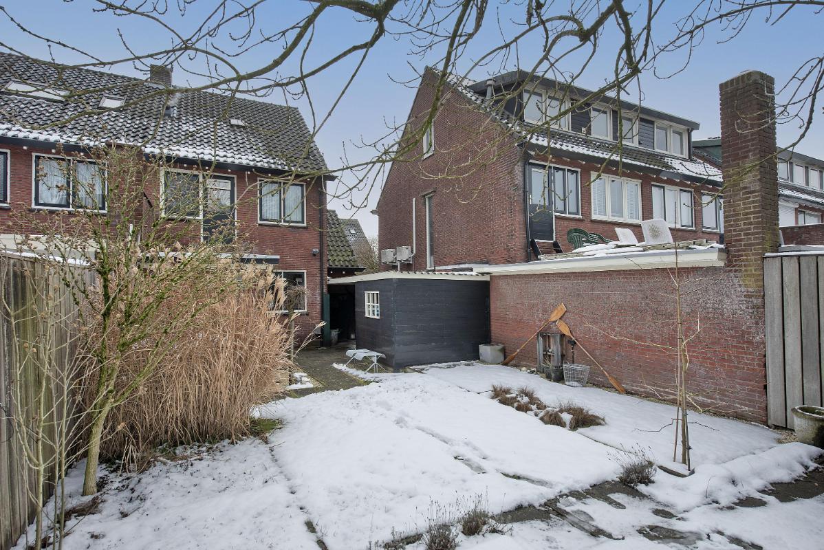 De achtertuin is groen en beschikt over twee terrassen. Vanuit de tuin heb je toegang tot een vrijstaande berging, ideaal voor fietsen, gereedschap en tuinspullen. Bij deze berging bevindt zich een afdak, handig voor beschut stallen.