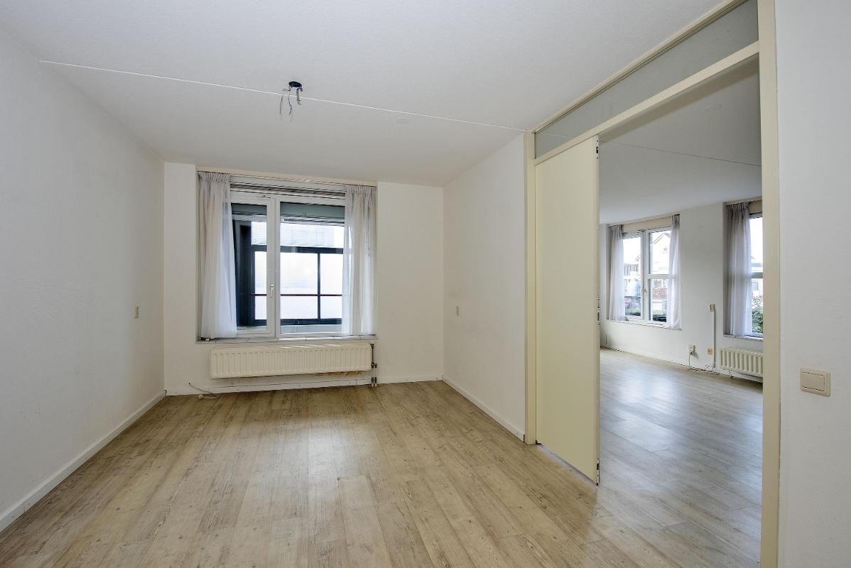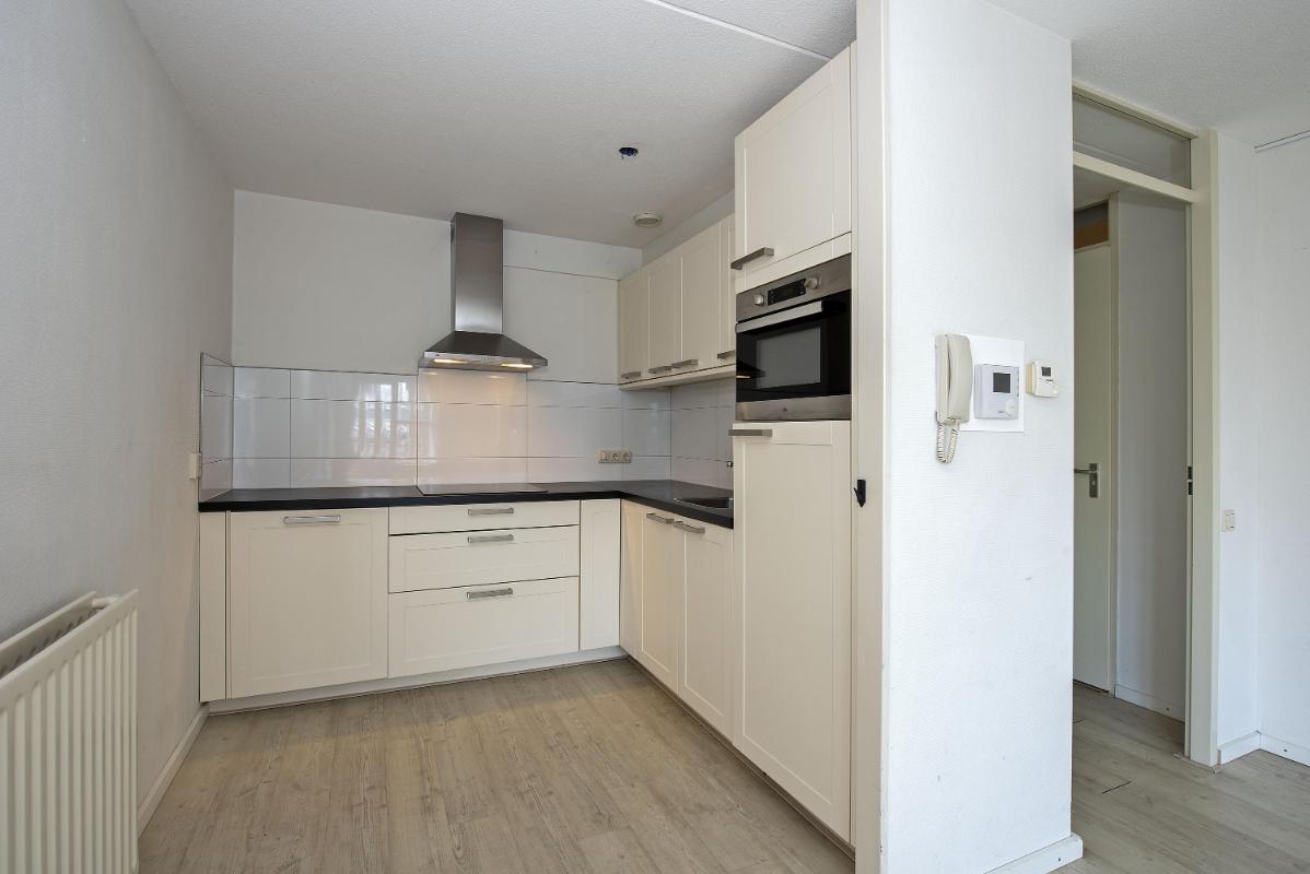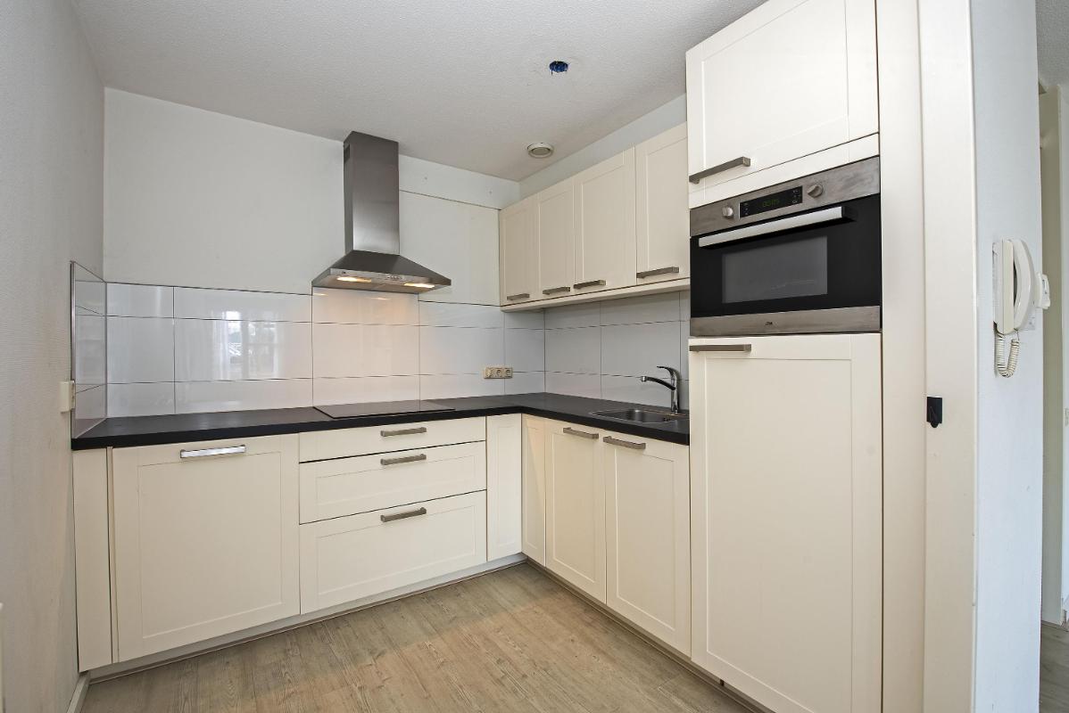 Licht, licht en nog eens licht Binnen valt direct de prettige lichtinval op. De woonkamer is ruim en praktisch van opzet en profiteert van daglicht aan twee zijden. Dat zie je niet vaak bij een appartement en zorgt hier voor een fijne sfeer gedurende de hele dag. Er is volop ruimte voor een comfortabele zithoek en een eettafel. De open keuken sluit direct aan op de woonkamer en is functioneel ingericht met alle benodigde apparatuur. Alles is overzichtelijk opgesteld en binnen handbereik, wat het dagelijks gebruik prettig en comfortabel maakt. Het appartement beschikt over twee slaapkamers. De hoofdslaapkamer is geschikt voor een tweepersoonsbed en kastruimte. De tweede slaapkamer is ideaal als logeerkamer, hobbyruimte of werkkamer. De badkamer is praktisch en modern ingericht en voorzien van de faciliteiten die je dagelijks nodig hebt.