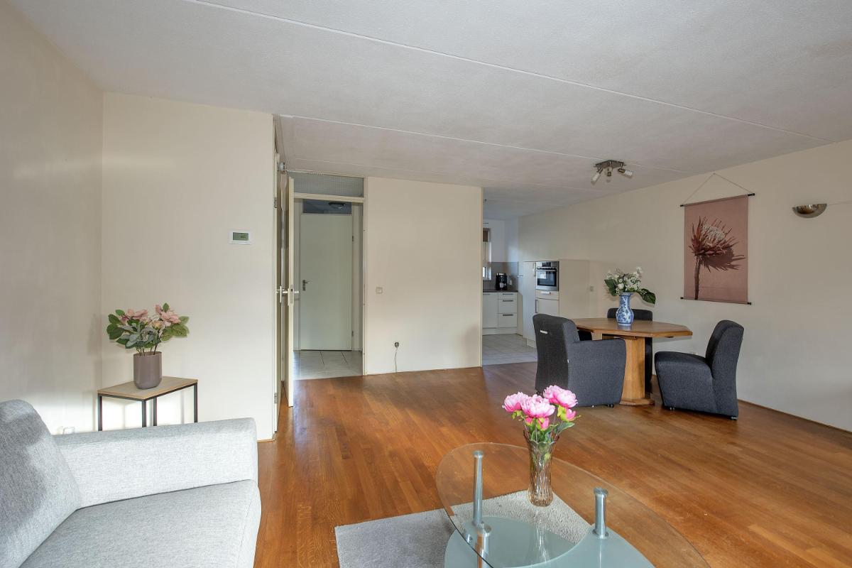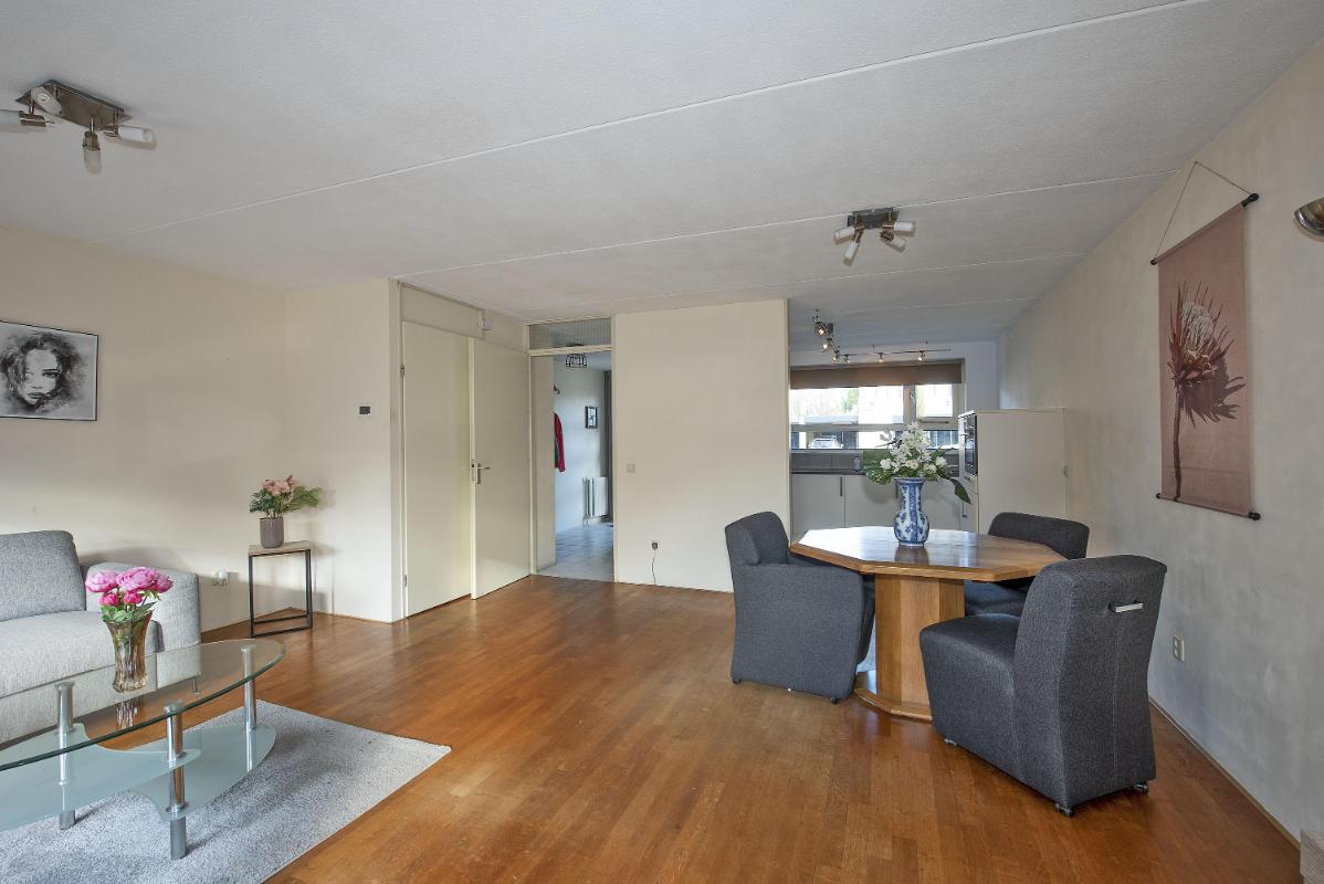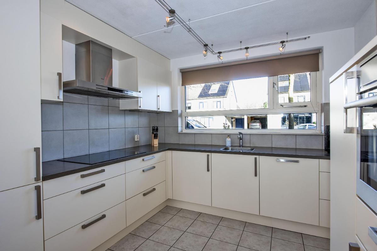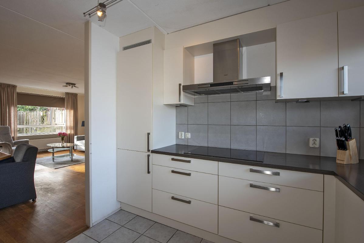 Je komt binnen in de hal met toilet en trapopgang. Aan de voorzijde van de woning bevindt zich de open keuken. Deze is praktisch ingericht en voorzien van inbouwapparatuur. Dankzij de ligging aan de straatzijde heb je hier een fijne lichtinval tijdens het koken. De keuken biedt voldoende werk en bergruimte en vormt een functionele plek voor het dagelijks gebruik. Aan de achterzijde van de woning ligt de woonkamer. Een lichte en comfortabele leefruimte waar zit- en eethoek moeiteloos samenkomen. Vanuit de woonkamer is er toegang tot de achtertuin, waardoor binnen en buiten op een natuurlijke manier met elkaar verbonden zijn.