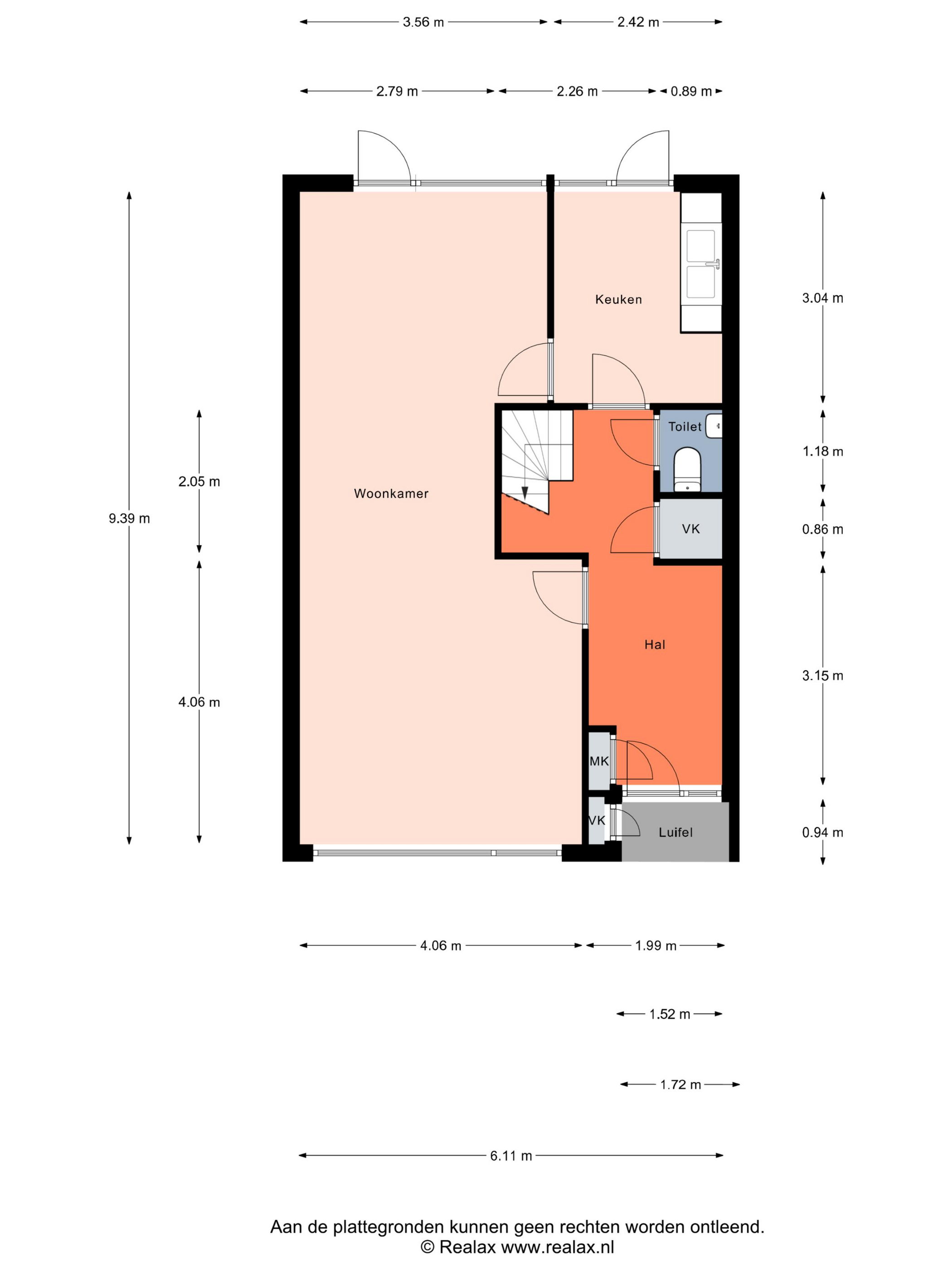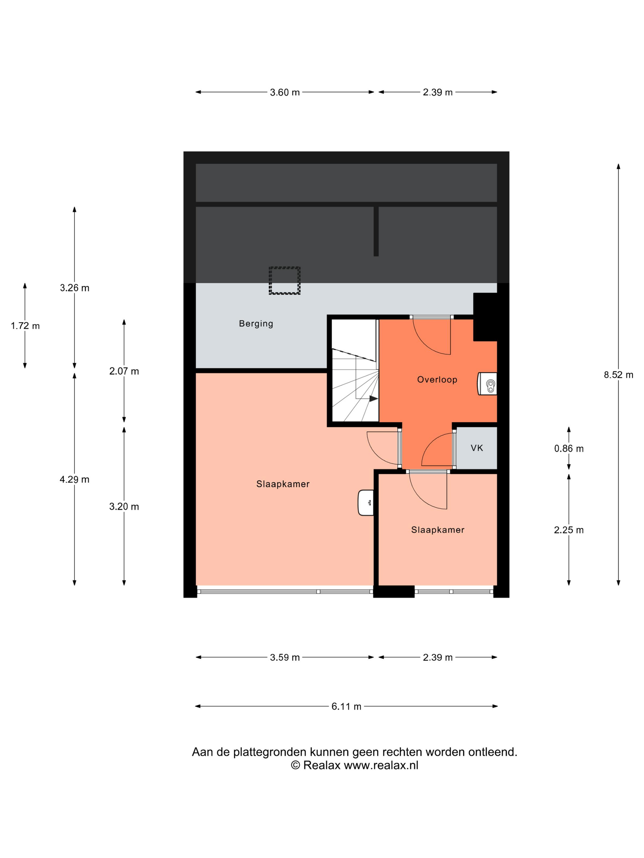 Indeling: Begane grond: entree, hal, meterkast, provisiekast, toilet met fontein, trapopgang, gesloten keuken, royale woonkamer bereikbaar vanuit de keuken en hal. Eerste verdieping: overloop, drie slaapkamers, badkamer met douche, ligbad, wasmachineaansluiting, wastafel, separaat toilet met fontein, drie handige ingebouwde kasten. Tweede verdieping: overloop met keukenblokje en wastafel, cv-opstelling, ingebouwde kast, twee slaapkamers en bergruimte.