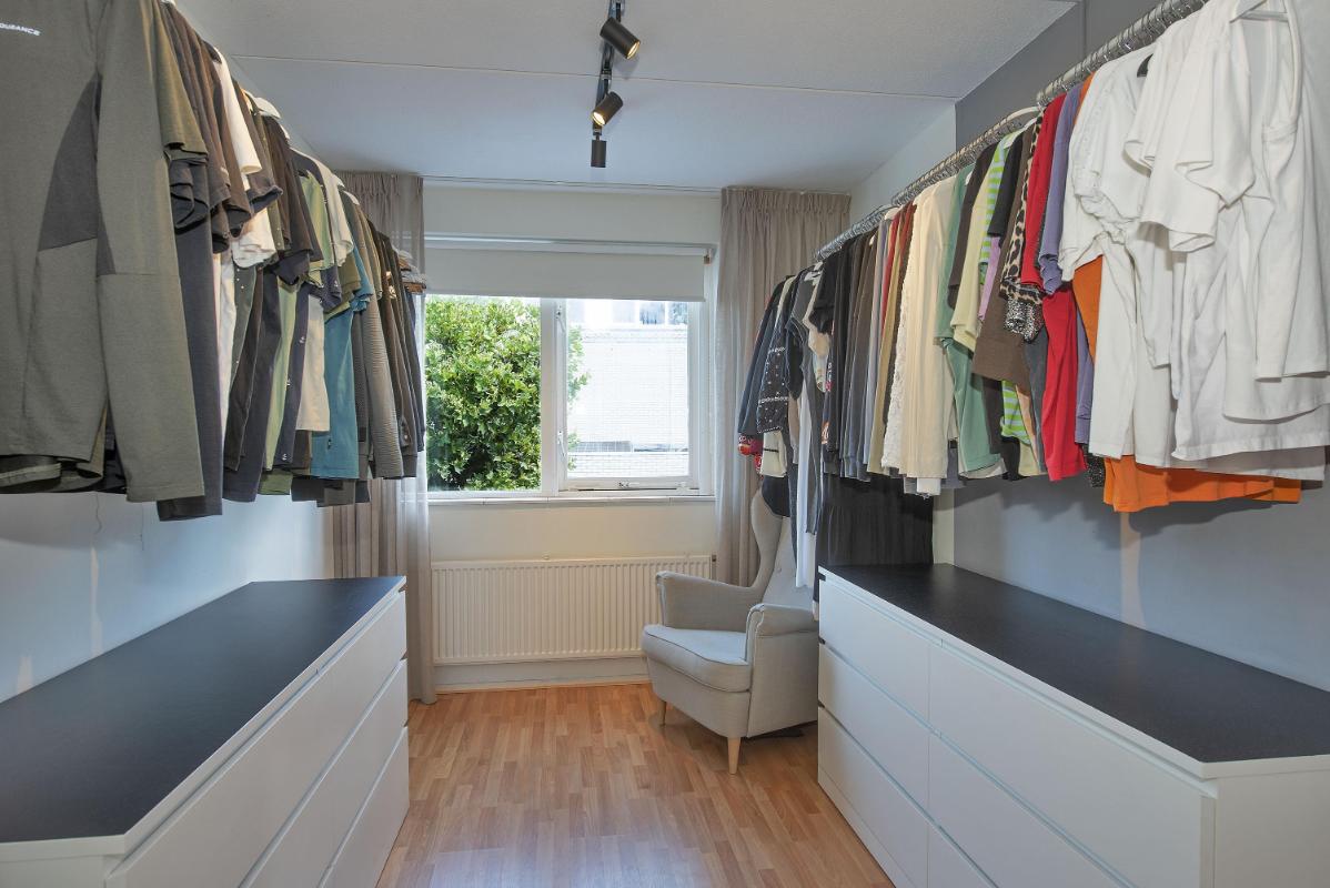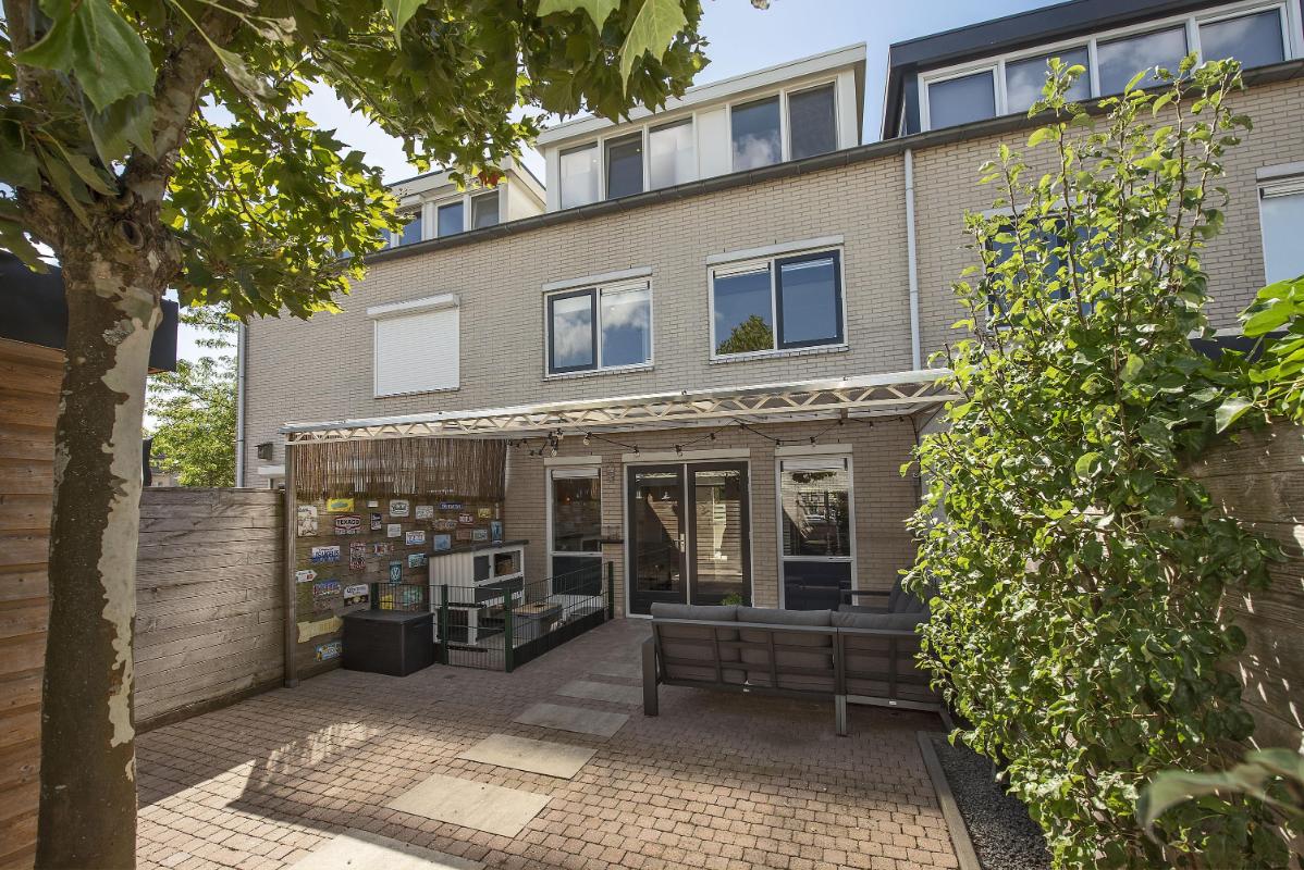 Indeling Begane grond: entree met hal, toilet en trapopgang. Straatgerichte keuken met inbouwapparatuur, tuingerichte woonkamer met openslaande deuren naar de tuin en een diepe achtertuin met veranda en achterom. Airconditioning aanwezig. Eerste verdieping: drie slaapkamers (waarvan één met airco), badkamer met douche, wastafel en toilet. Vanuit de slaapkamer aan de achterzijde toegang tot een balkon. Tweede verdieping: twee slaapkamers, waarvan één met vaste kasten, stookruimte en toegang tot een ruim balkon aan de voorzijde Tuin: achtertuin met ruime overkapping/veranda en, vrijstaande houten berging en achterom.