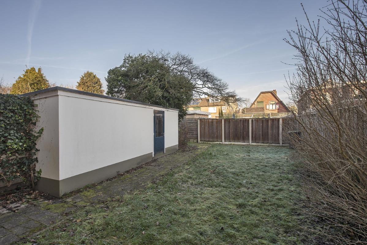 Buiten: Diepe achtertuin gelegen op het noorden, voorzien van vrijstaande stenen berging.