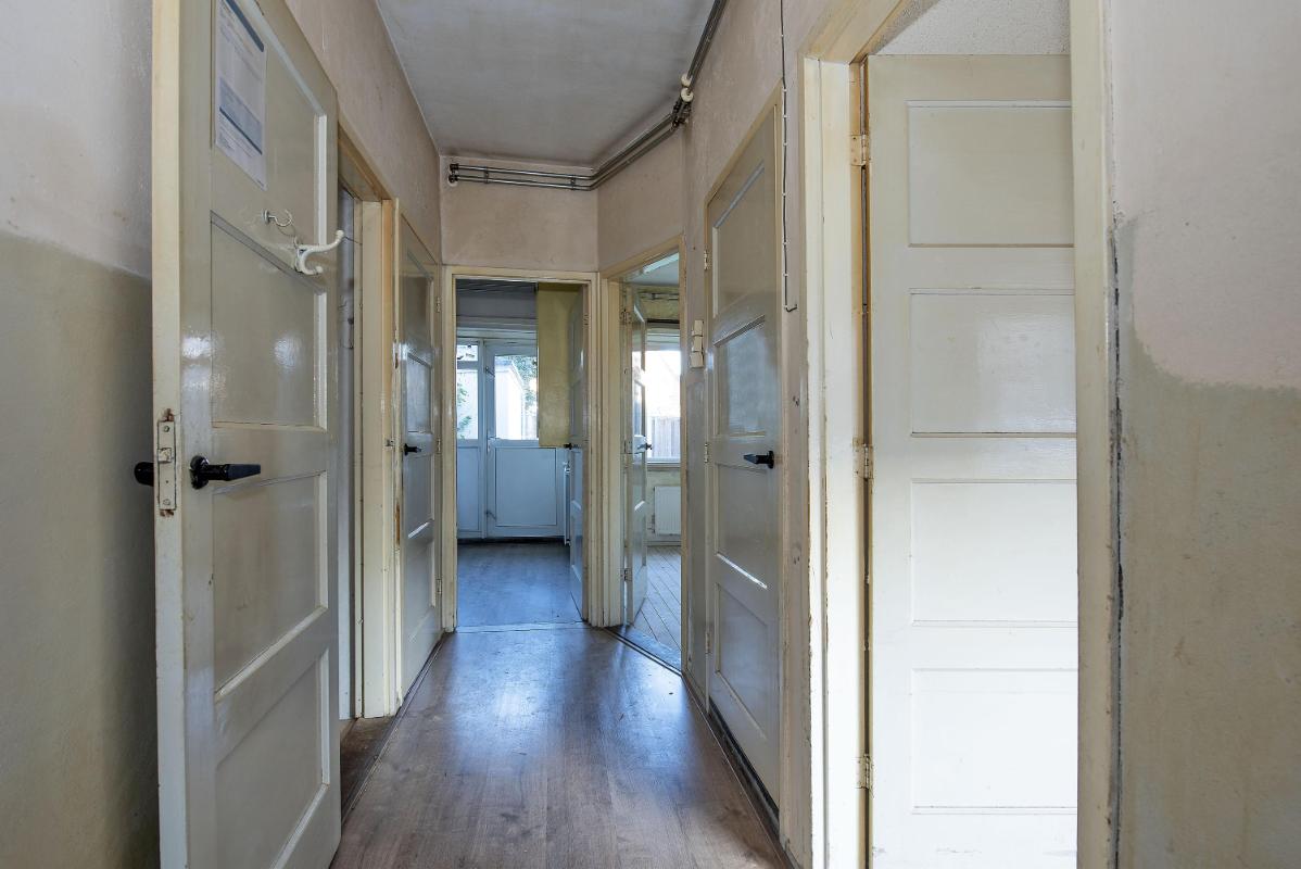 Praktisch, licht en klaar voor transformatie Beide woningen beschikken over lichte woonkamers aan de voorzijde, met vaste kasten en prettige raampartijen die zorgen voor daglicht en een open gevoel. De keukens liggen aan de achterzijde en bieden direct contact met buiten, waardoor binnen en buiten logisch met elkaar verbonden zijn. Verspreid over de woningen zijn meerdere slaapkamers aanwezig, waardoor er nu al verrassend veel ruimte is. De badkamers en toiletten zijn praktisch gesitueerd en vormen een goede basis voor herindeling of modernisering.