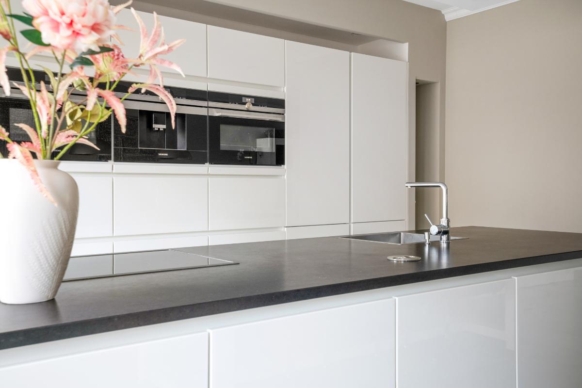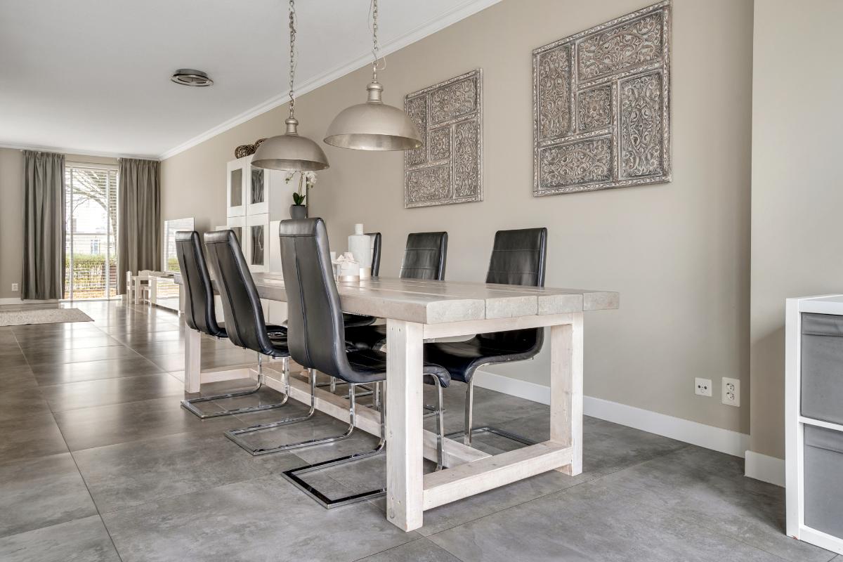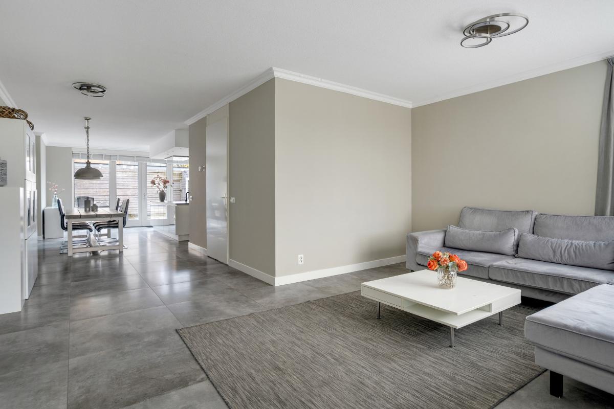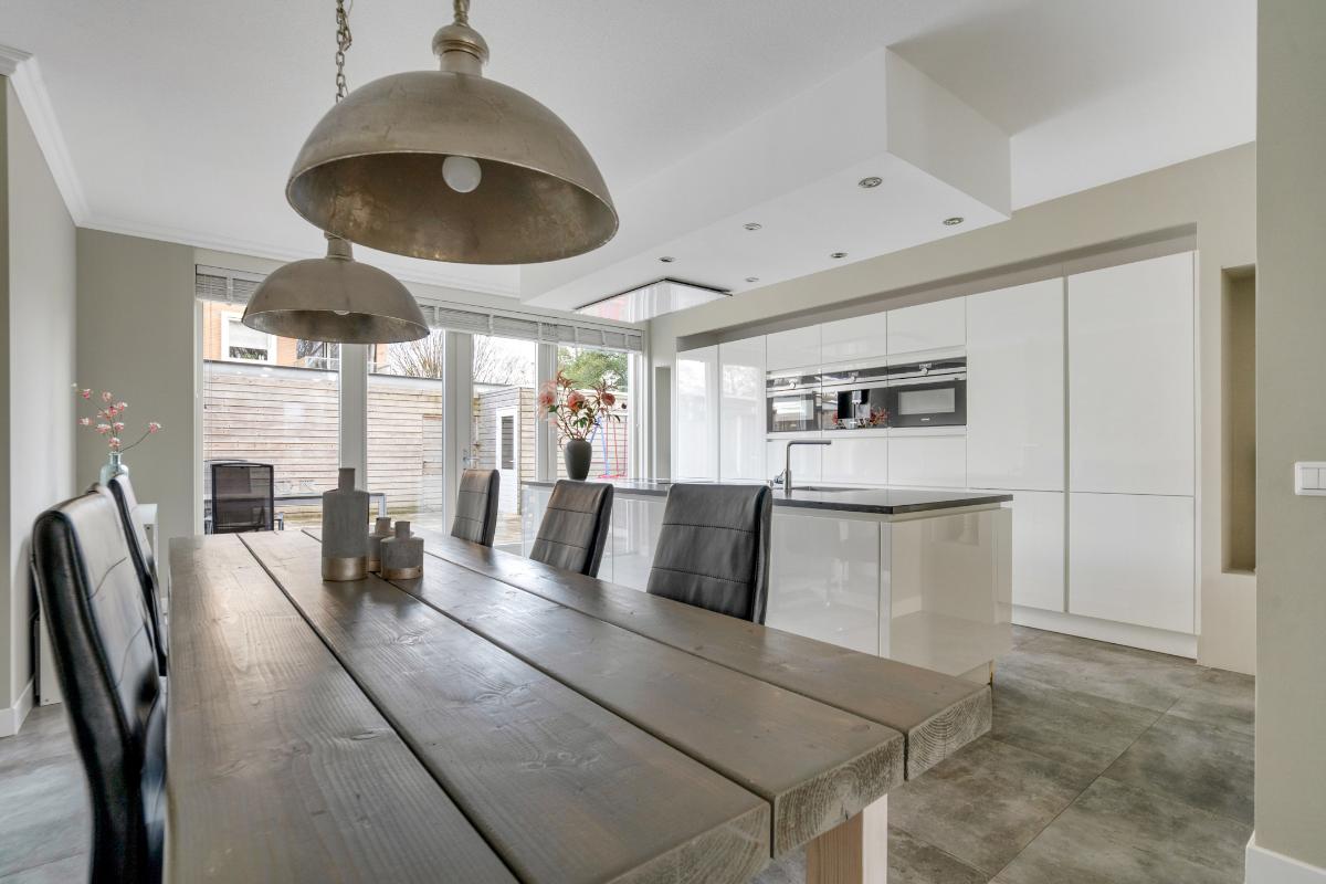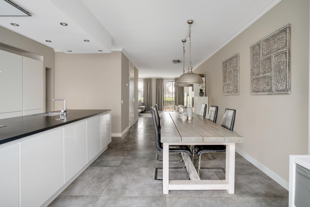 Ruimte, licht en leefgemak Je komt binnen in de hal, vanuit hier stap je de woonkamer in, die zich door de breedte van het huis uitstrekt en een heerlijk open sfeer heeft. Grote ramen zorgen voor veel licht en dankzij de open verbinding met de keuken voelt alles als één geheel. Aan de achterzijde ligt de moderne keuken met een royaal kookeiland met kookplaat en spoelbak. Dit is zo’n plek waar je samen kookt, kletst, lacht en leeft. De openslaande deuren naar de tuin maken het helemaal af: op mooie dagen stap je zo het terras op voor een ontbijtje in de zon.