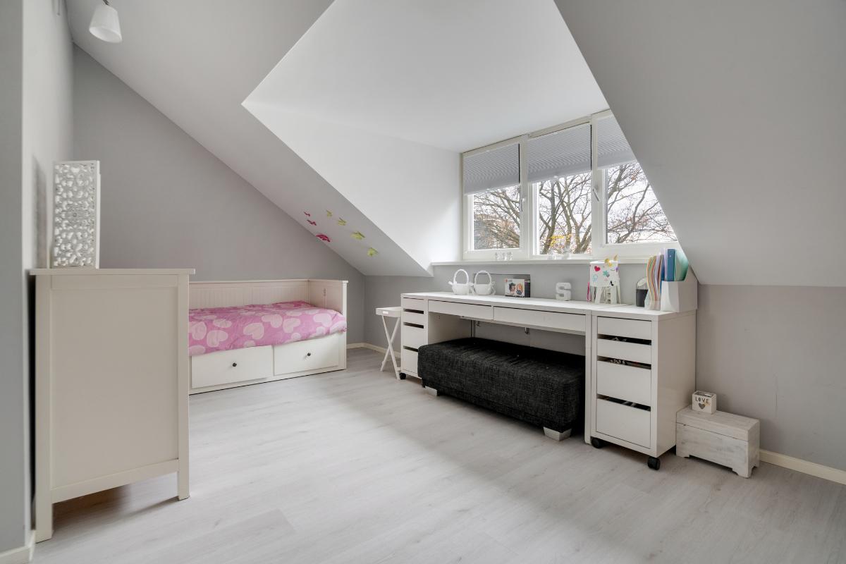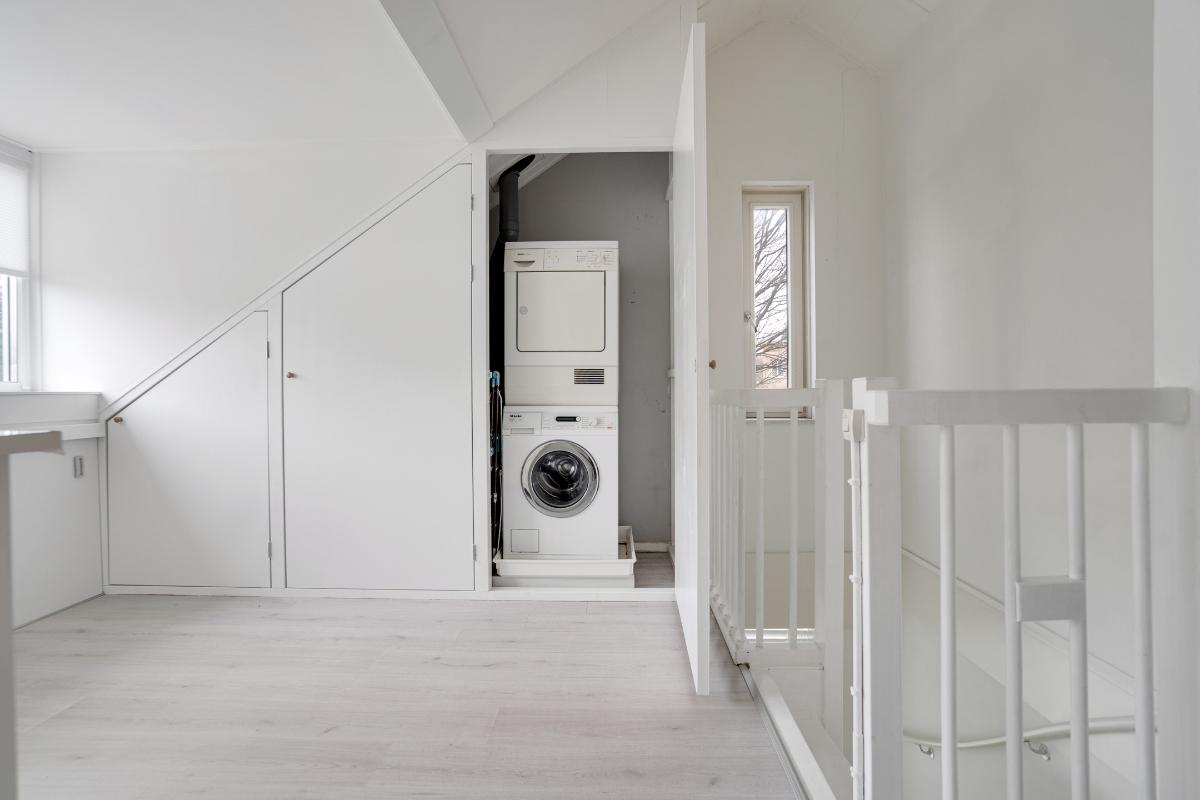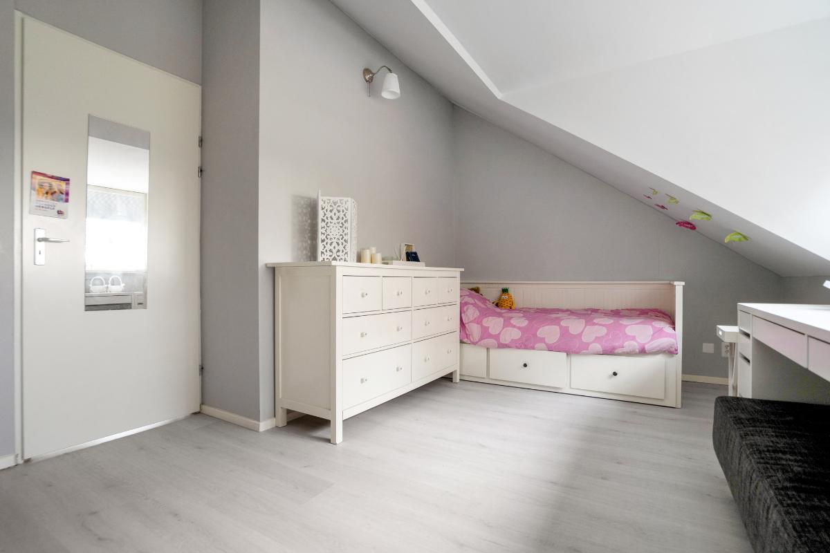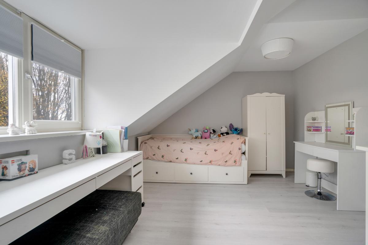 Op de eerste verdieping vind je drie ruime slaapkamers, allemaal prettig licht dankzij de brede ramen en met afmetingen die je alle kanten op laten: van kinderslaapkamers tot een werkkamer of inloopkast, het past hier moeiteloos. De badkamer ligt aan de voorzijde en is uitgevoerd met een ligbad, douche, wastafelmeubel en toilet. Een fijne, complete gezinsbadkamer waar je ontspannen de dag begint of eindigt. De tweede verdieping is misschien wel de grootste verrassing van het huis. Via een vaste trap kom je op de overloop met witgoedopstelling en extra bergruimte, waarna je doorloopt naar twee volwaardige slaapkamers.