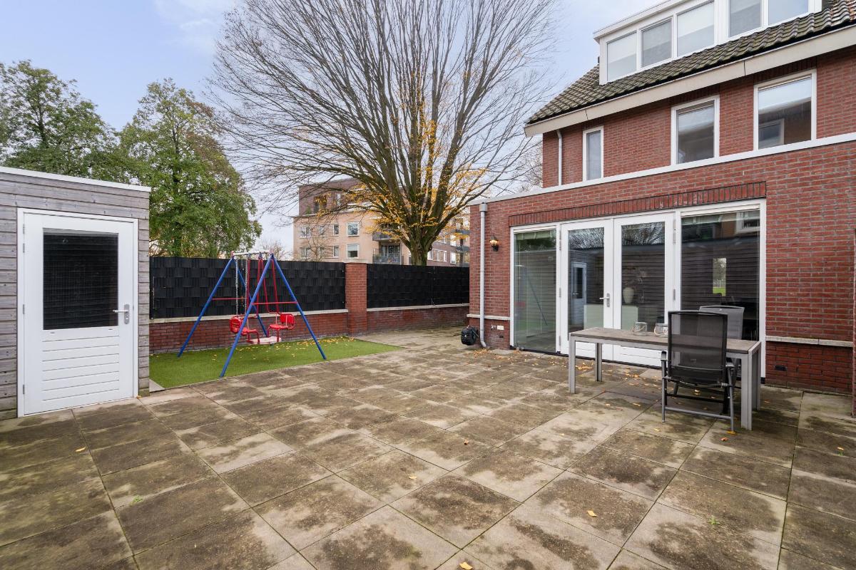 Ook buiten zit je hier helemaal goed. De achtertuin is breed, diep en is onderhoudsarm. Er is ruimte genoeg voor een loungeset, een grote eettafel en zelfs een speelplek voor de kinderen. Door de openslaande deuren bij de keuken loopt binnen moeiteloos over in buiten, waardoor dit echt een verlengstuk van je woonruimte wordt. Achter in de tuin staat de stenen berging; ideaal voor fietsen, tuinspullen of extra opslag. Daarnaast is er een handige achterom, waardoor je eenvoudig met de fiets of kliko’s achterom kunt.
